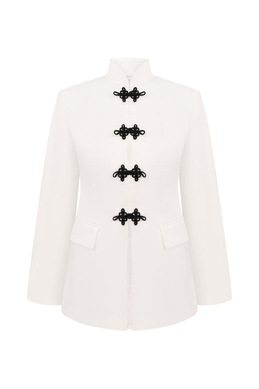 Сатиновий білий жакет з вузловими застібками COUTURE