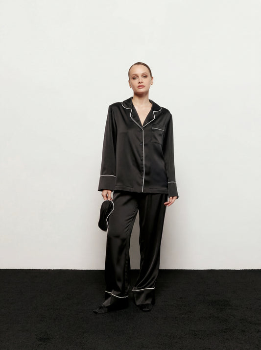 Піжама сатинова чорна з контрастним кантом