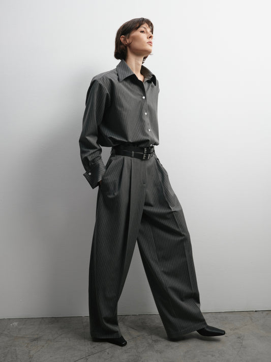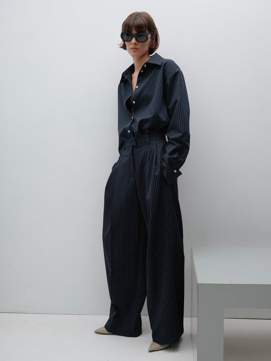 Штани еко-шкіра вільного крою сливові з вишивкою