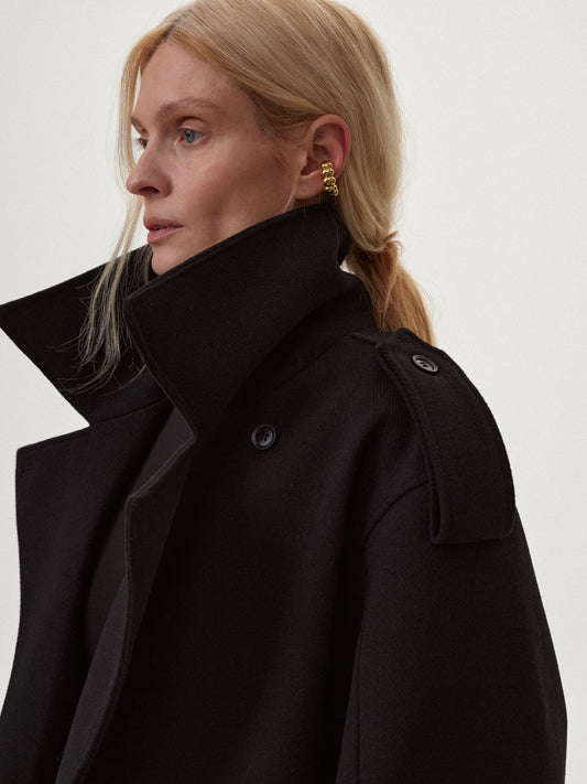Вкорочене чорне пальто - жакет з вовни COUTURE