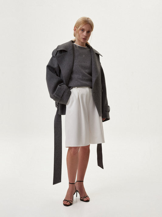 Вкорочене сіре пальто - жакет з вовни COUTURE