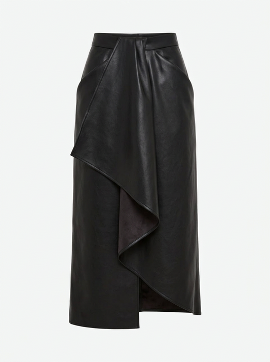 Асиметрична чорна спідниця з еко - шкіри
