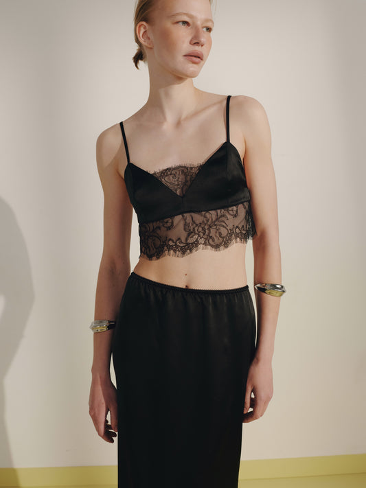 Сатинова чорна спідниця з мереживом