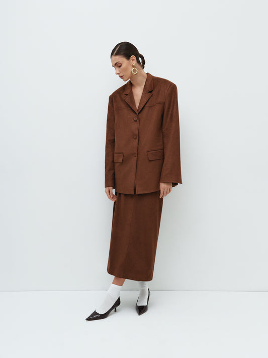 Спідниця максі з еко-замші карамельна