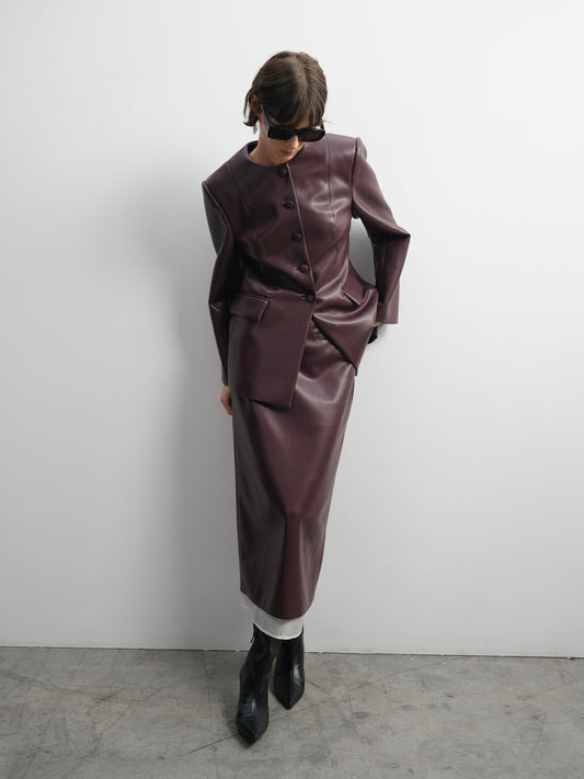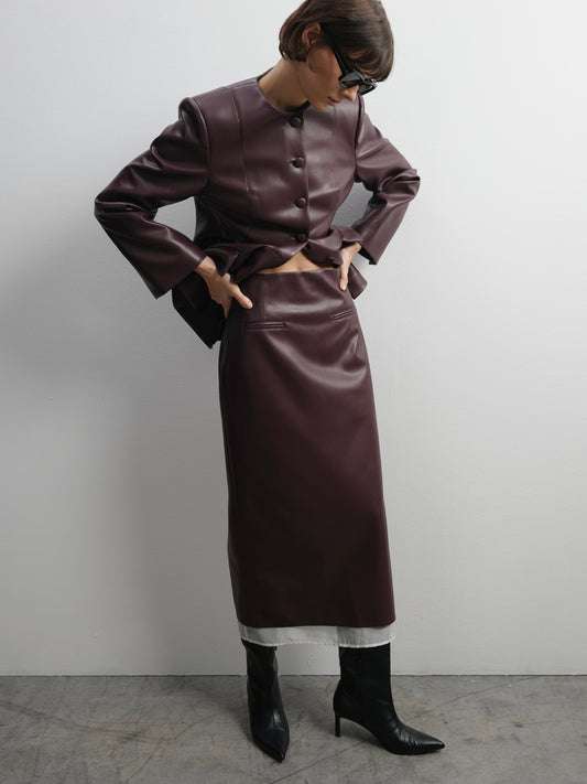 Спідниця сливова еко - шкіра з контрастною підкладкою