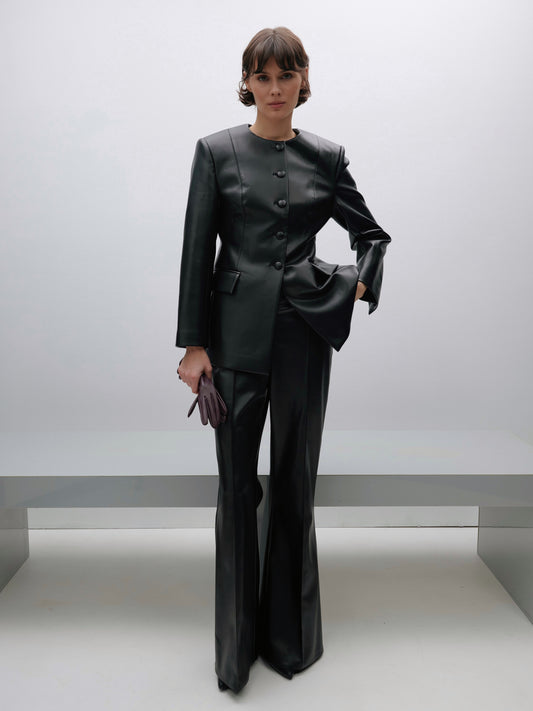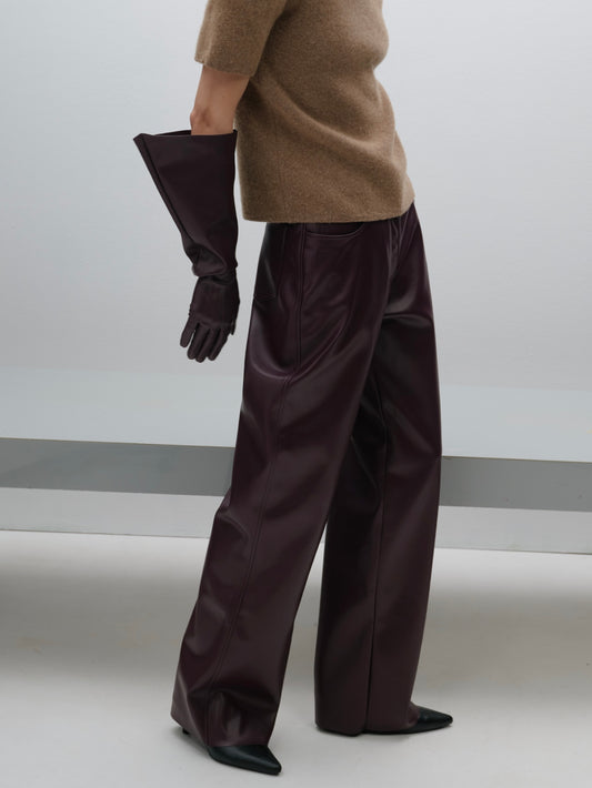 Штани еко-шкіра вільного крою сливові з вишивкою