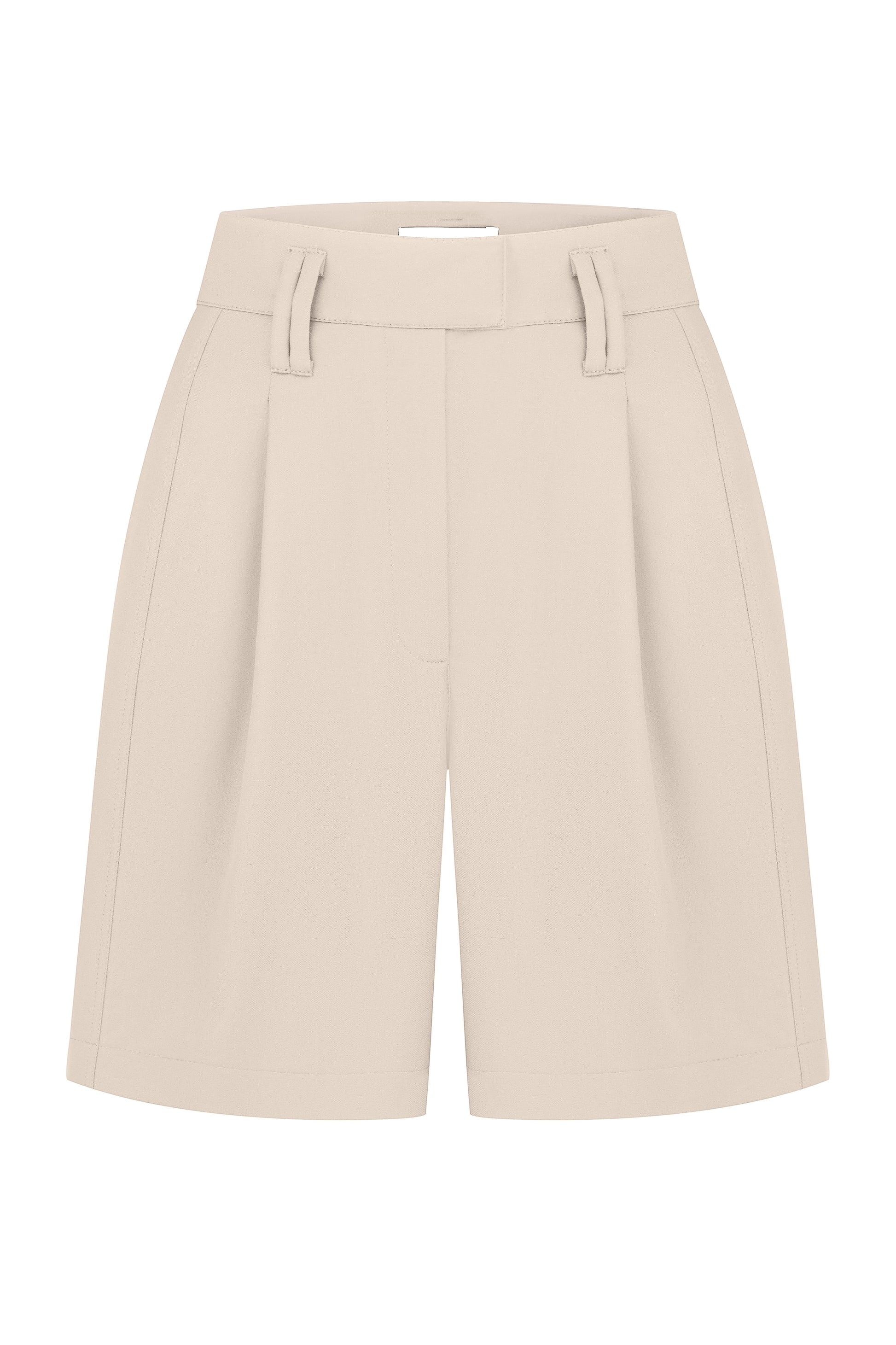 Sand women's bermuda shorts combine elegance, comfort, and minimalism. The extended cut adds sophistication, while the high waist accentuates the waist, creating a flattering silhouette. The simple design makes them versatile for various styling options.