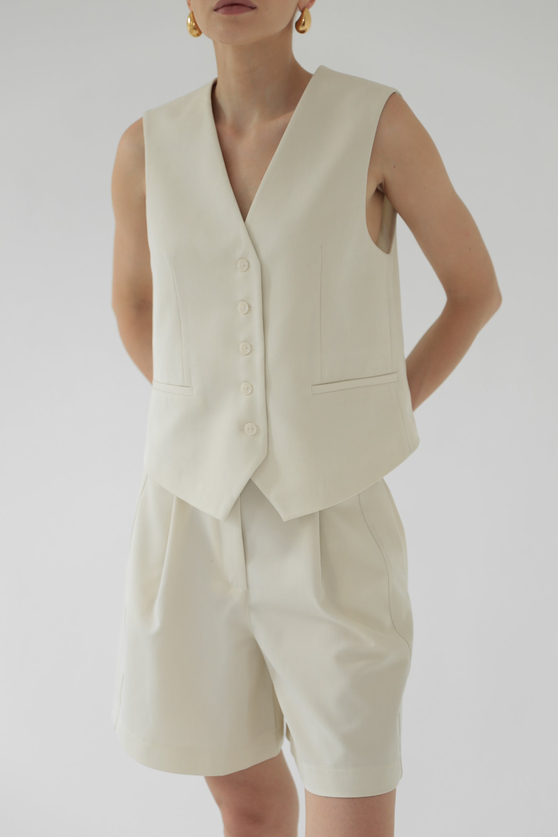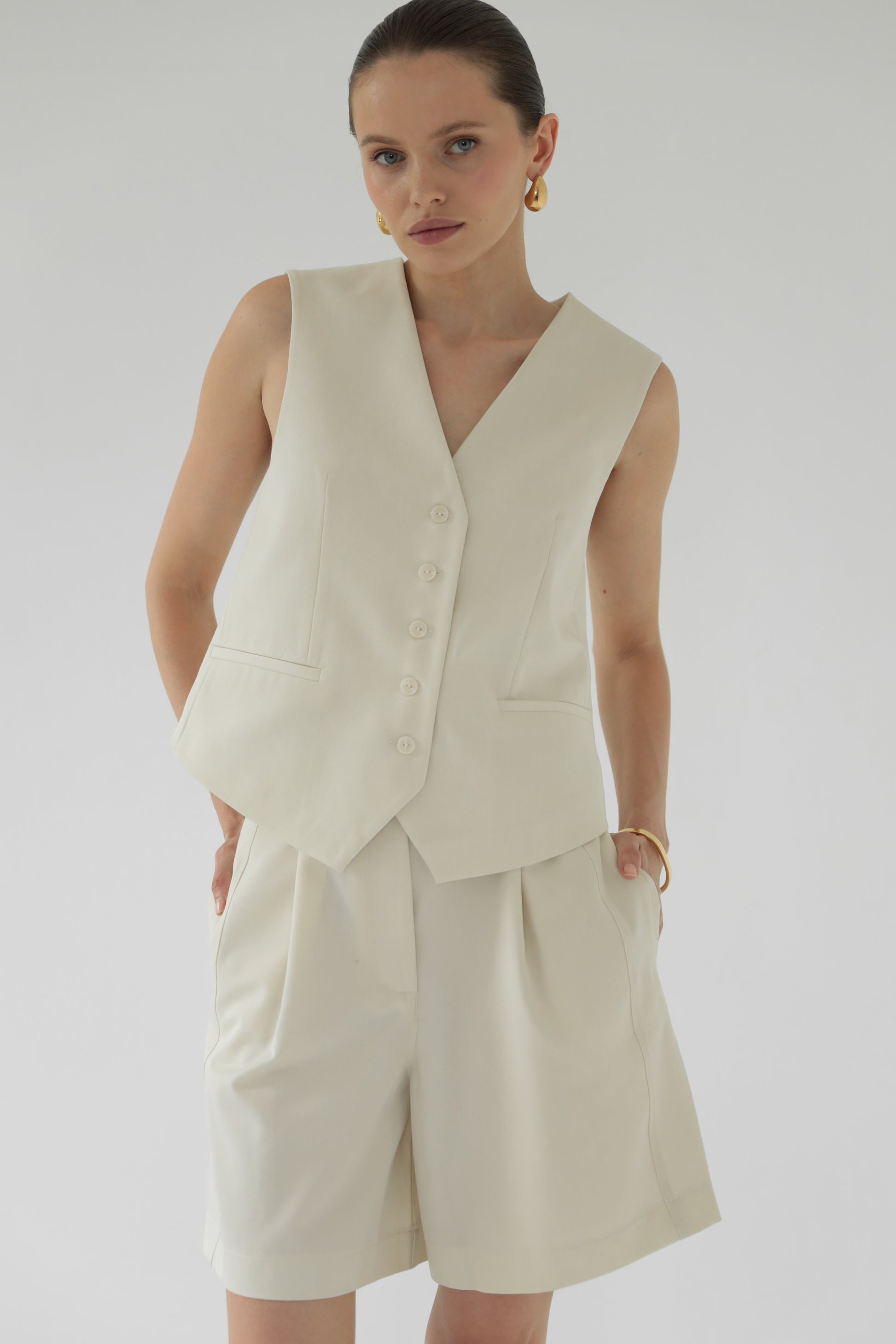 Pair these bermuda shorts with a matching vest for a stylish suit set, which can be complemented with heels for an elegant look or loafers or sneakers for a more relaxed style. They also look great with basic tops, shirts, and turtlenecks, allowing you to create both business and casual outfits.