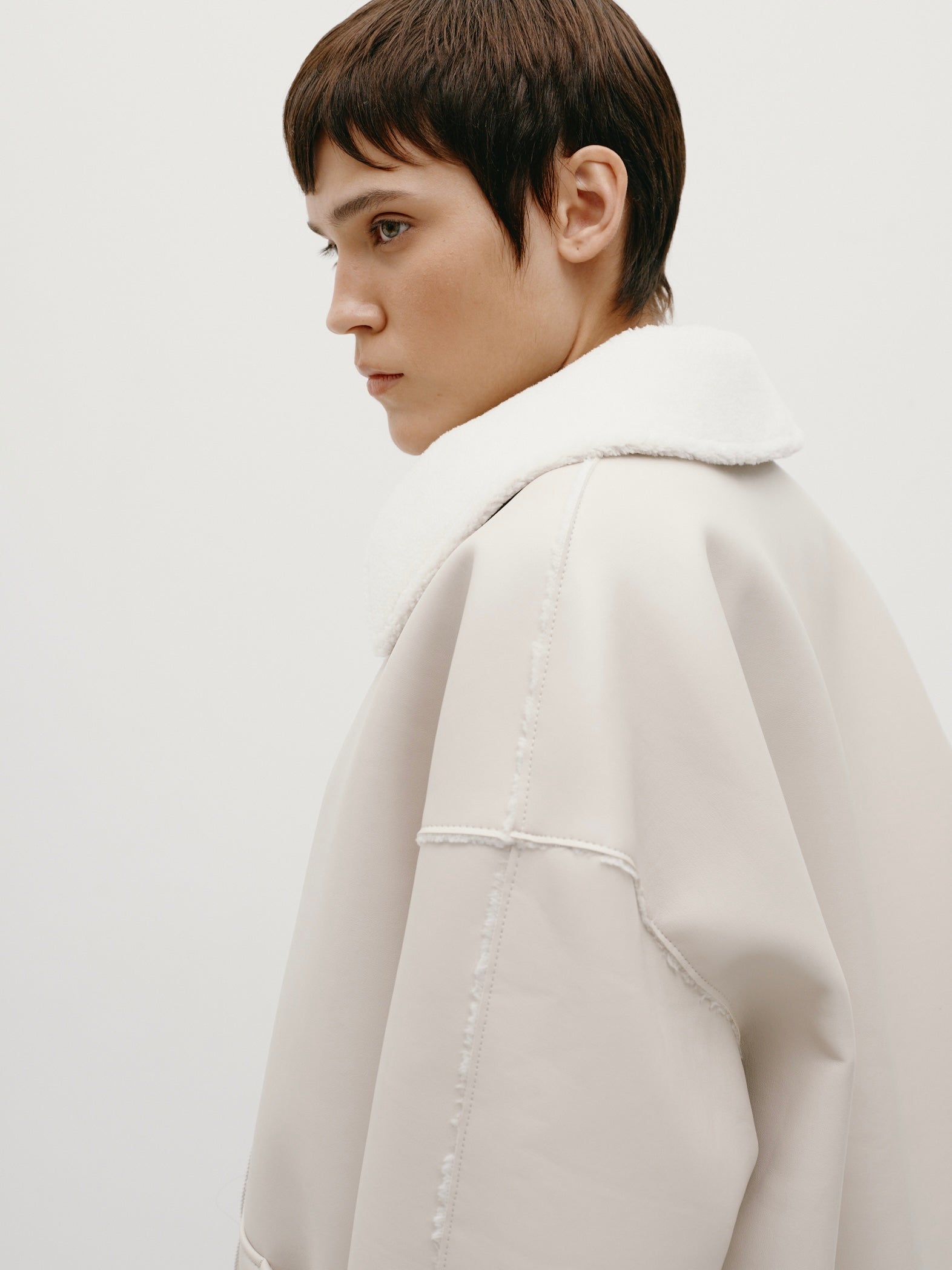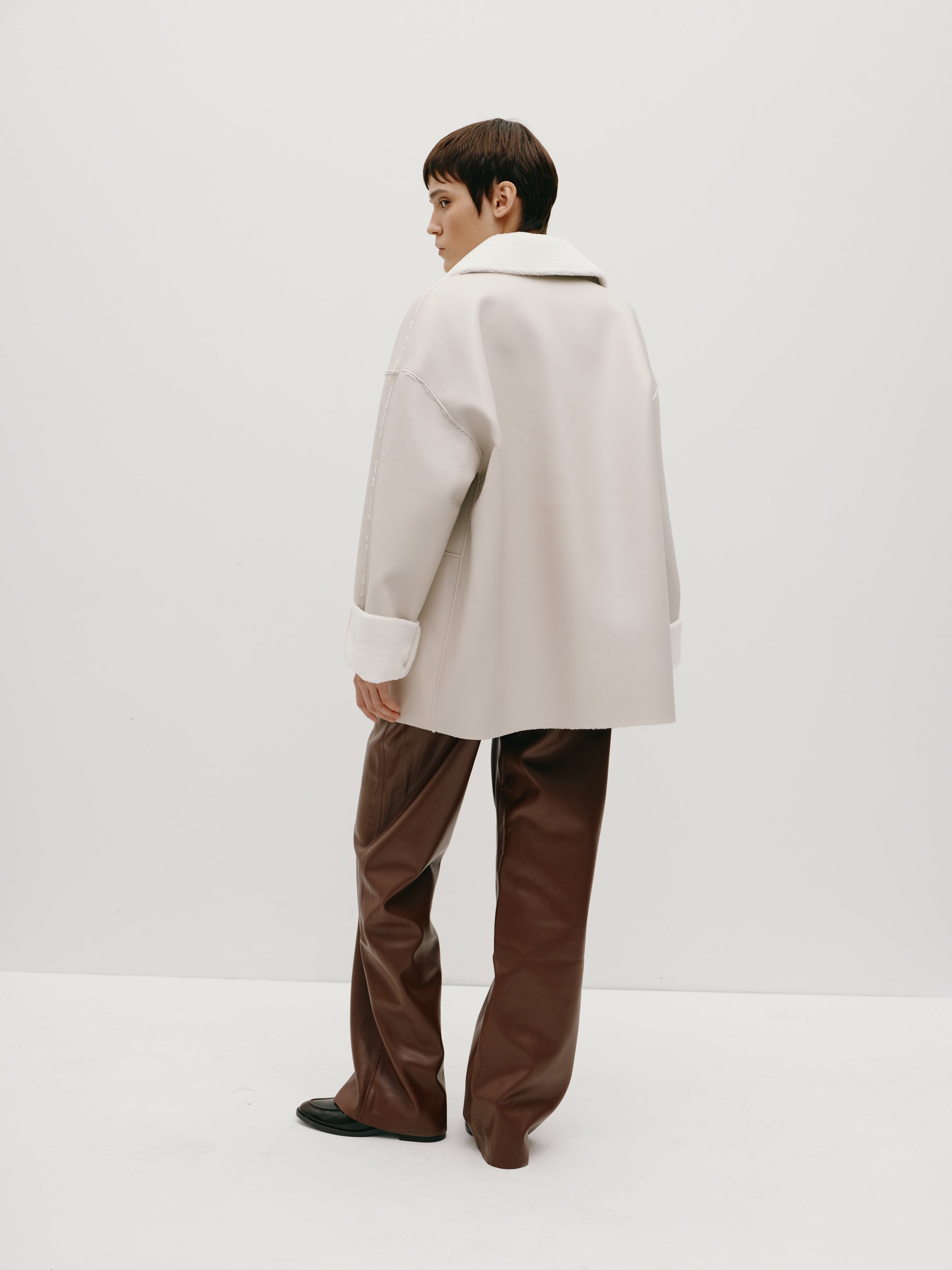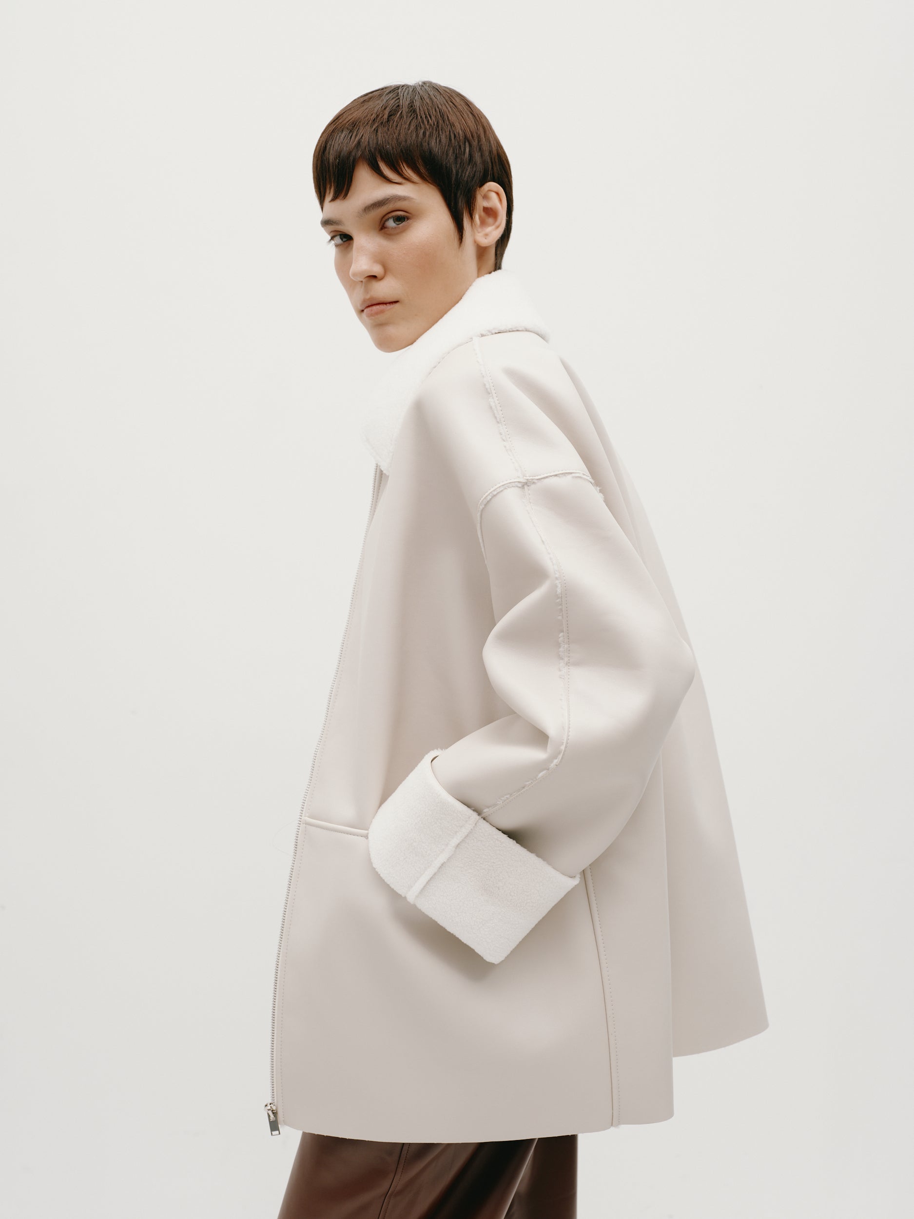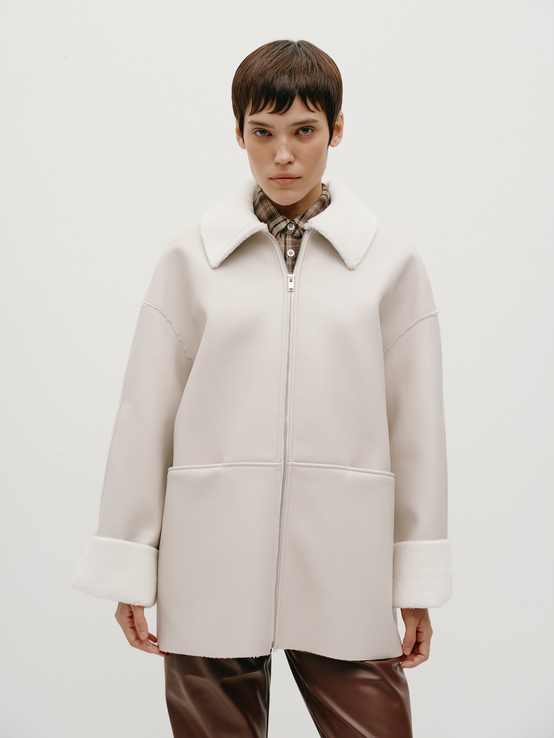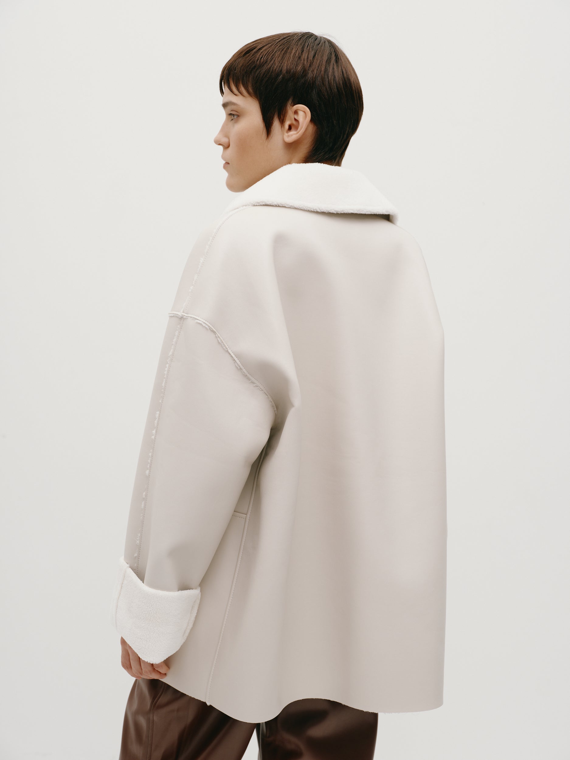 Women's milk-colored sheepskin coat – an elegant and stylish choice for the colder months.