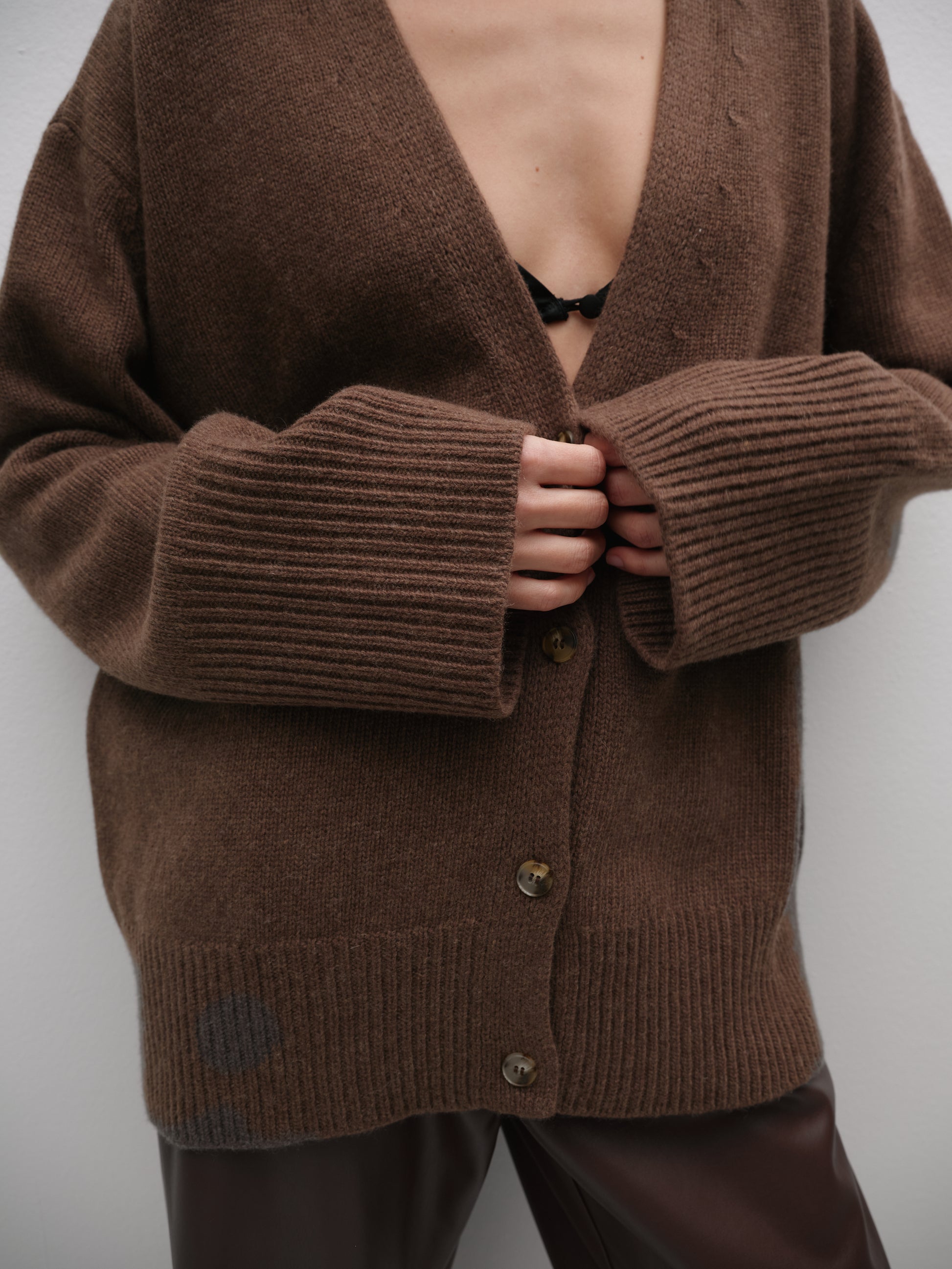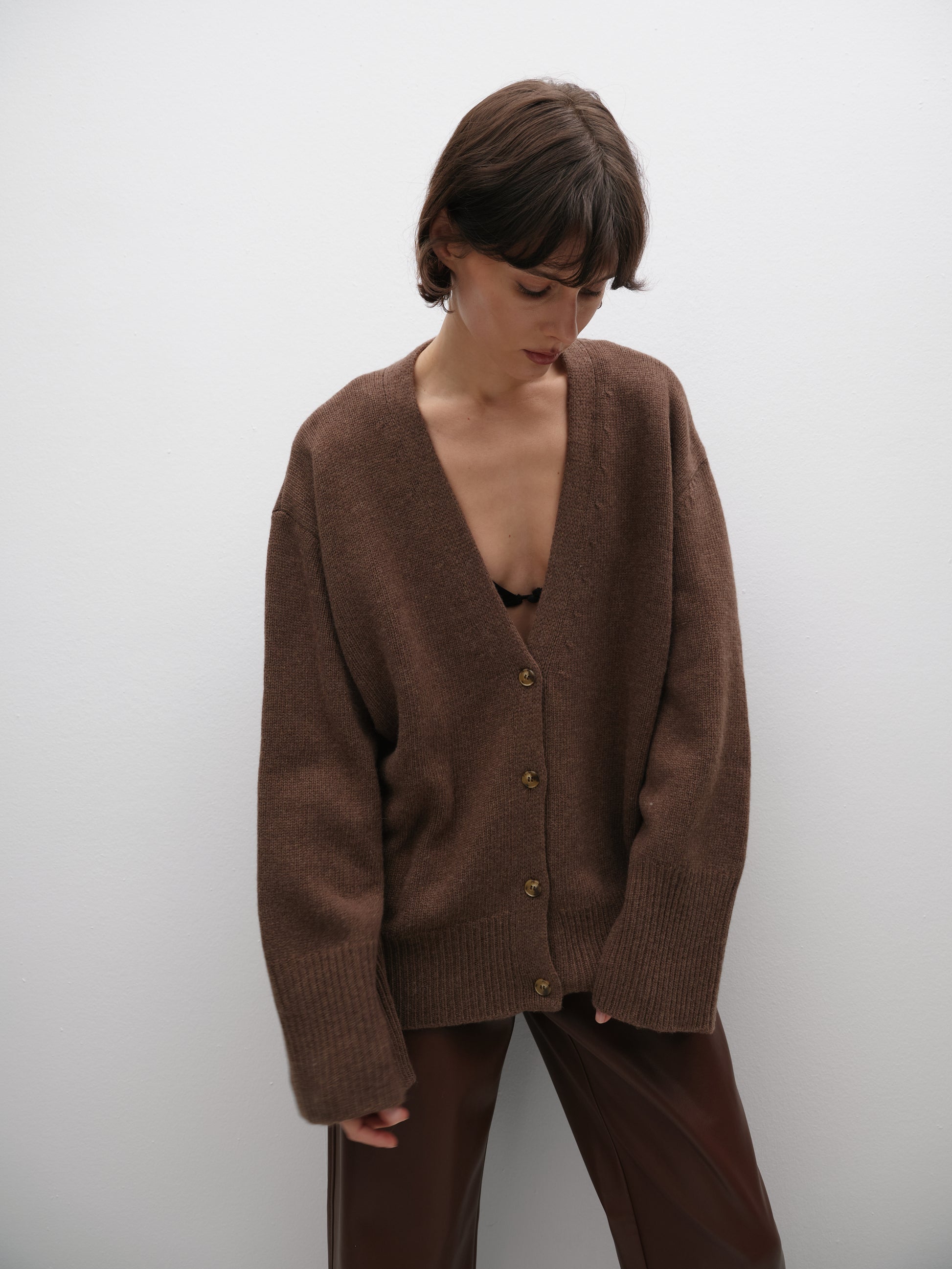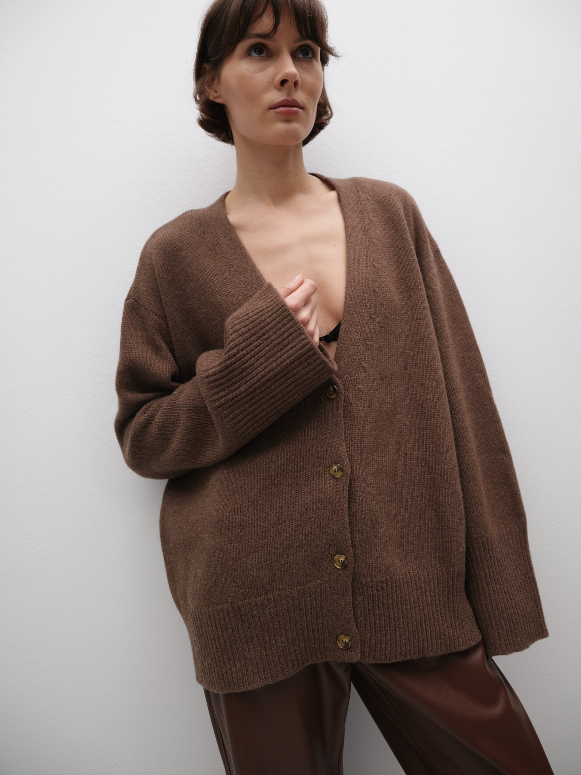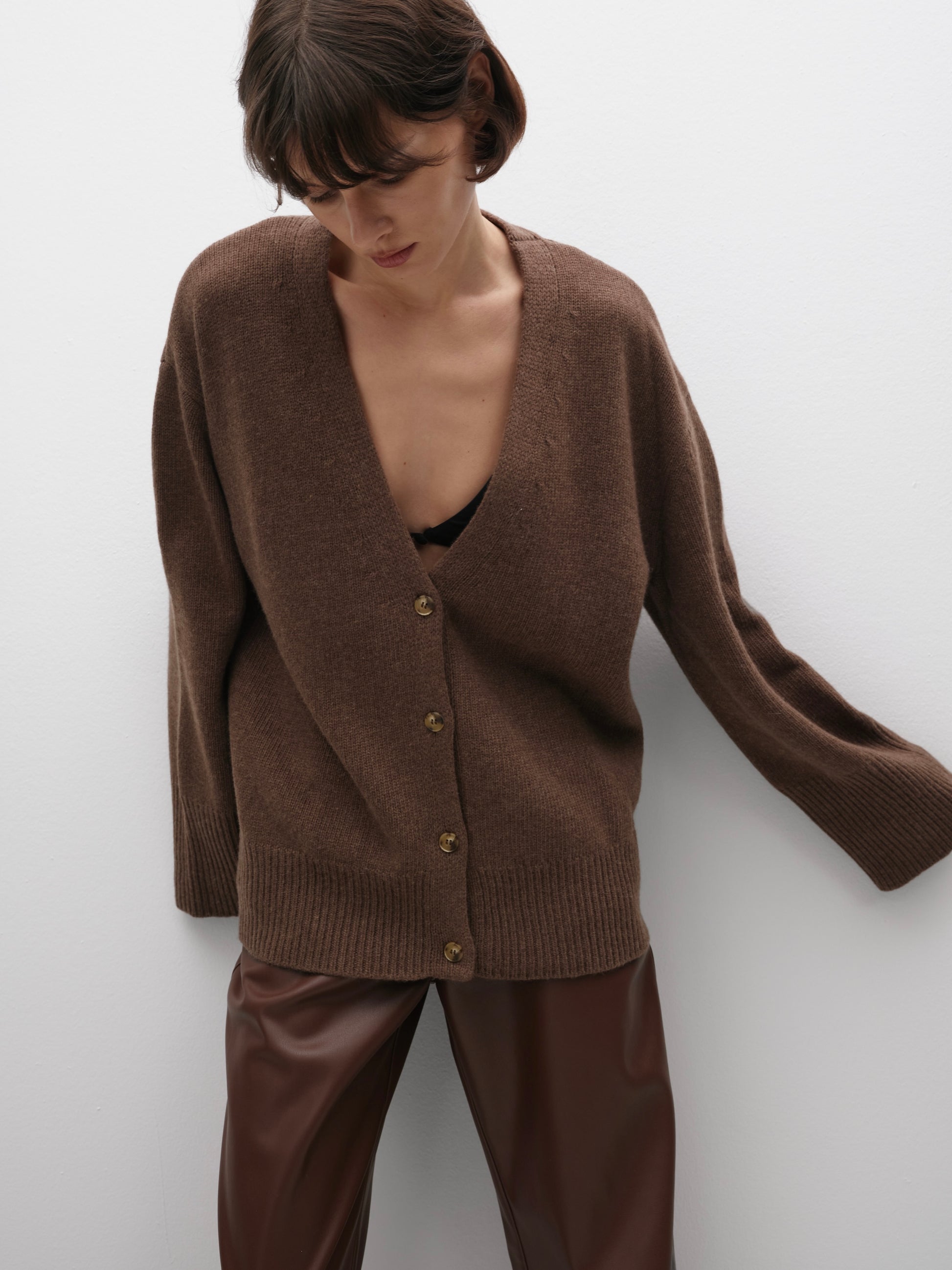 Якщо купити коричневий кардиган з ґудзиками, ви зможете легко комбінувати його з різними елементами гардеробу, створюючи як повсякденні, так і вечірні луки.
