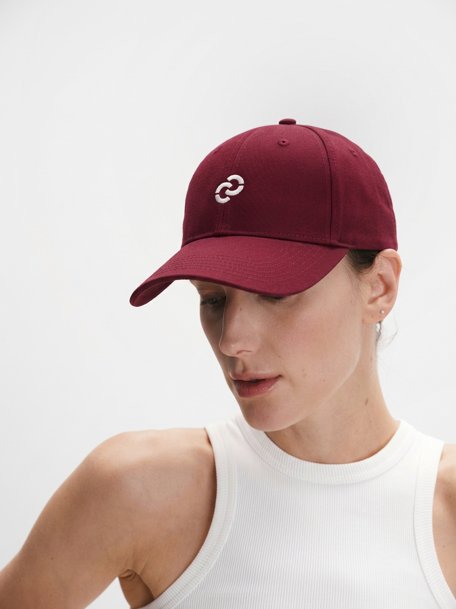 Вишнева кепка з лого ідеально пасує до джинсів, oversize футболок, худі чи спортивних костюмів. Вона стане акцентом у мінімалістичних образах та додасть сучасної динаміки класичним поєднанням.