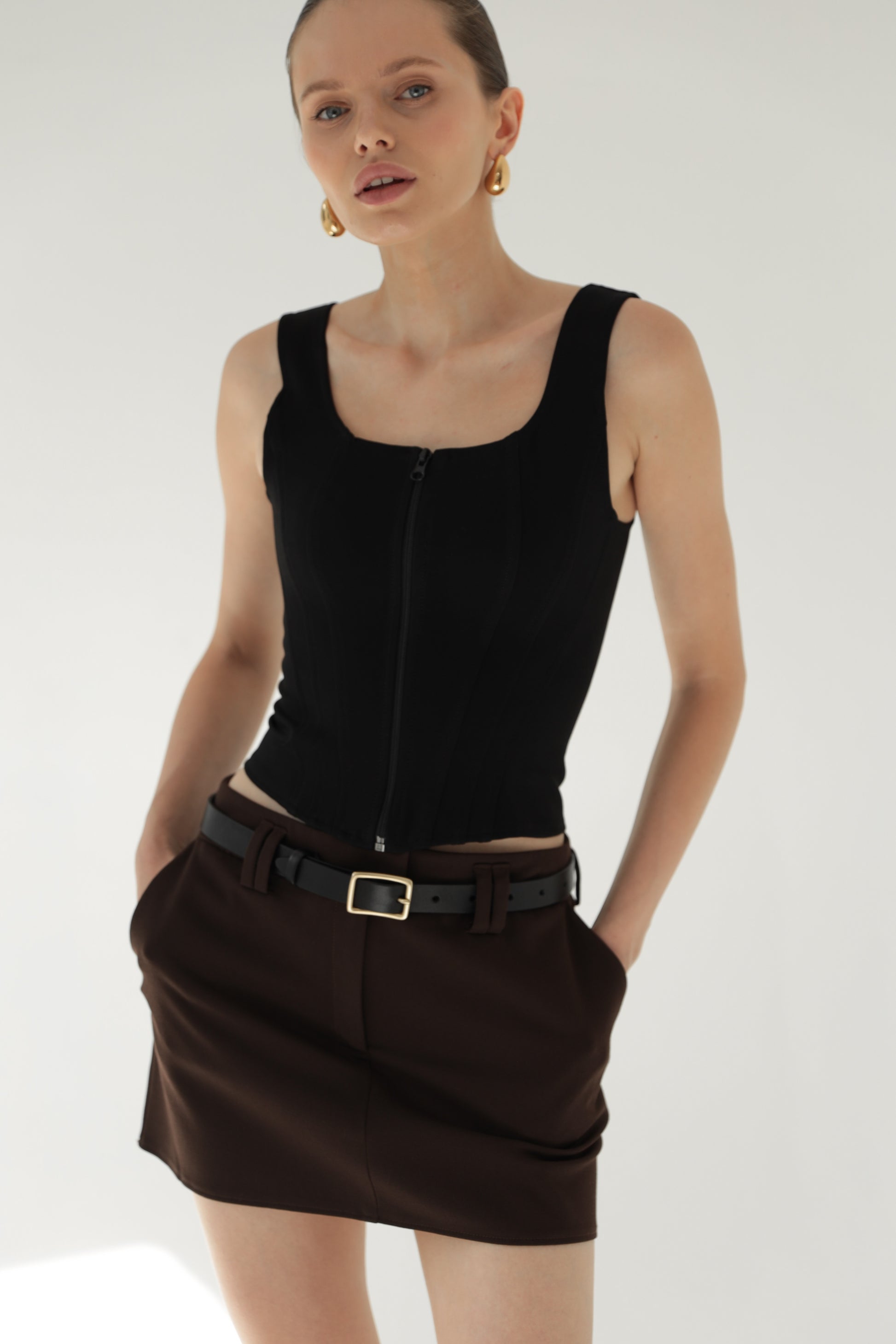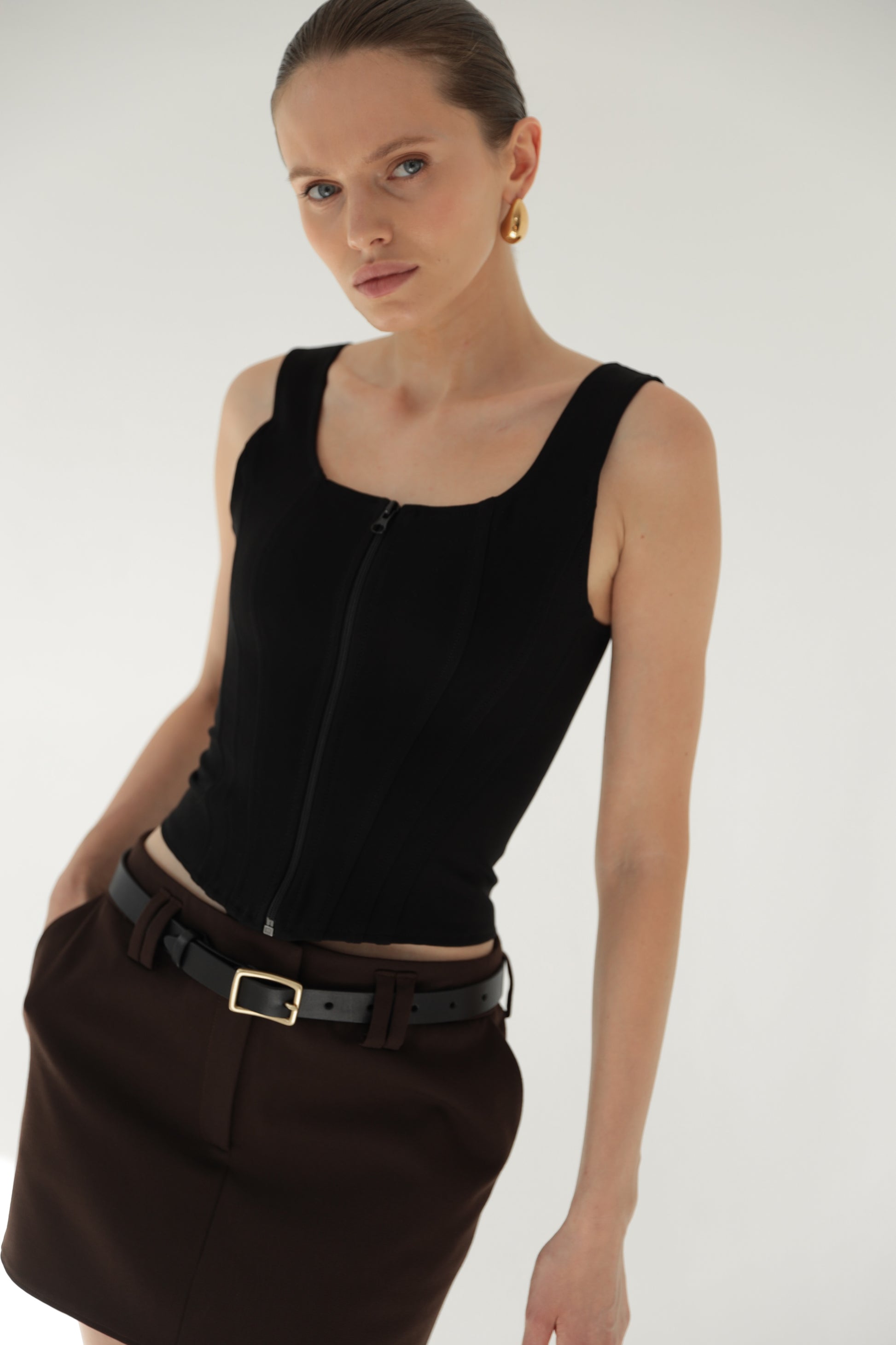 Black sleeveless corset