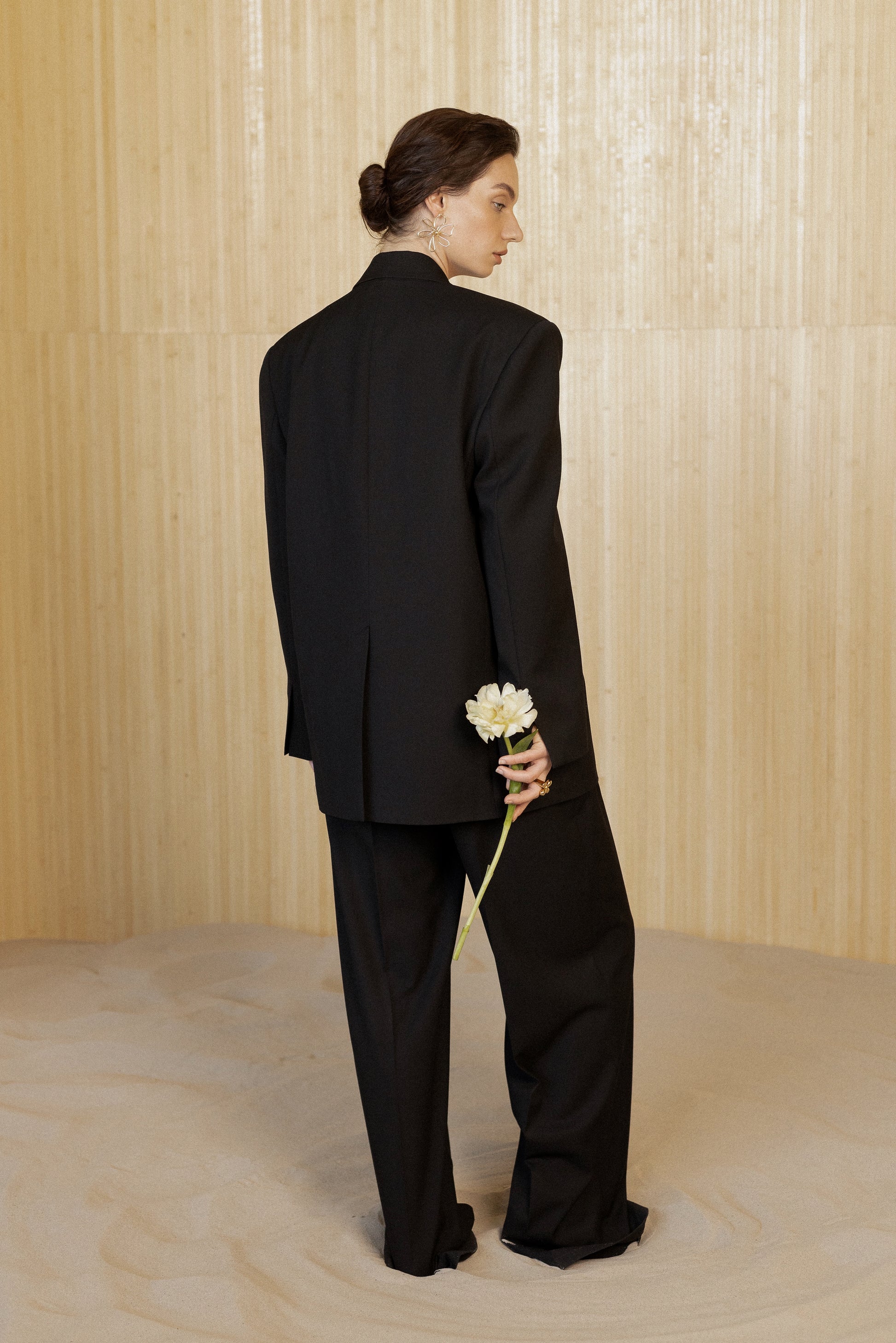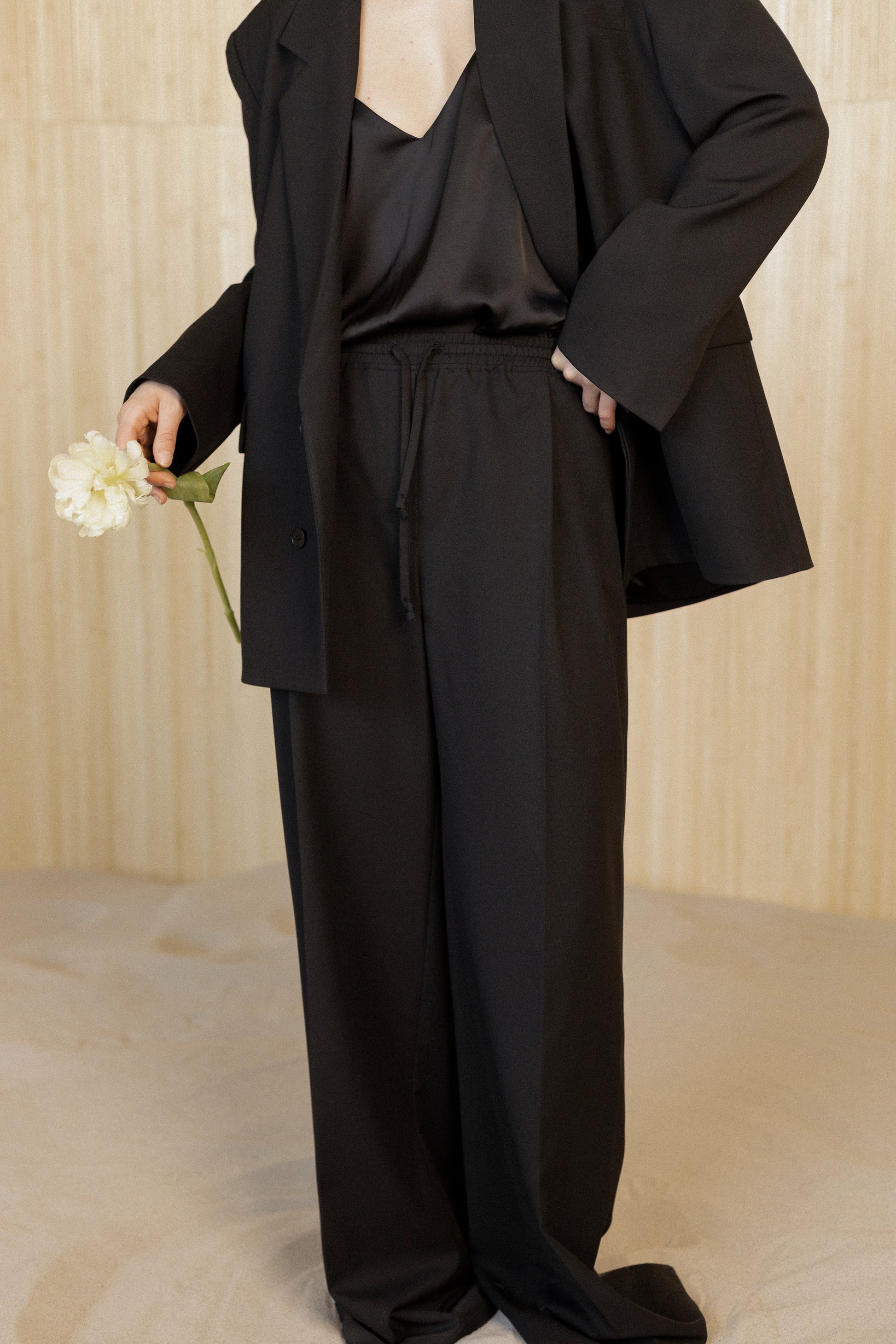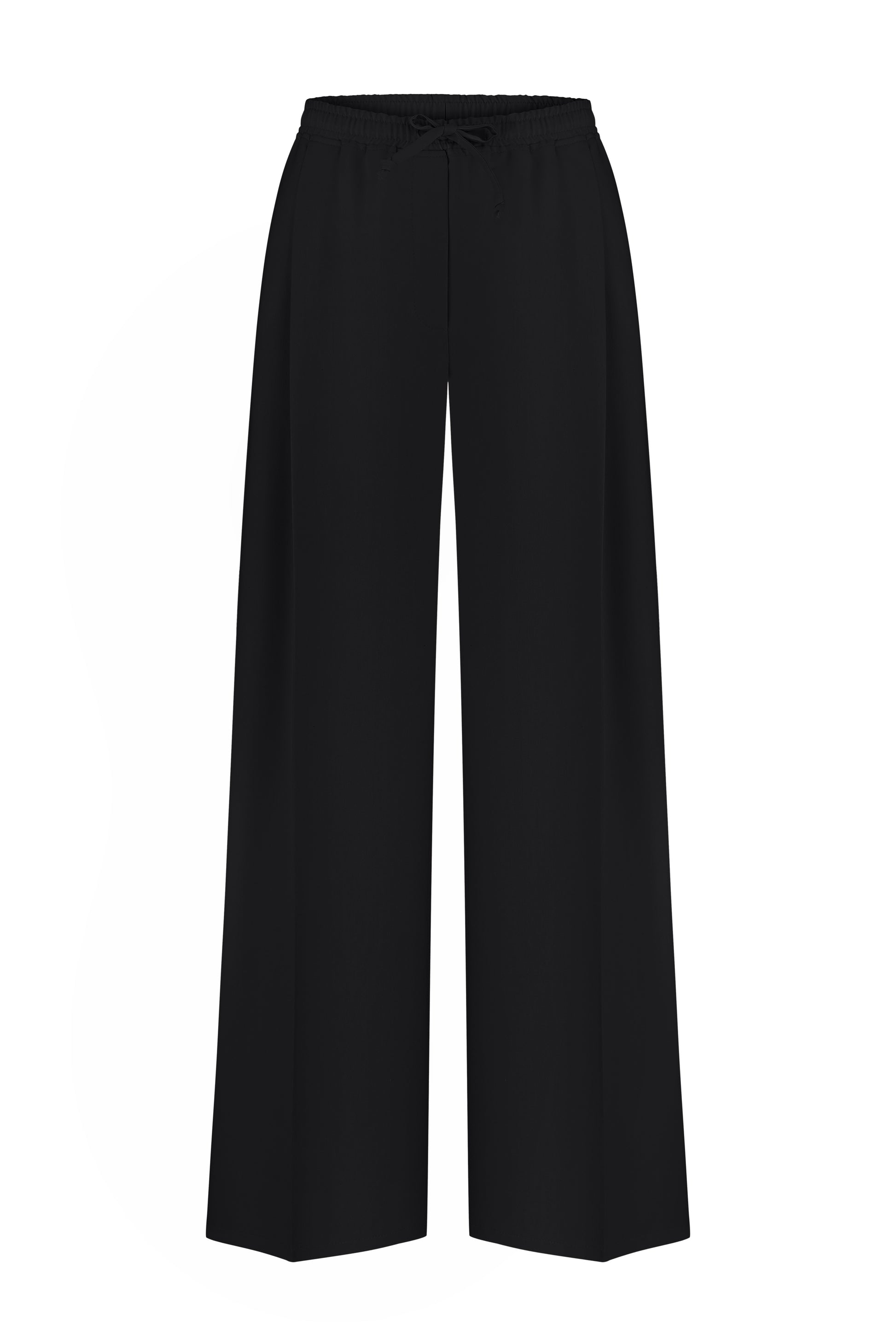 Women's black palazzo pants with an elastic waistband are a perfect combination of style, comfort, and versatility. The loose fit creates an elegant silhouette, while the high waist with a soft elastic waistband ensures a comfortable fit and freedom of movement.