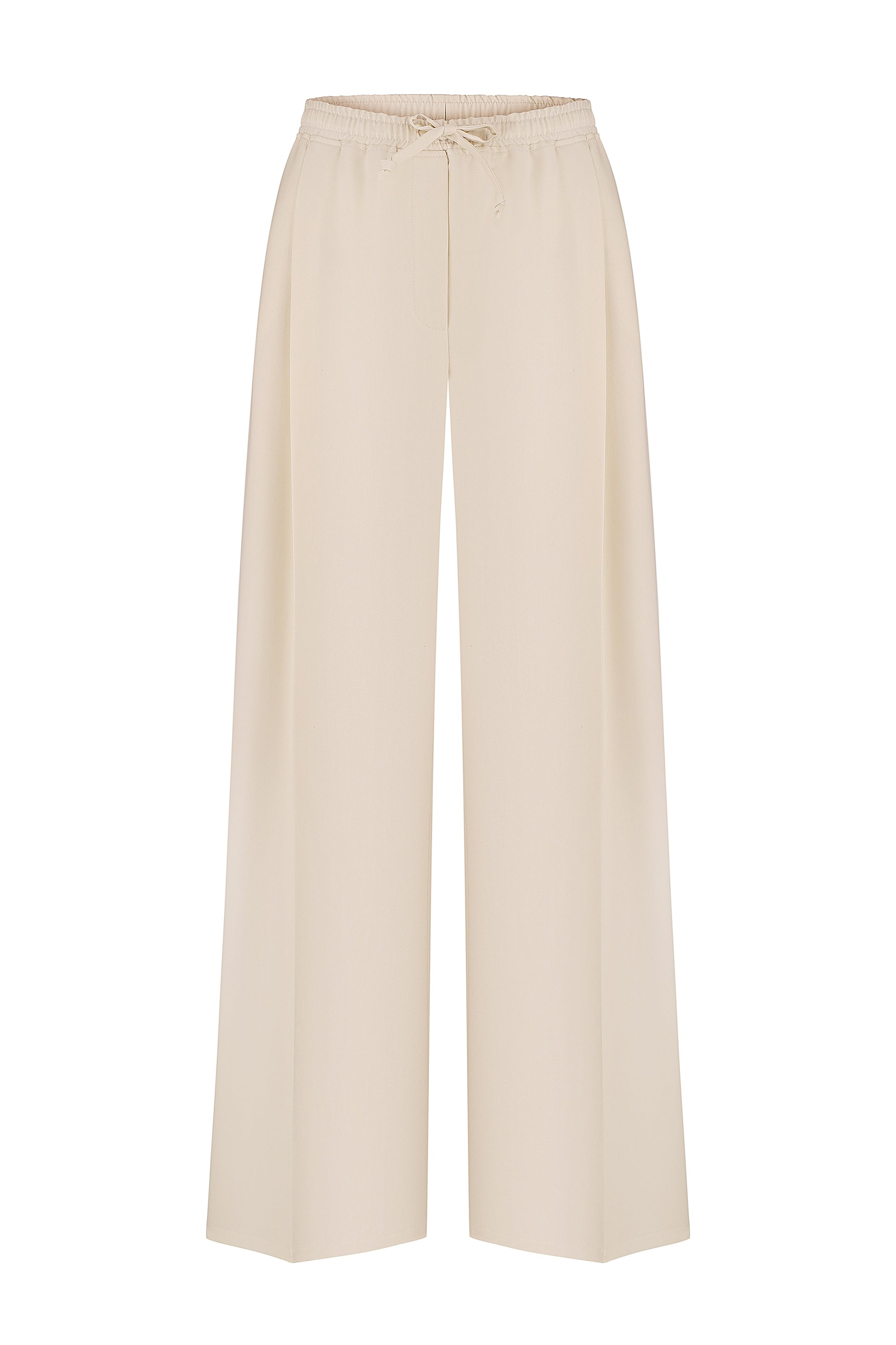Women's sand-colored palazzo pants with an elastic waistband are a combination of style, comfort, and versatility. The loose fit creates an elegant silhouette, while the high waist with a soft elastic waistband ensures a comfortable fit and freedom of movement.