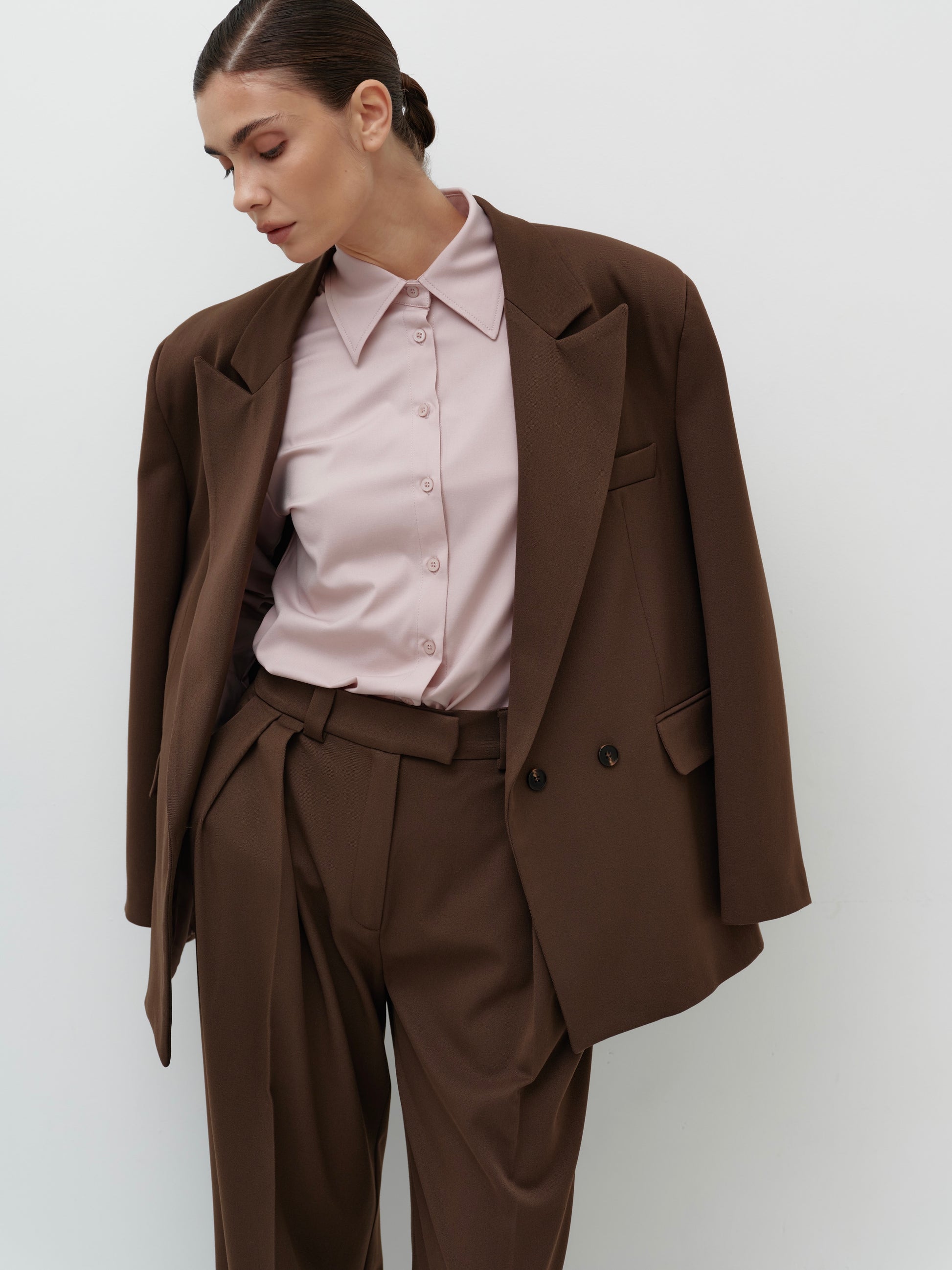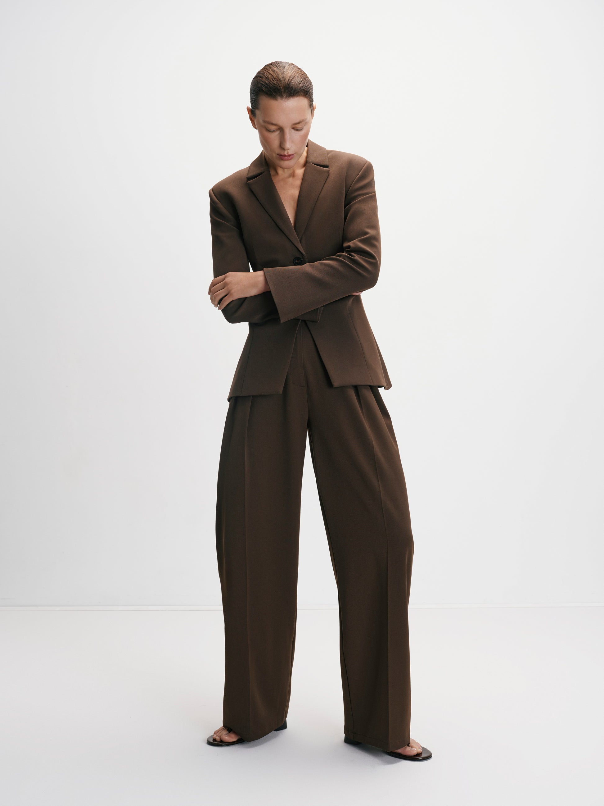 Brown women's palazzo trousers are the perfect blend of style, minimalism, and ease of styling. The loose fit creates an elegant silhouette, while the high waist accentuates the waistline. The clean design makes them versatile: they pair perfectly with both classic blazers and lightweight tops.