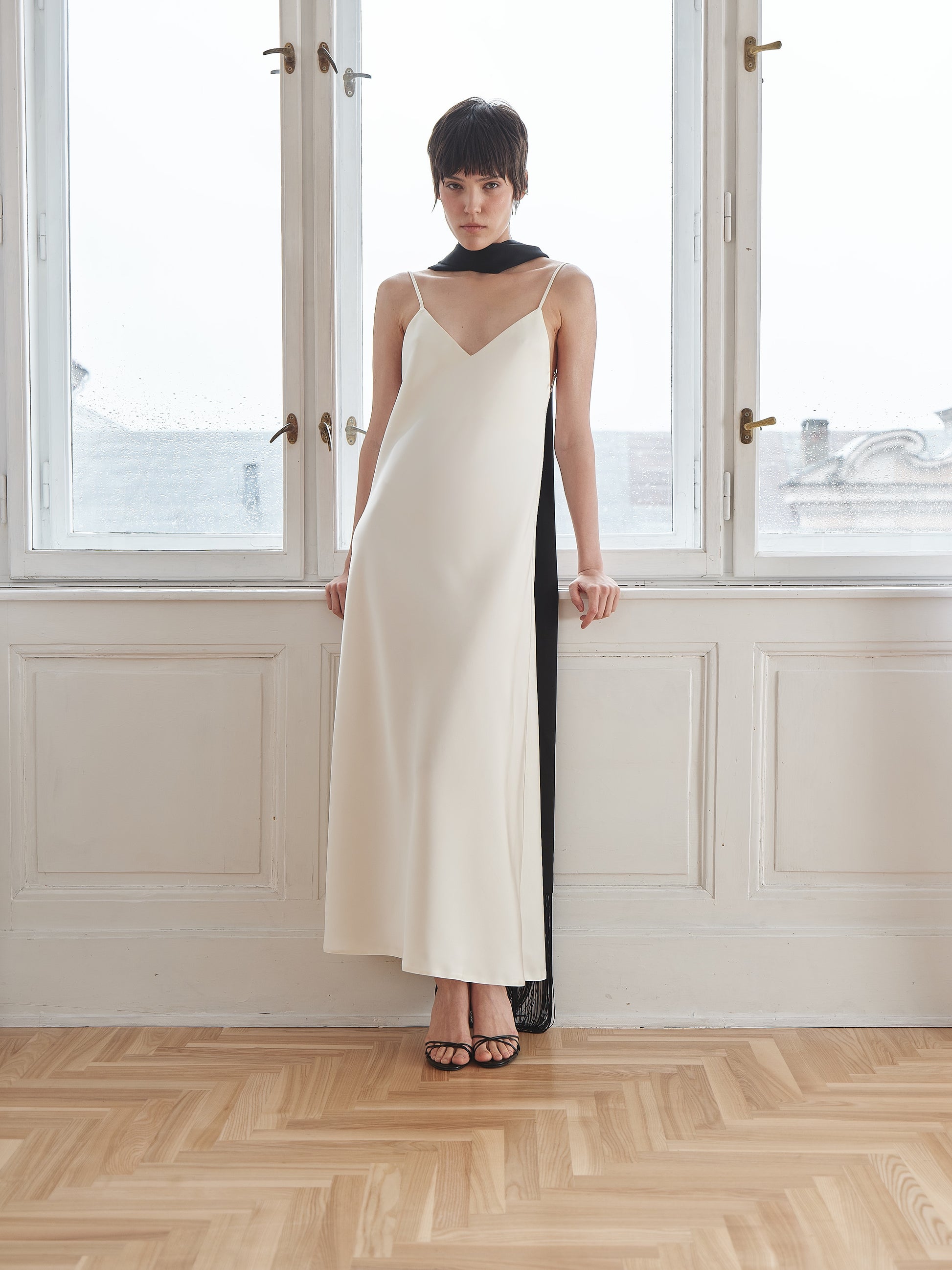 Сатинова молочна сукня з вирізом на спині – це поєднання ніжності, жіночності та спокійної естетики для домашніх і камерних моментів. Легка сатинова тканина м’яко лягає по фігурі, створюючи відчуття легкості та комфорту. Тонкі бретелі й відкритий виріз на спині додають образу витонченості, а довжина максі формує стриманий, елегантний силует. Сукня підходить для вечірнього відпочинку вдома, повільних ранків або особливих домашніх моментів.