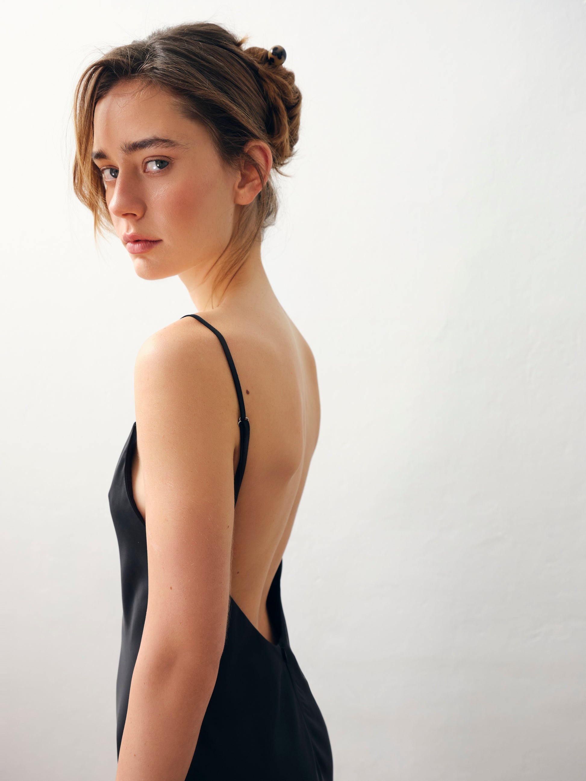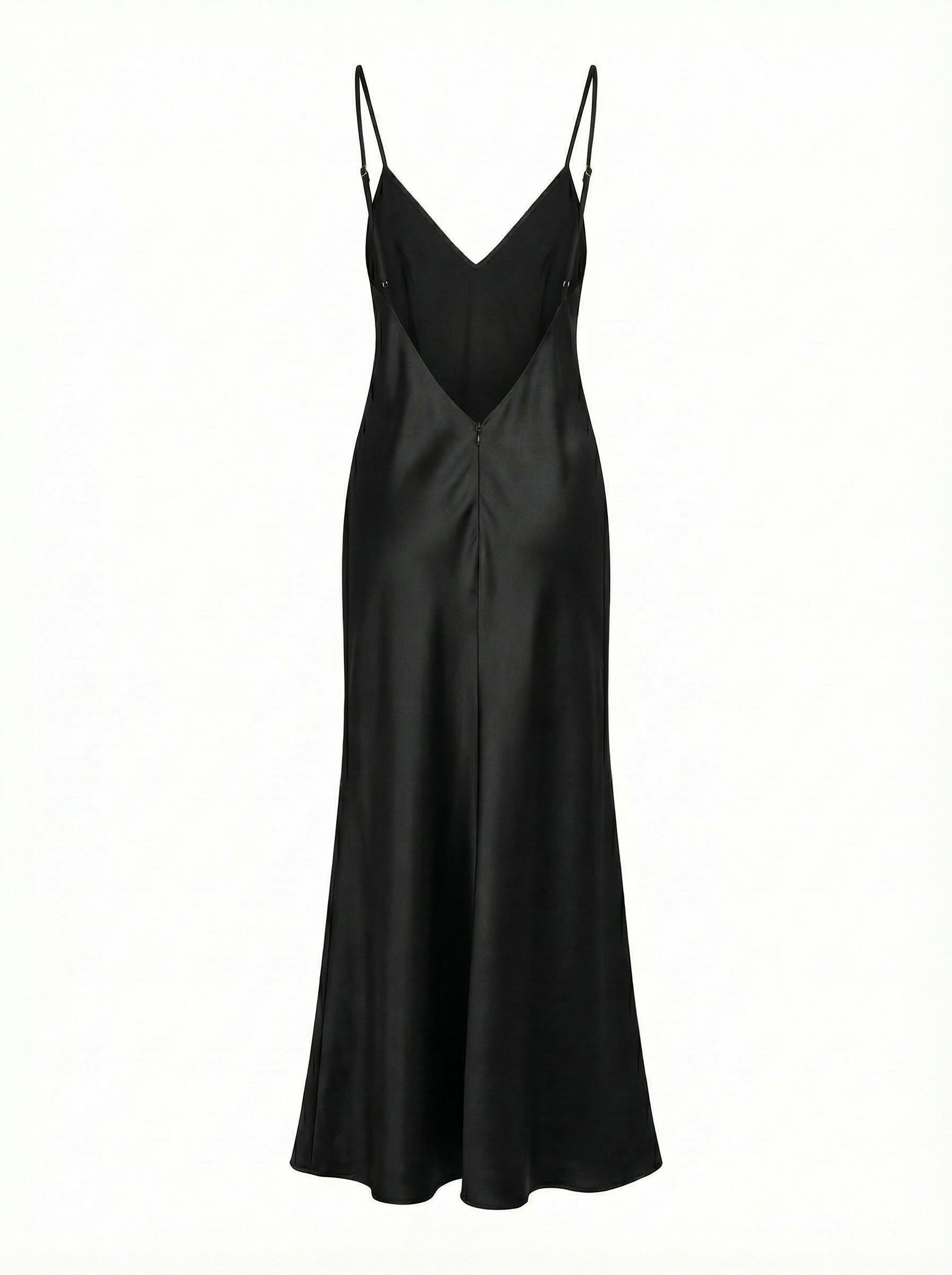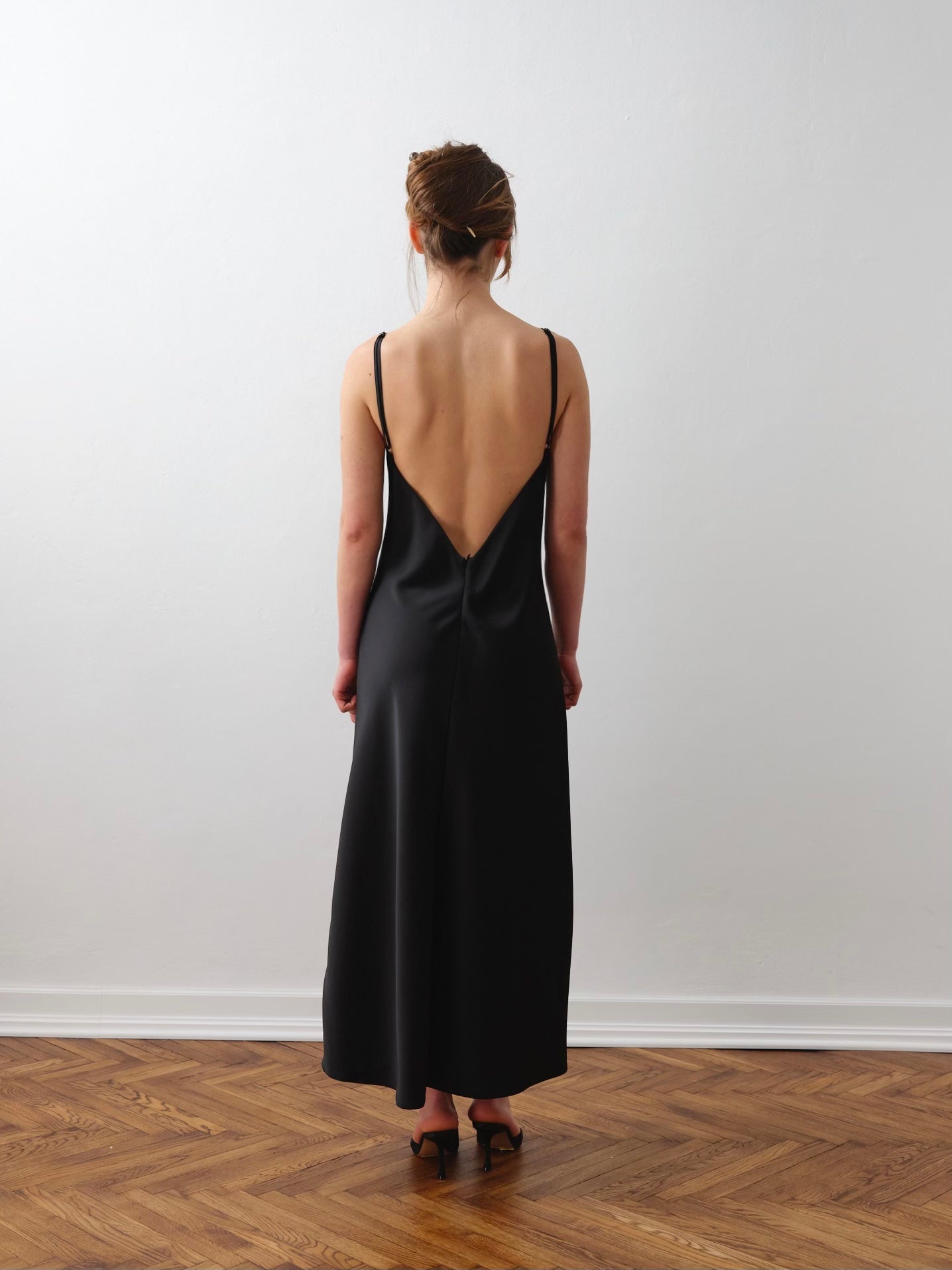 Сатинова чорна сукня з вирізом на спині – це поєднання ніжності, жіночності та спокійної естетики для домашніх і камерних моментів. Легка сатинова тканина м’яко лягає по фігурі, створюючи відчуття легкості та комфорту. Тонкі бретелі й відкритий виріз на спині додають образу витонченості, а довжина максі формує стриманий, елегантний силует. Сукня підходить для вечірнього відпочинку вдома, повільних ранків або особливих домашніх моментів.