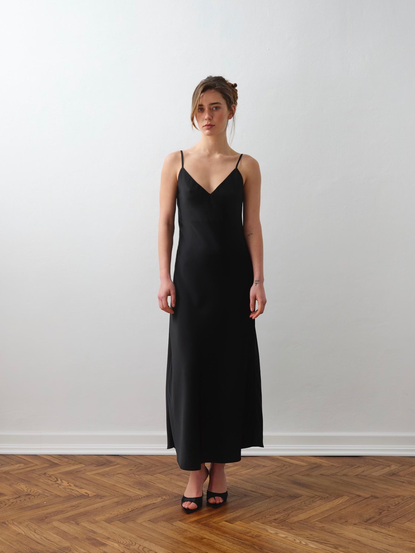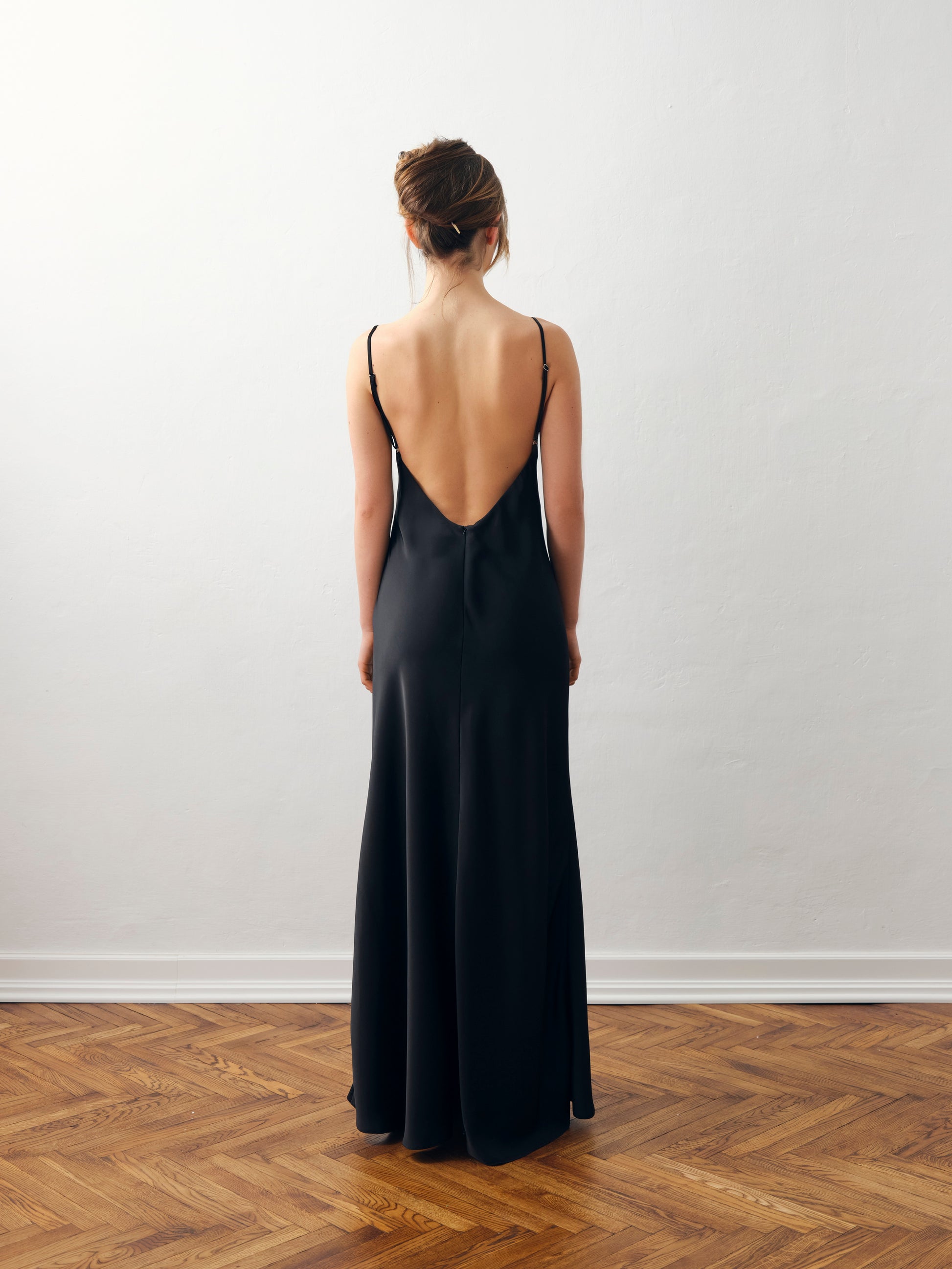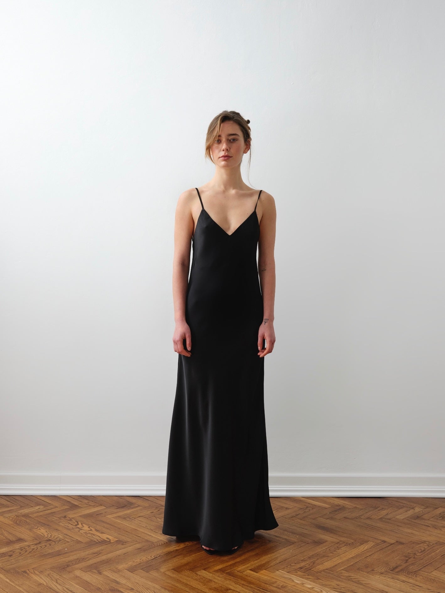 Сатинова чорна сукня з вирізом на спині – це поєднання ніжності, жіночності та спокійної естетики для домашніх і камерних моментів. Легка сатинова тканина м’яко лягає по фігурі, створюючи відчуття легкості та комфорту. Тонкі бретелі й відкритий виріз на спині додають образу витонченості, а довжина максі формує стриманий, елегантний силует. Сукня підходить для вечірнього відпочинку вдома, повільних ранків або особливих домашніх моментів.