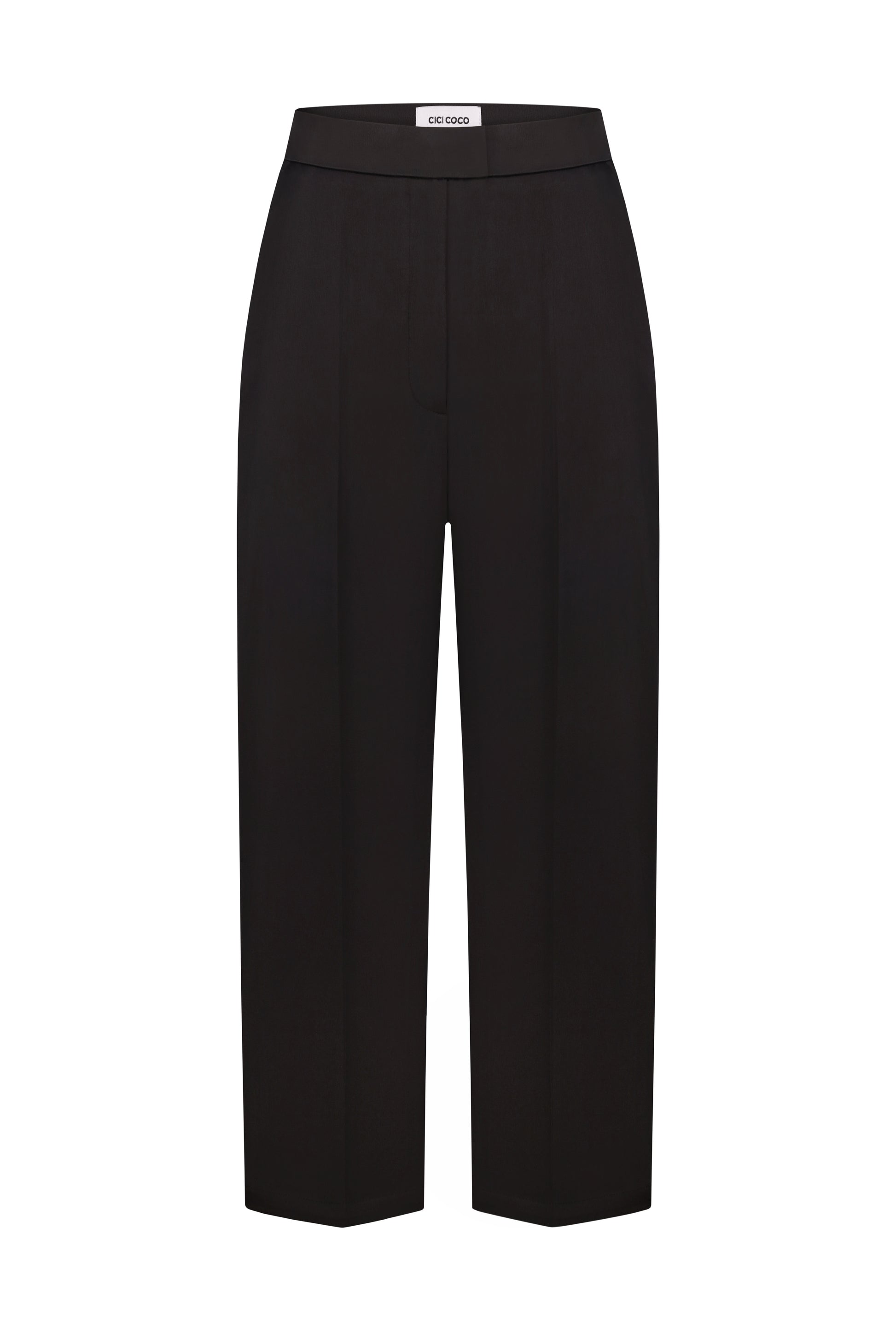 Сатинові чорні штани прямого крою чудово комбінуються з жакетами, блузами та топами для створення стильних офісних і повсякденних образів. У поєднанні з мінімалістичними аксесуарами вони стають основою елегантного луку.