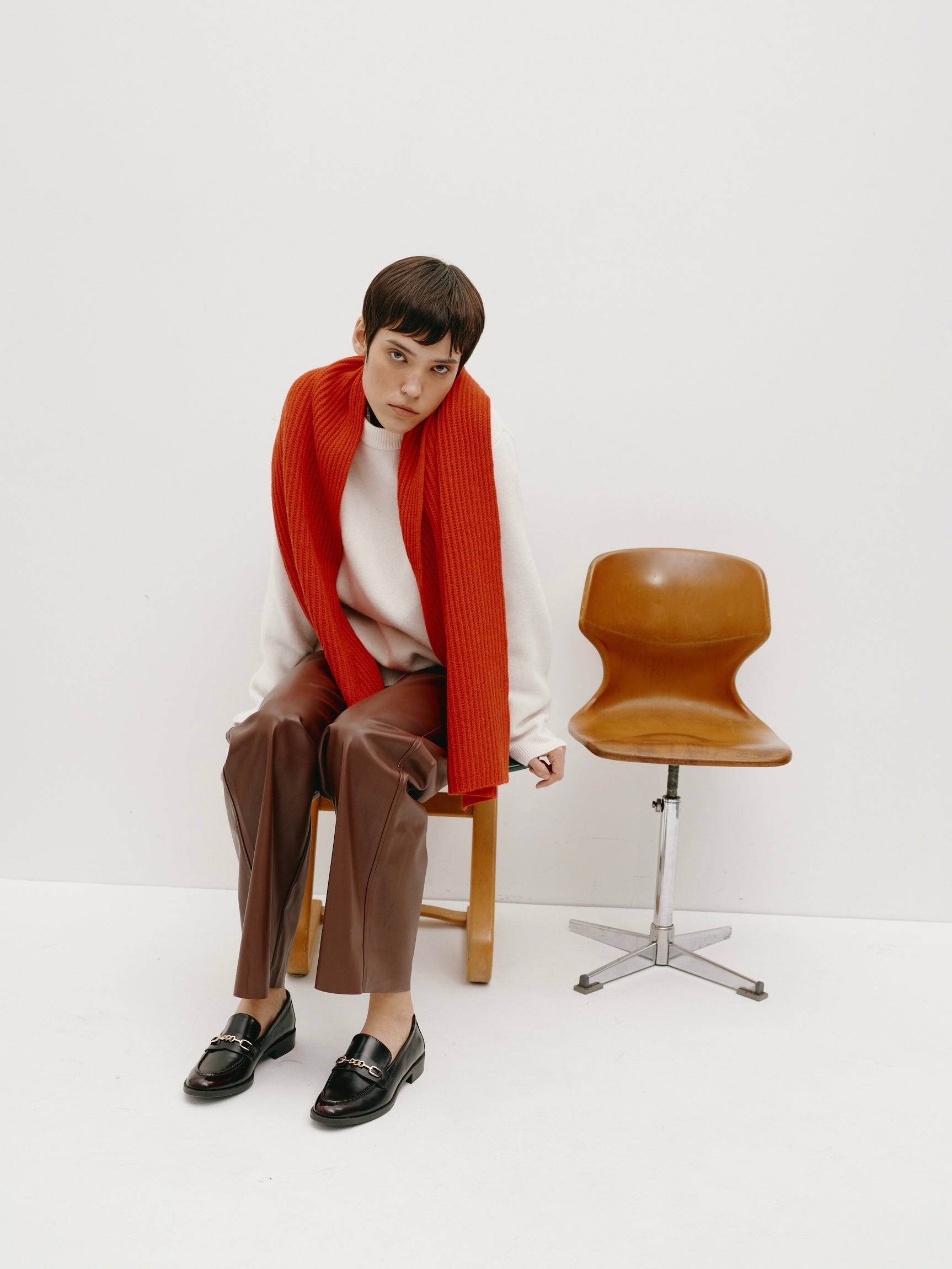 Thanks to its minimalist design, the scarf complements both classic coats and jackets, as well as casual looks with puffer jackets or sweaters. It not only keeps you warm in cold weather but also adds elegance and completes any outfit.