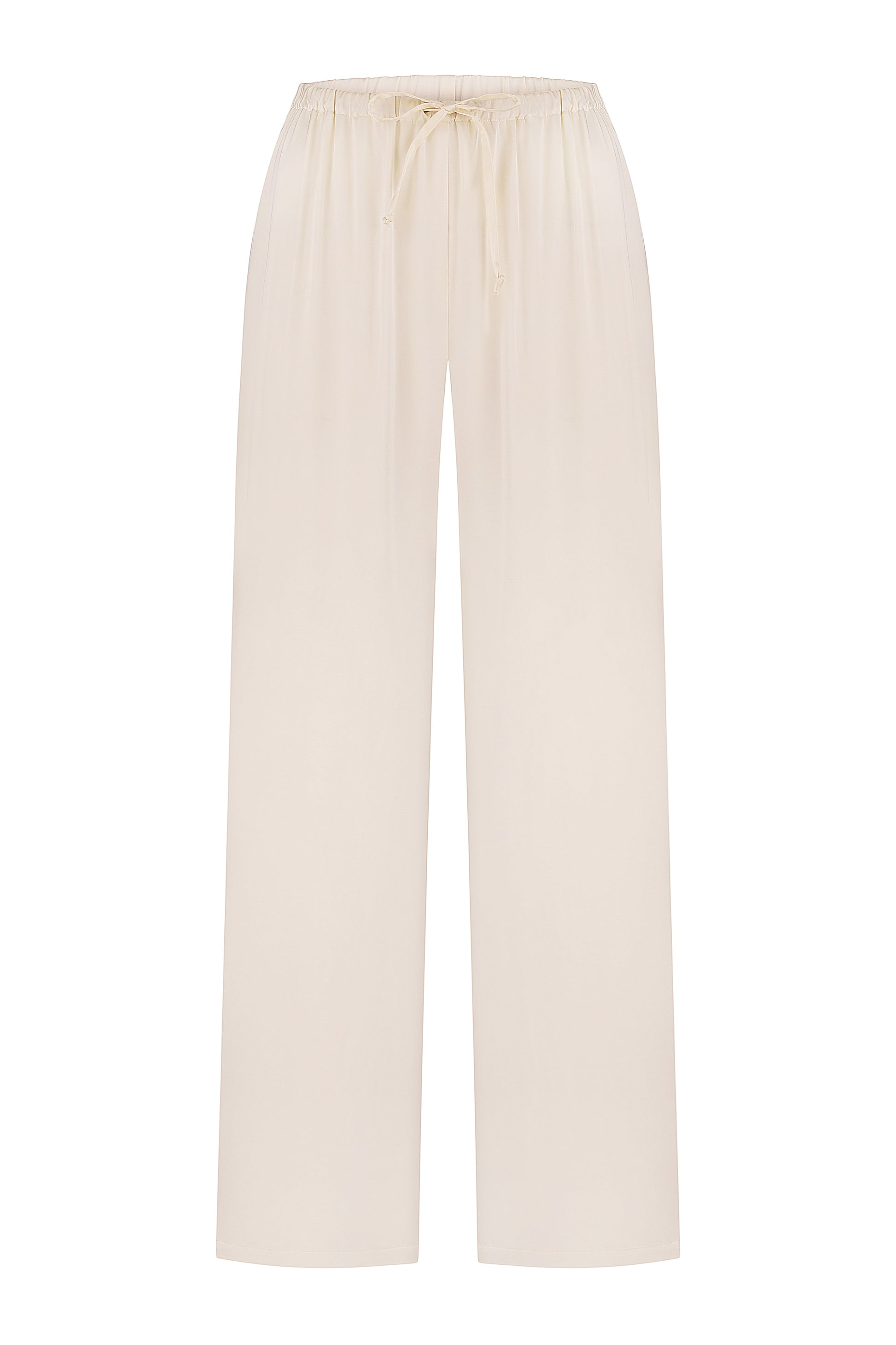 Women's sand satin trousers — a perfect blend of elegance and comfort. The lightweight flowing fabric adds sophistication to the look, while the relaxed fit ensures maximum comfort. The drawstring at the waist allows for adjustable fit, creating the ideal silhouette for any figure.