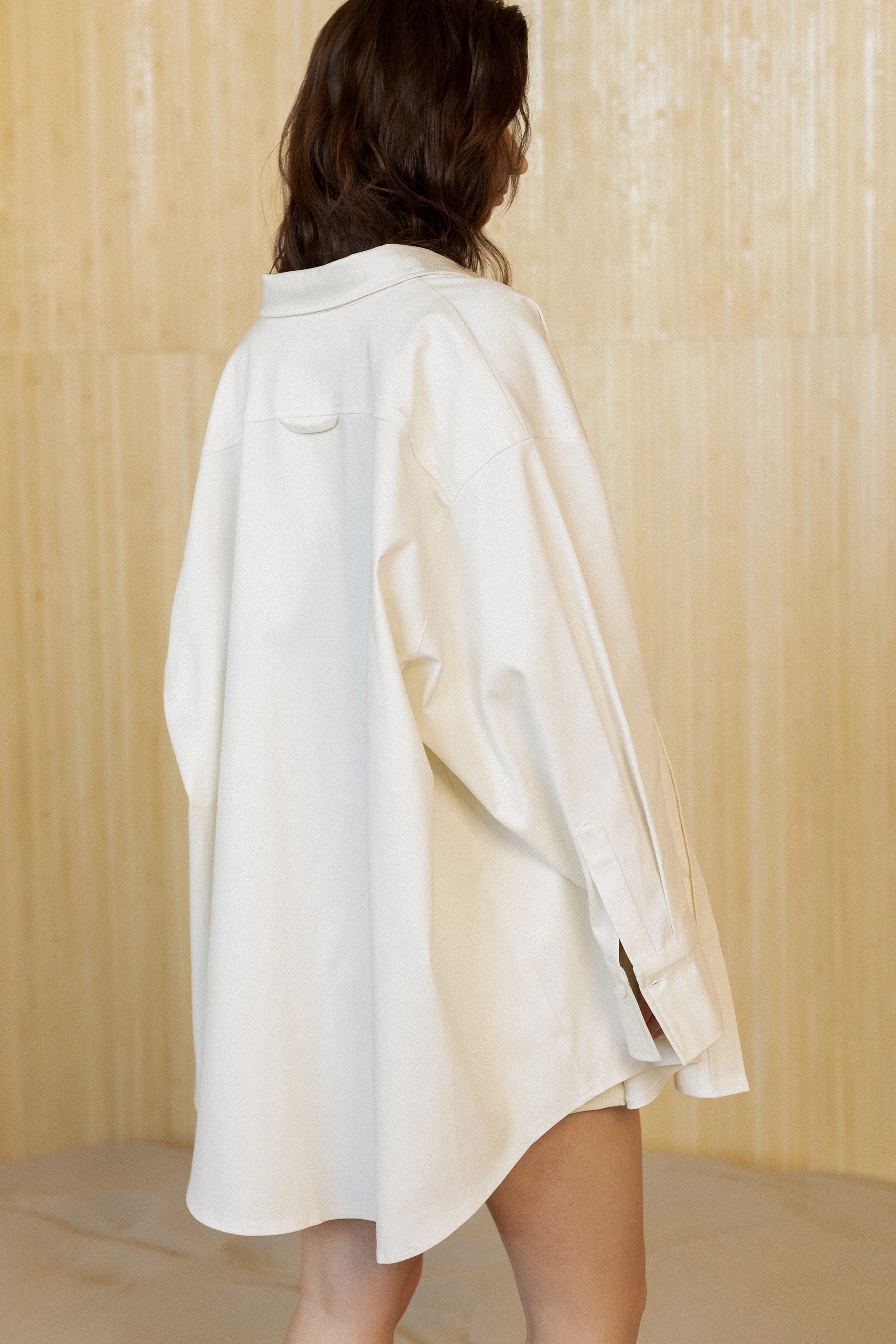 The women's cotton shirt is a comfortable and stylish wardrobe essential. Its loose fit ensures lightness and freedom of movement, while the natural fabric provides a pleasant feel throughout the day. The minimalist design makes the shirt versatile, as it pairs perfectly with both classic palazzo pants and jeans or skirts.
