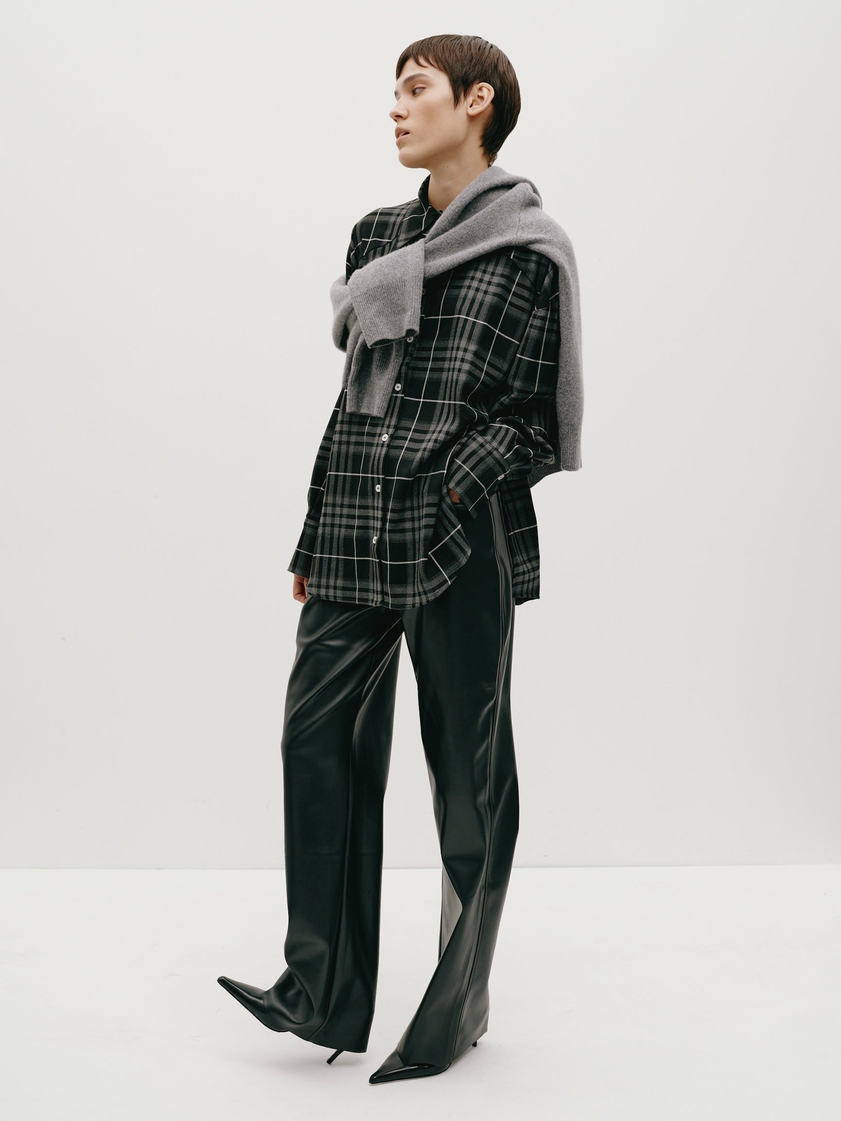 By purchasing the oversized checkered shirt, you can create a stylish look, complementing it with sneakers for a casual vibe or heels for a more elegant style. The shirt easily fits into different stylings—from office attire to laid-back outings.