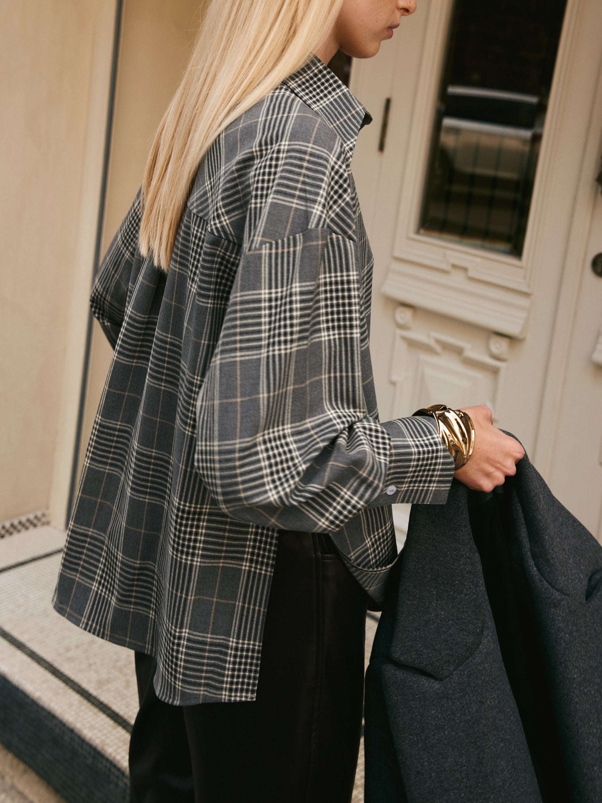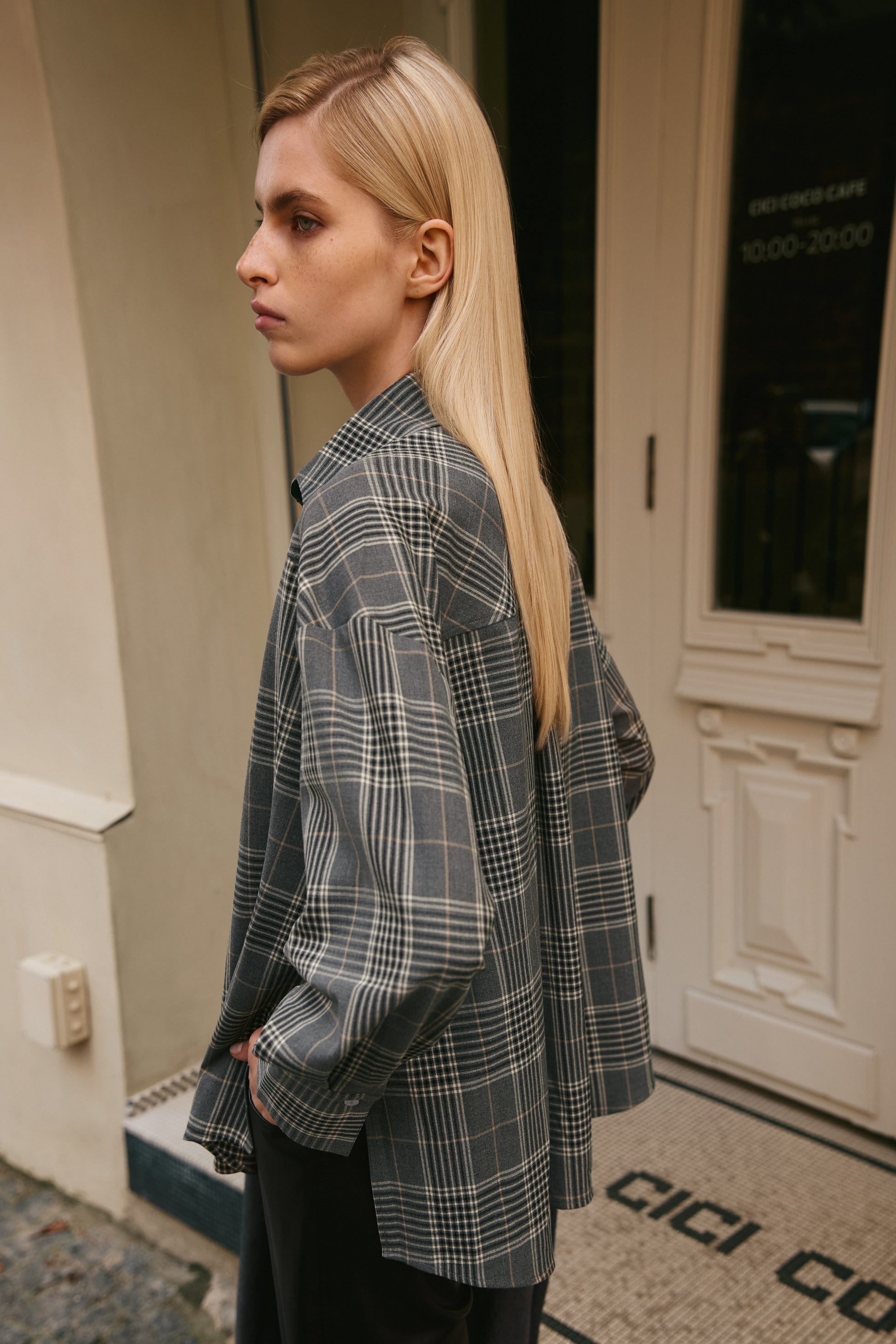 Сіра сорочка оверсайз у клітинку – базова річ, яка пасує як для повсюдних образів, так і для стильних багатошарових комбінацій. Носіть її з джинсами, шортами чи легінсами, або використовуйте як легку накидку поверх топа чи сукні.