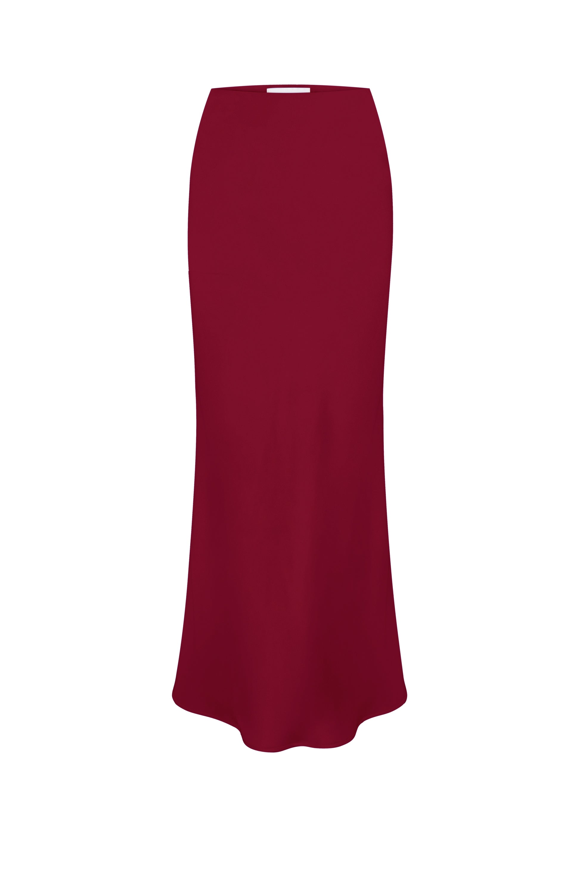 A women's cherry satin maxi skirt is an elegant and stylish choice for creating luxurious looks. The straight cut accentuates the figure, while the shiny satin adds sophistication and grace.
