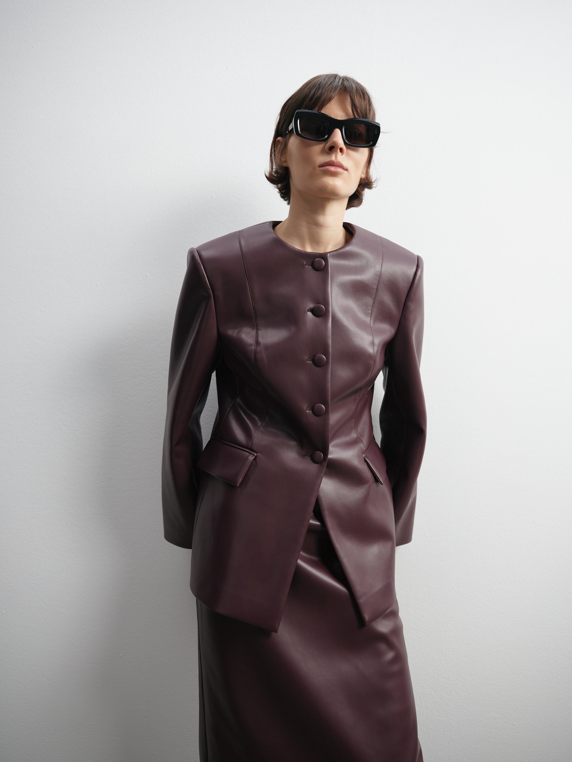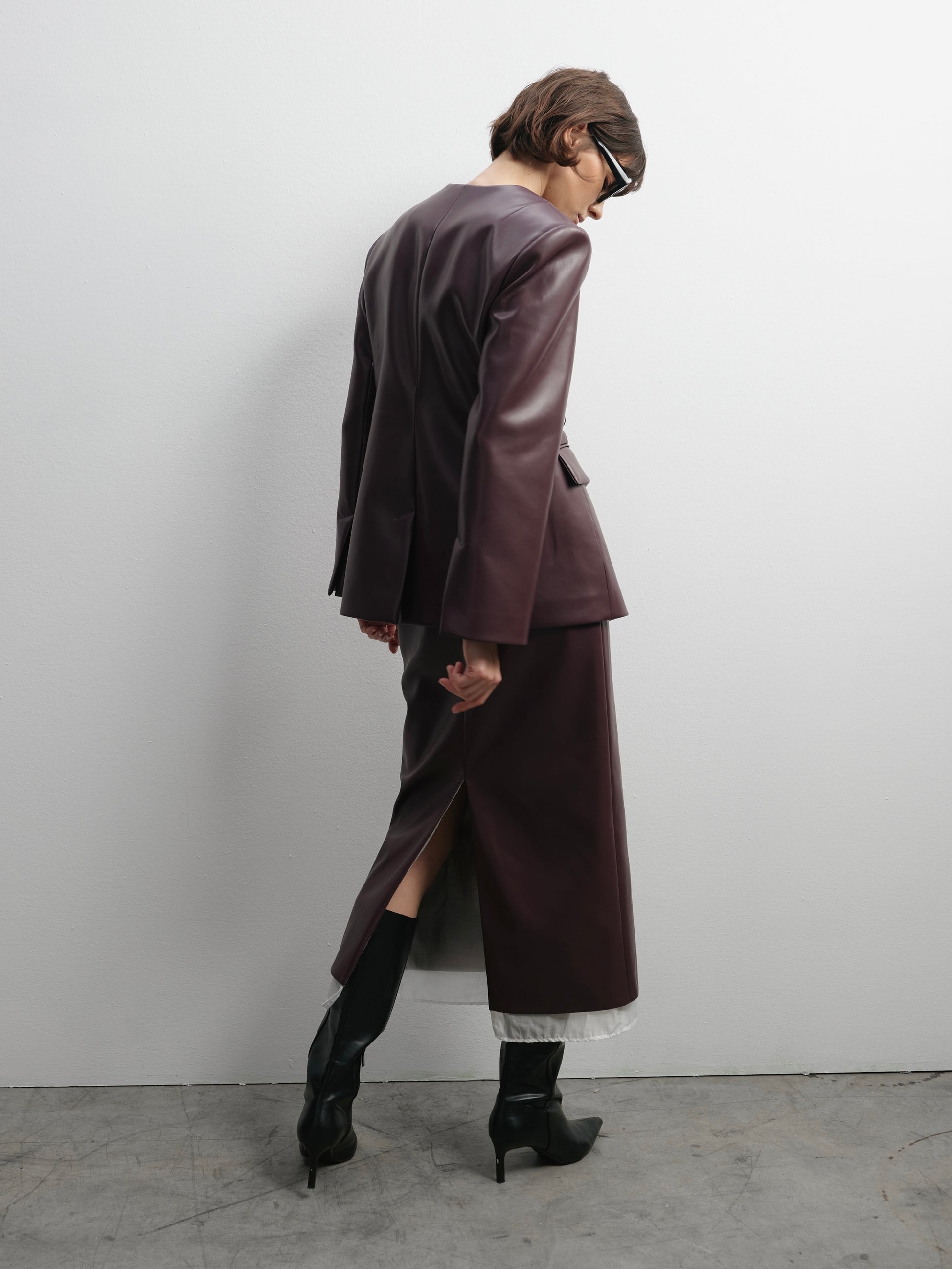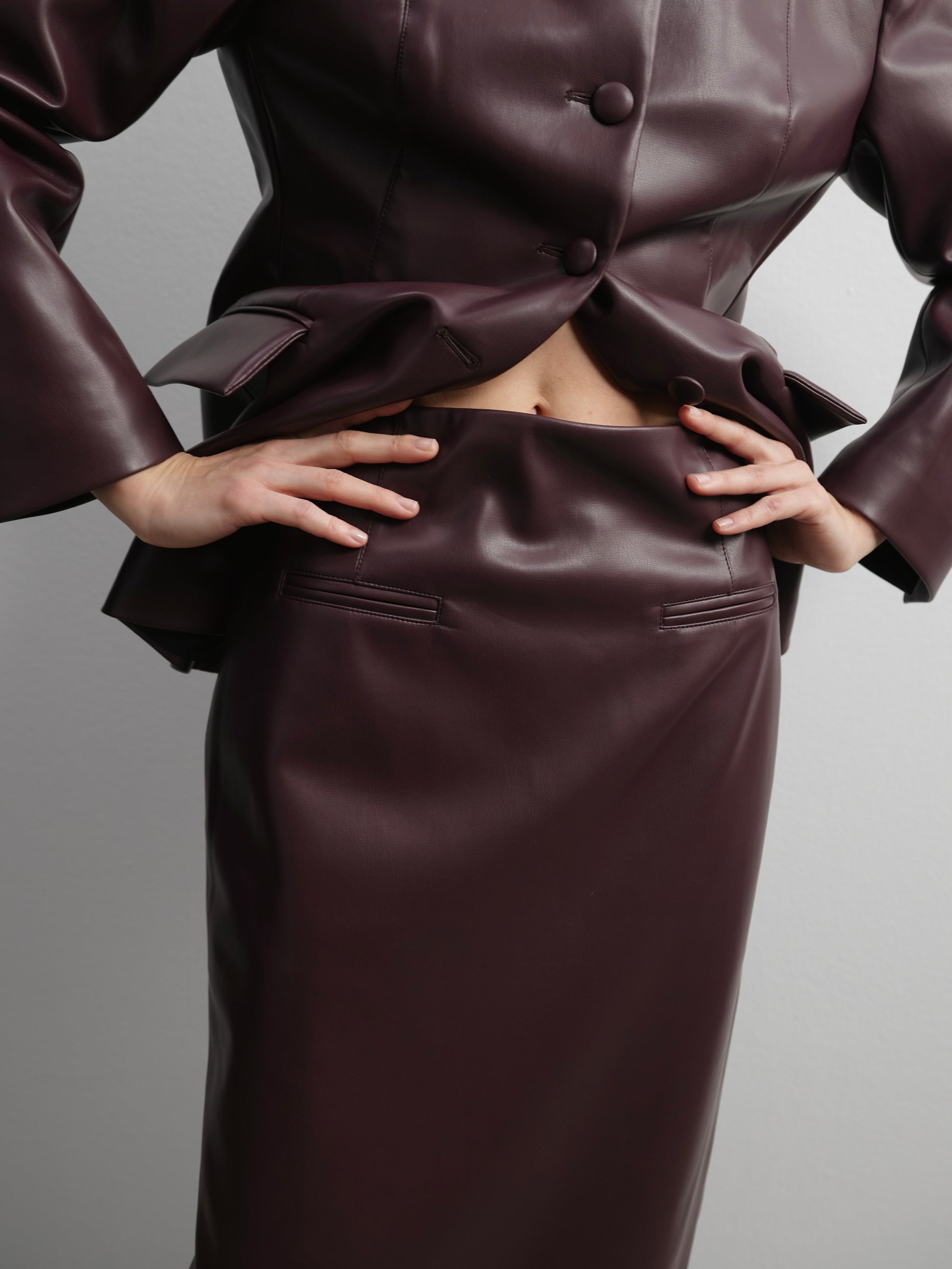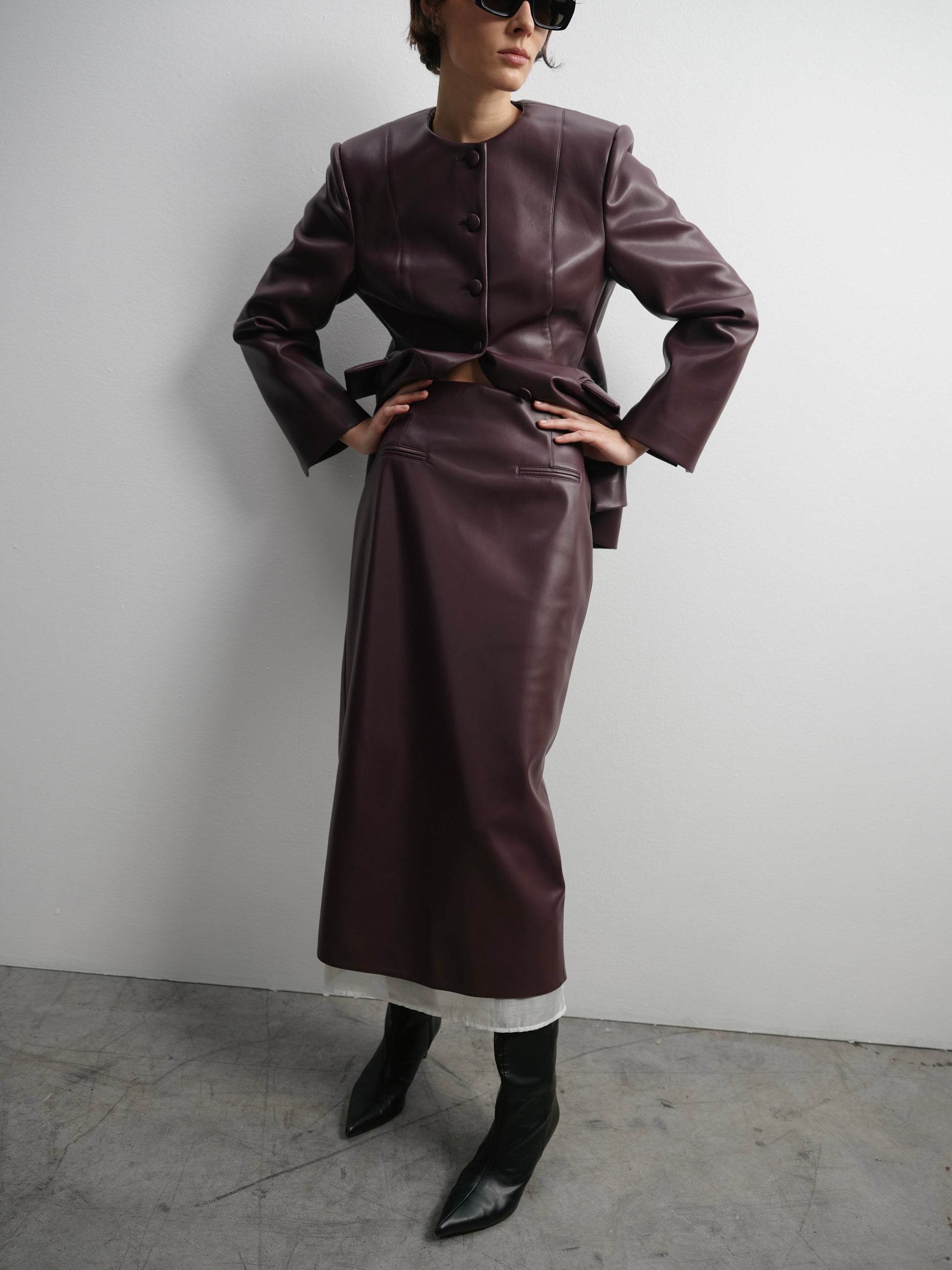 Спідниця сливова еко - шкіра з контрастною підкладкою
