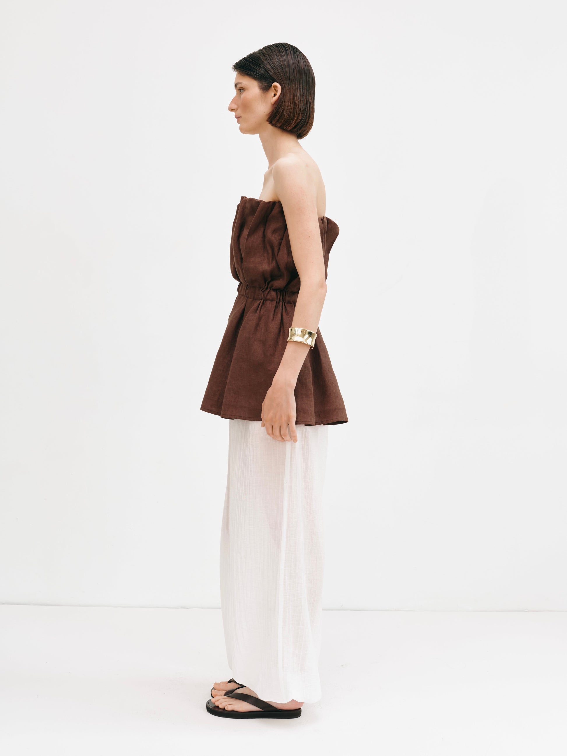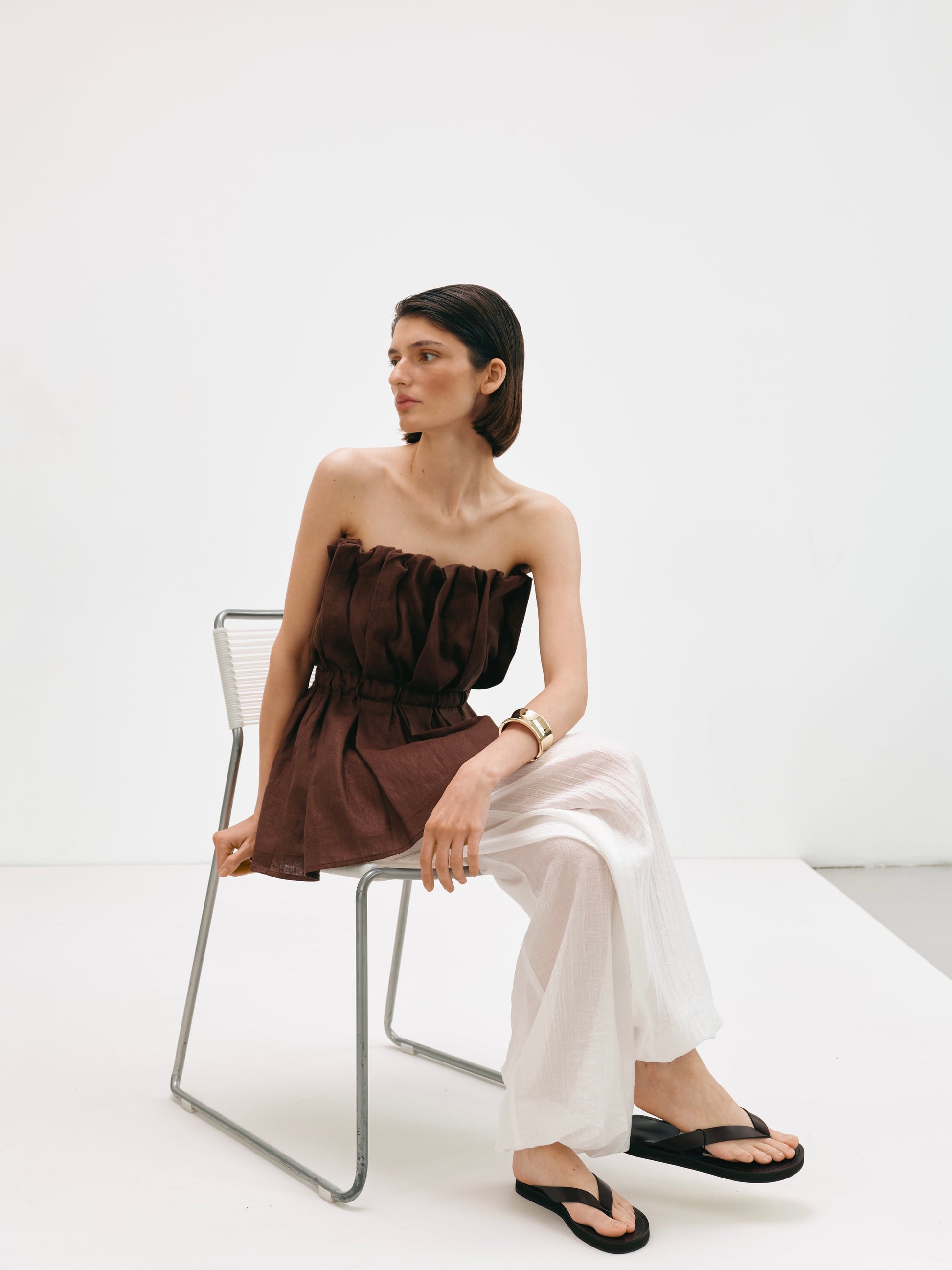 Топ має зручну посадку, тримається за рахунок еластичної резинки та корсетного шва, що забезпечує комфорт і надійну фіксацію. Натуральна тканина приємна до тіла та невибаглива у догляді.