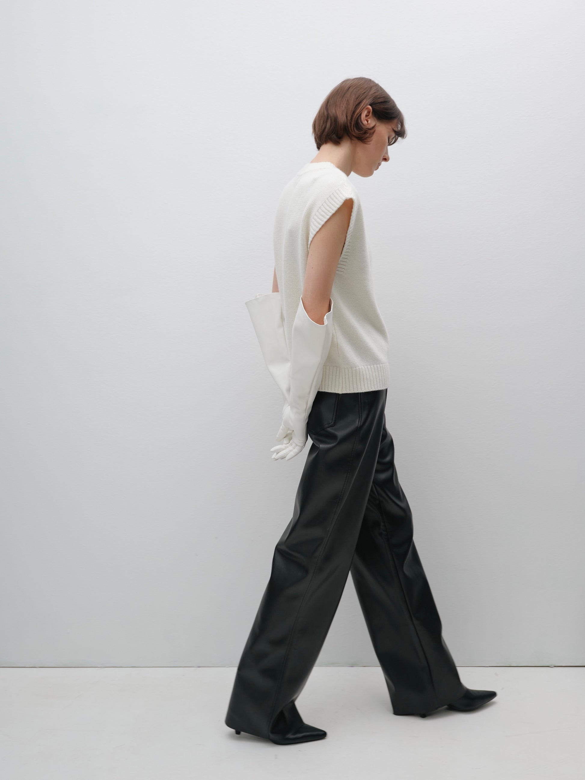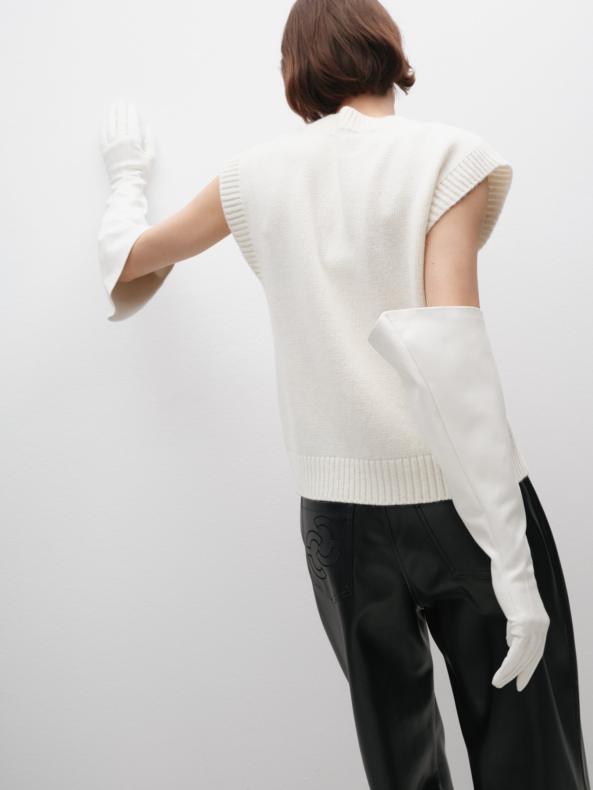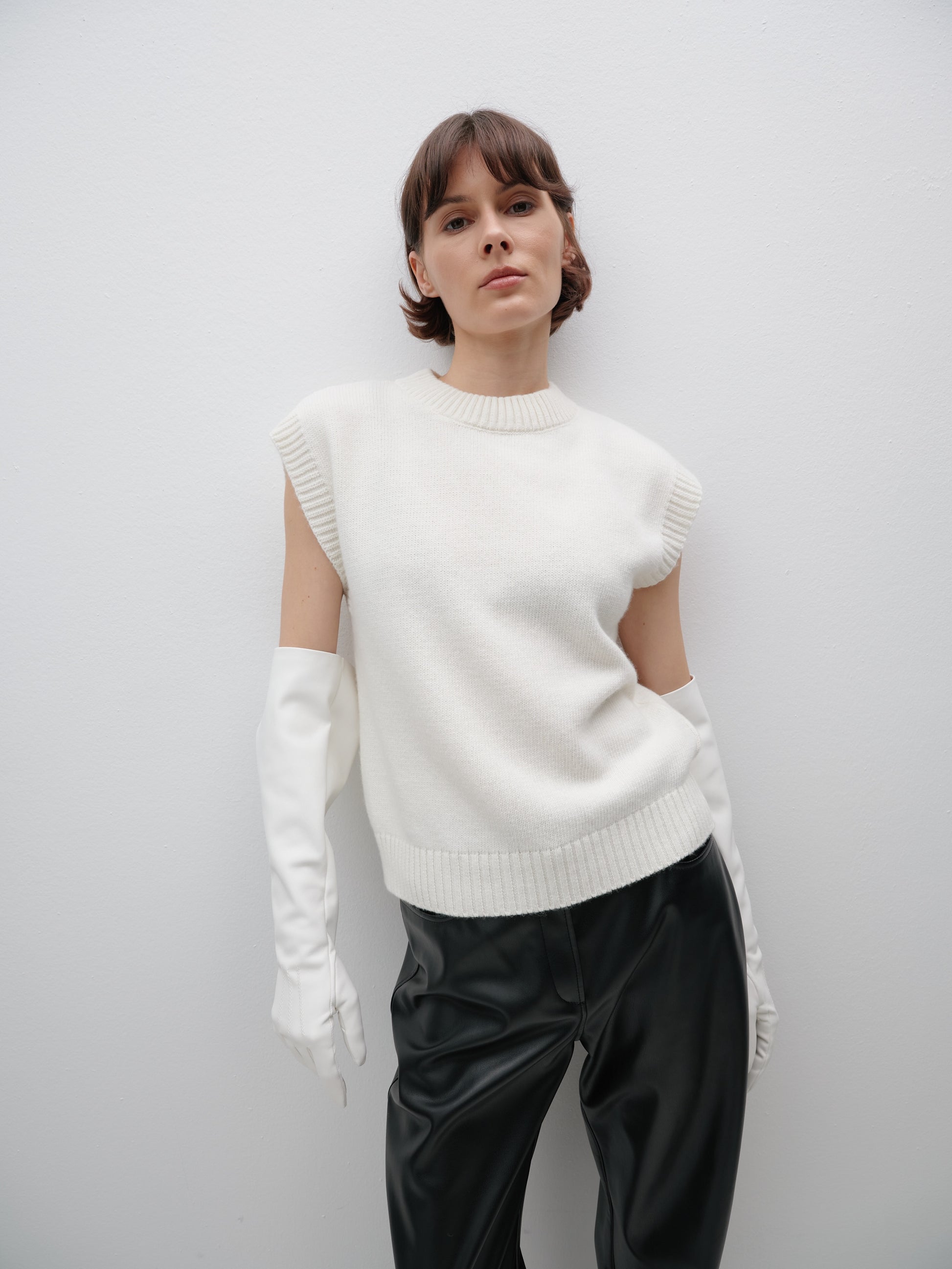 The milk shade easily pairs with various clothing items such as shirts, t-shirts, dresses, or blazers, adding a stylish and cozy touch to the outfit. The vest can be worn on its own or layered, allowing for different looks every day.