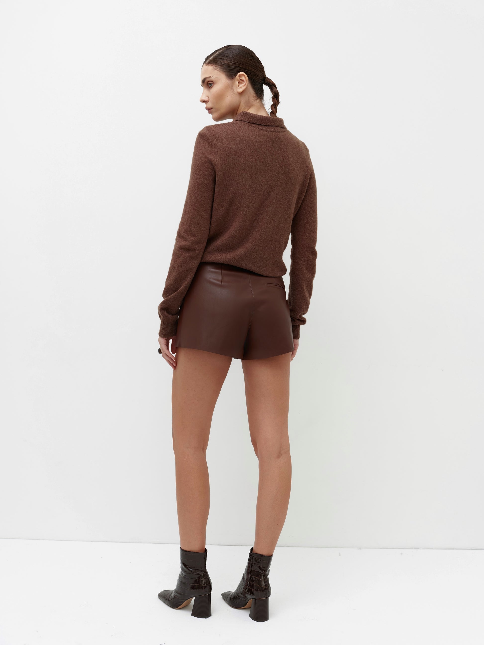 Жіночі шорти еко-шкіра коричневі – це сміливий акцент у гардеробі, що поєднує стиль, мінімалізм і універсальність. Лаконічний крій підкреслює фігуру, а висока посадка додає витонченості, роблячи їх ідеальним вибором для різних образів.