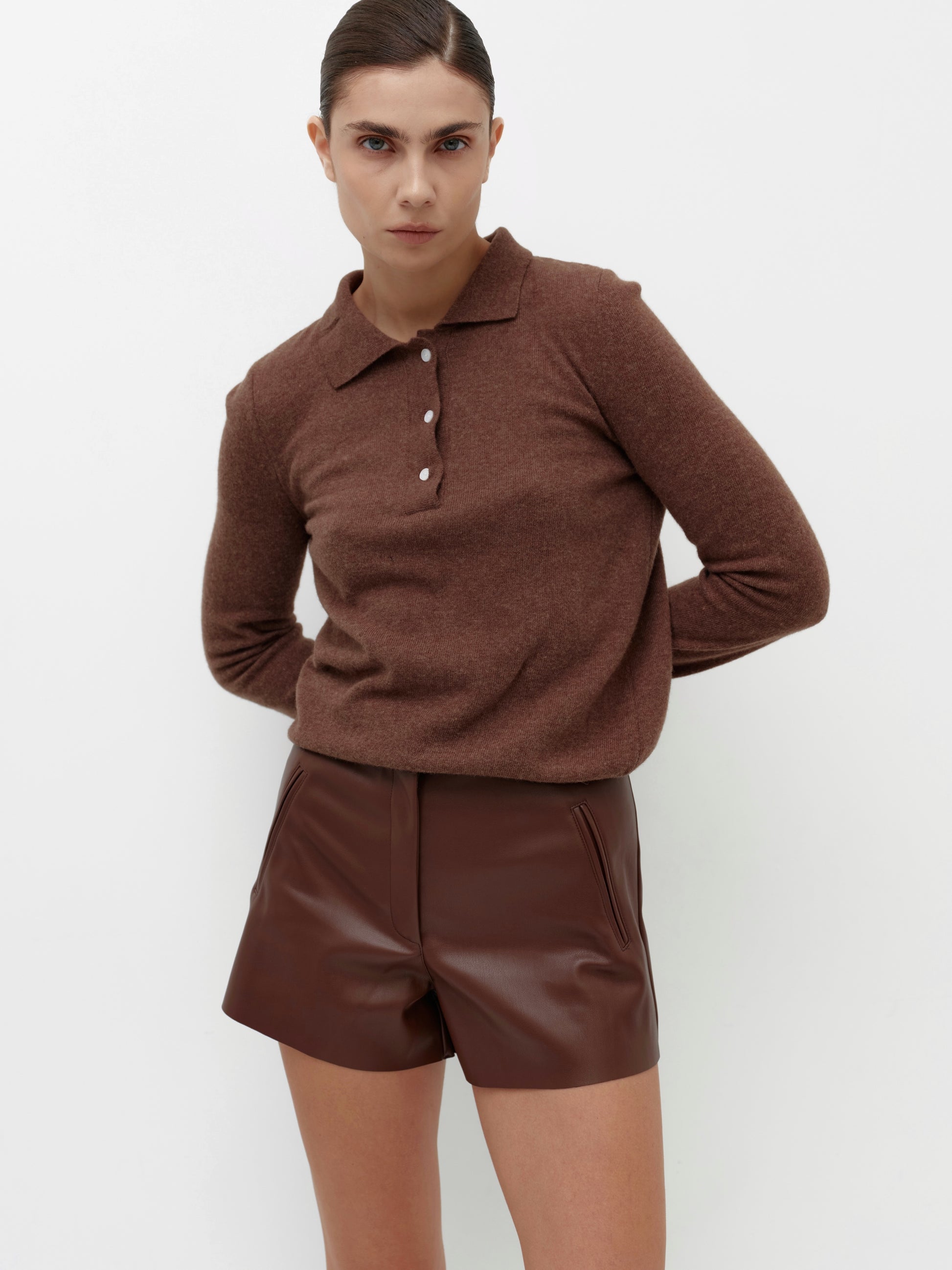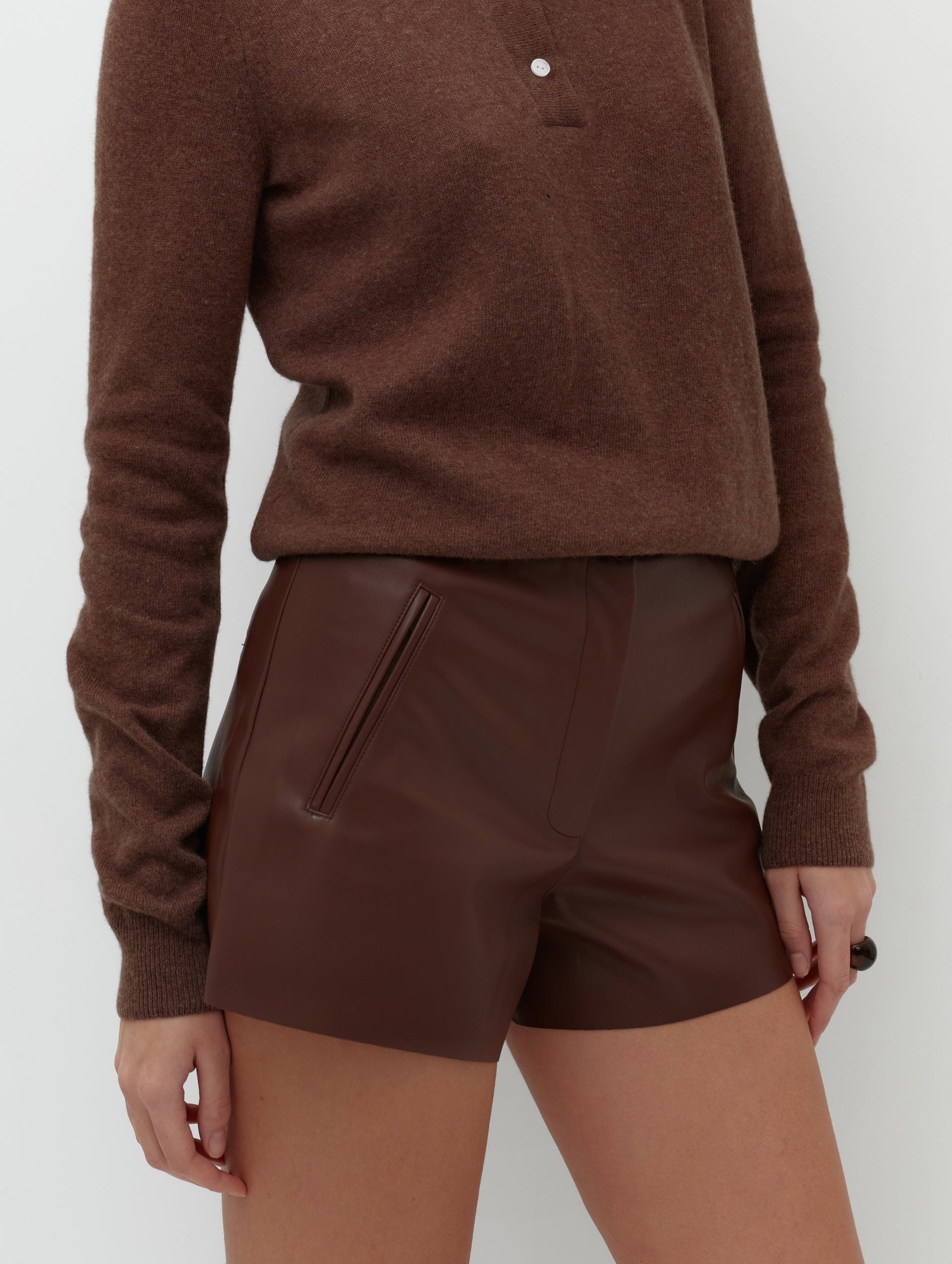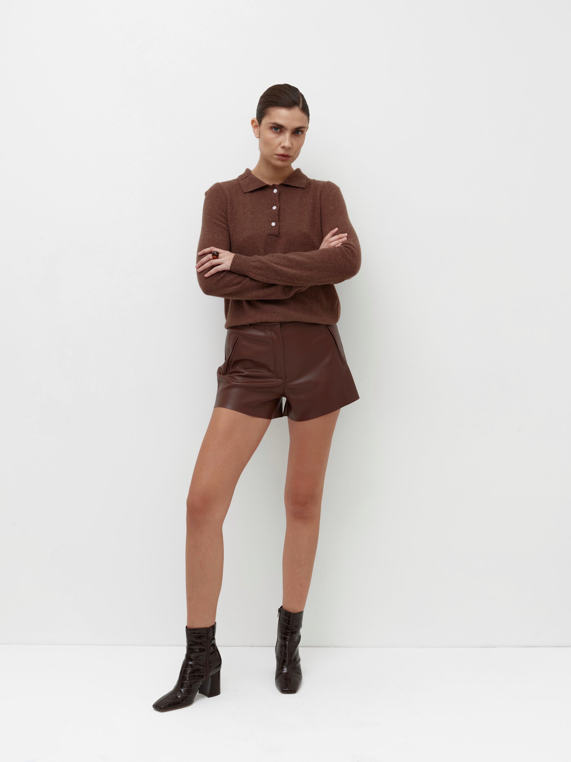 М’яка еко-шкіра приємна на дотик і проста у догляді, зберігає форму та стильний вигляд. Шорти застібаються на блискавку та ґудзик, забезпечуючи зручну посадку.