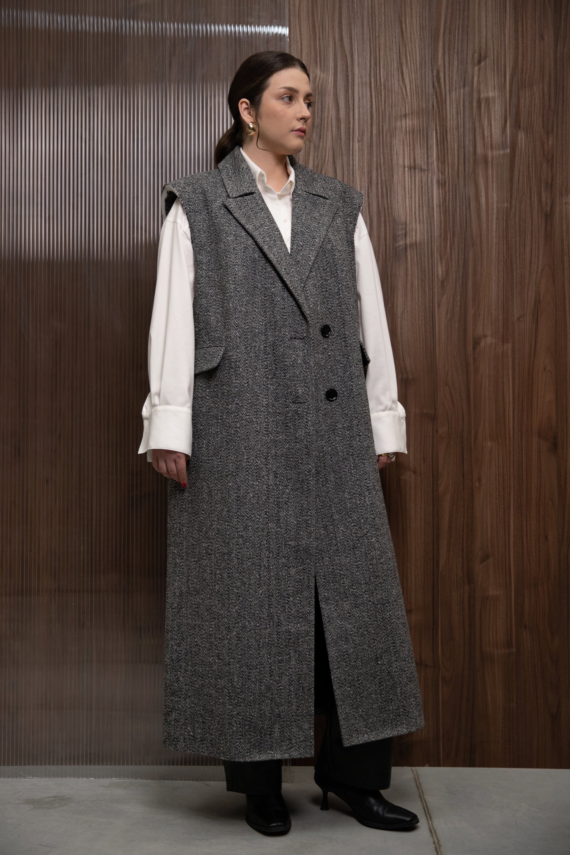 Цей жилет можна носити як самостійний верх або комбінувати з сорочками та гольфами, адаптуючи під різні стилі та сезони. Він чудово підходить як для ділових луків, так і для розслаблених повсякденних образів.