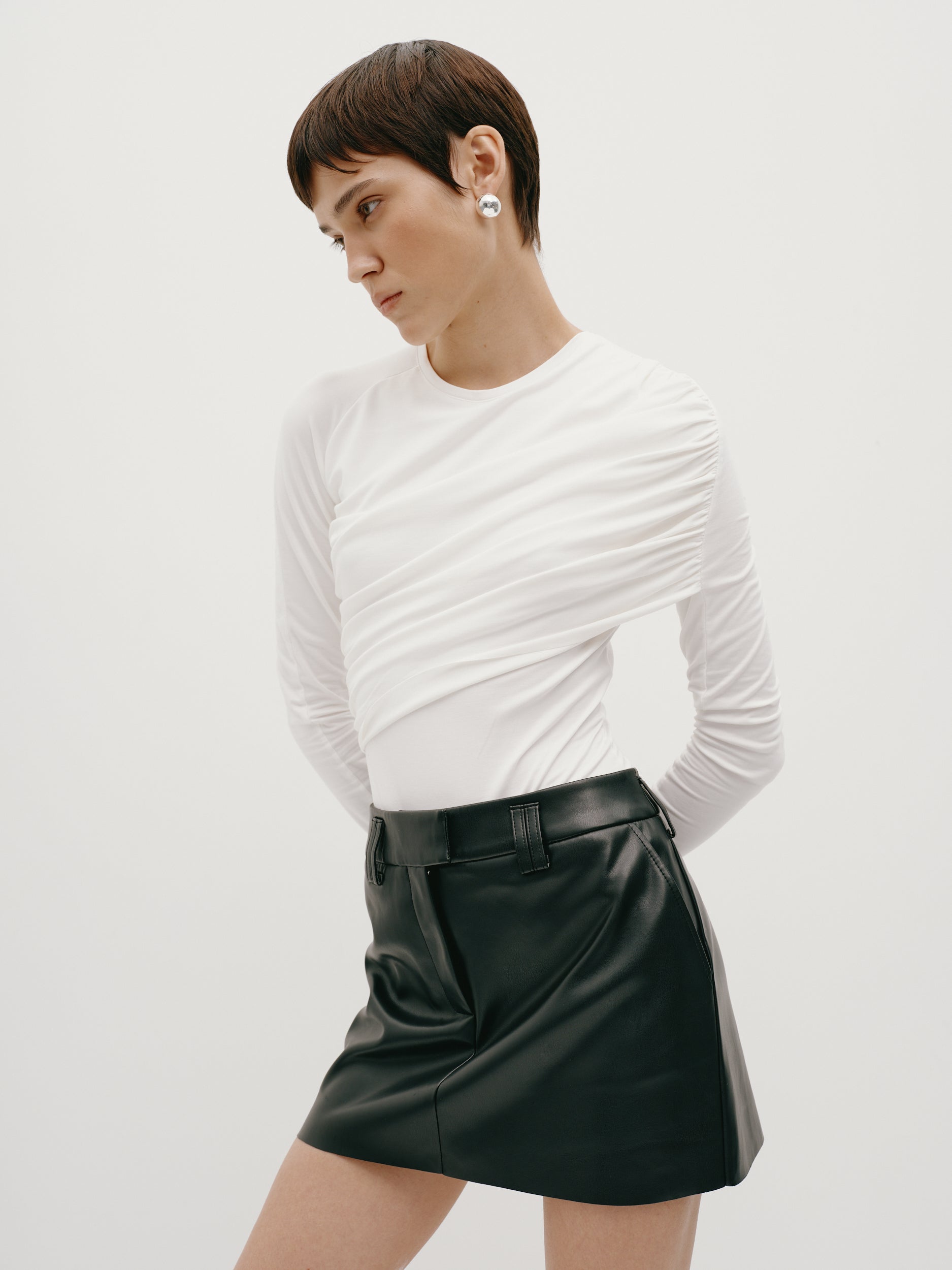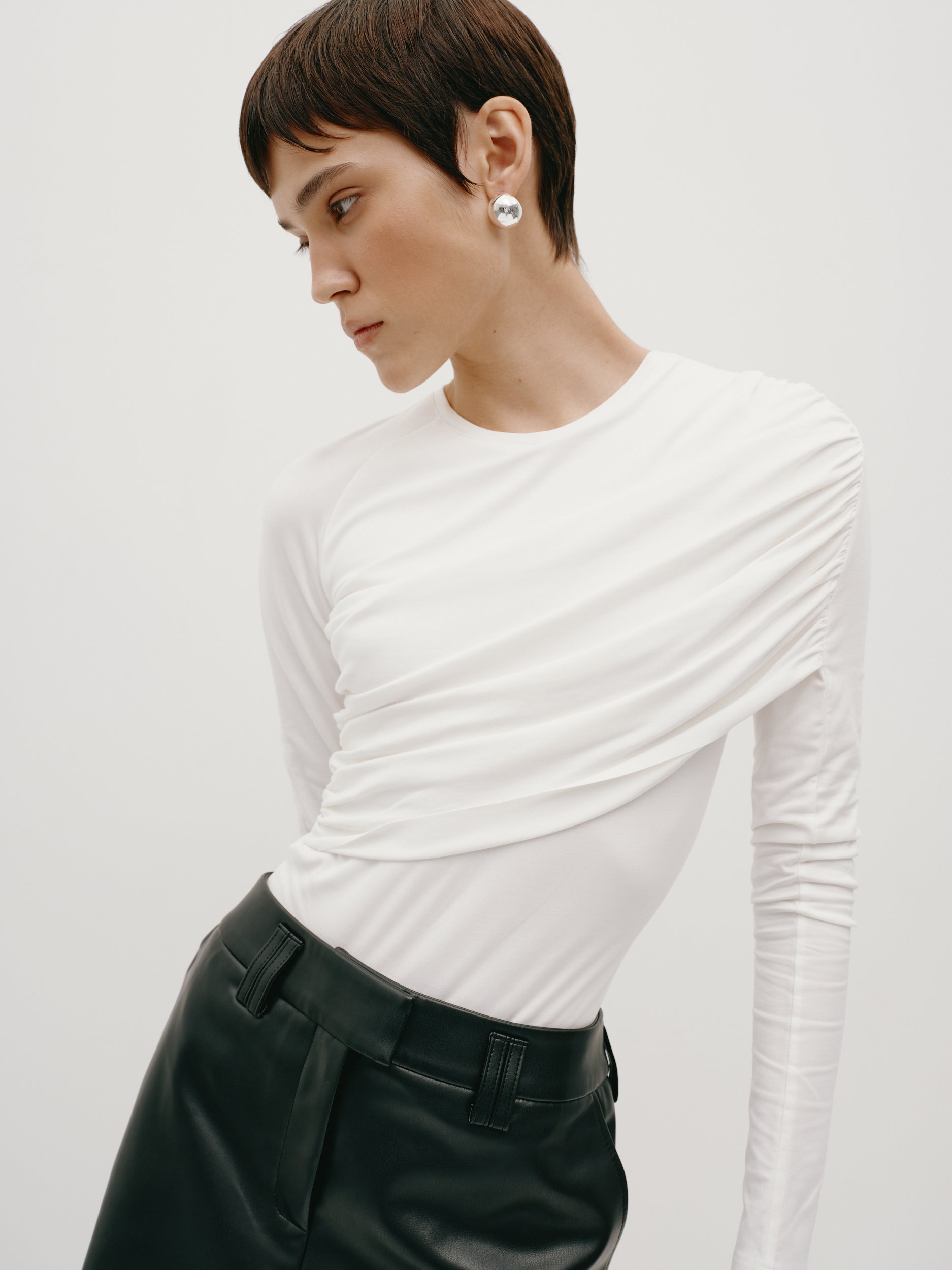 Боді чудово поєднується як із класичними жакетами та спідницями, так і з джинсами чи палаццо, дозволяючи створювати як елегантні, так і більш розслаблені луки. Купити жіноче молочне боді з драпіруванням можна для створення стильного базового гардероба, що підкреслить витонченість і жіночність.