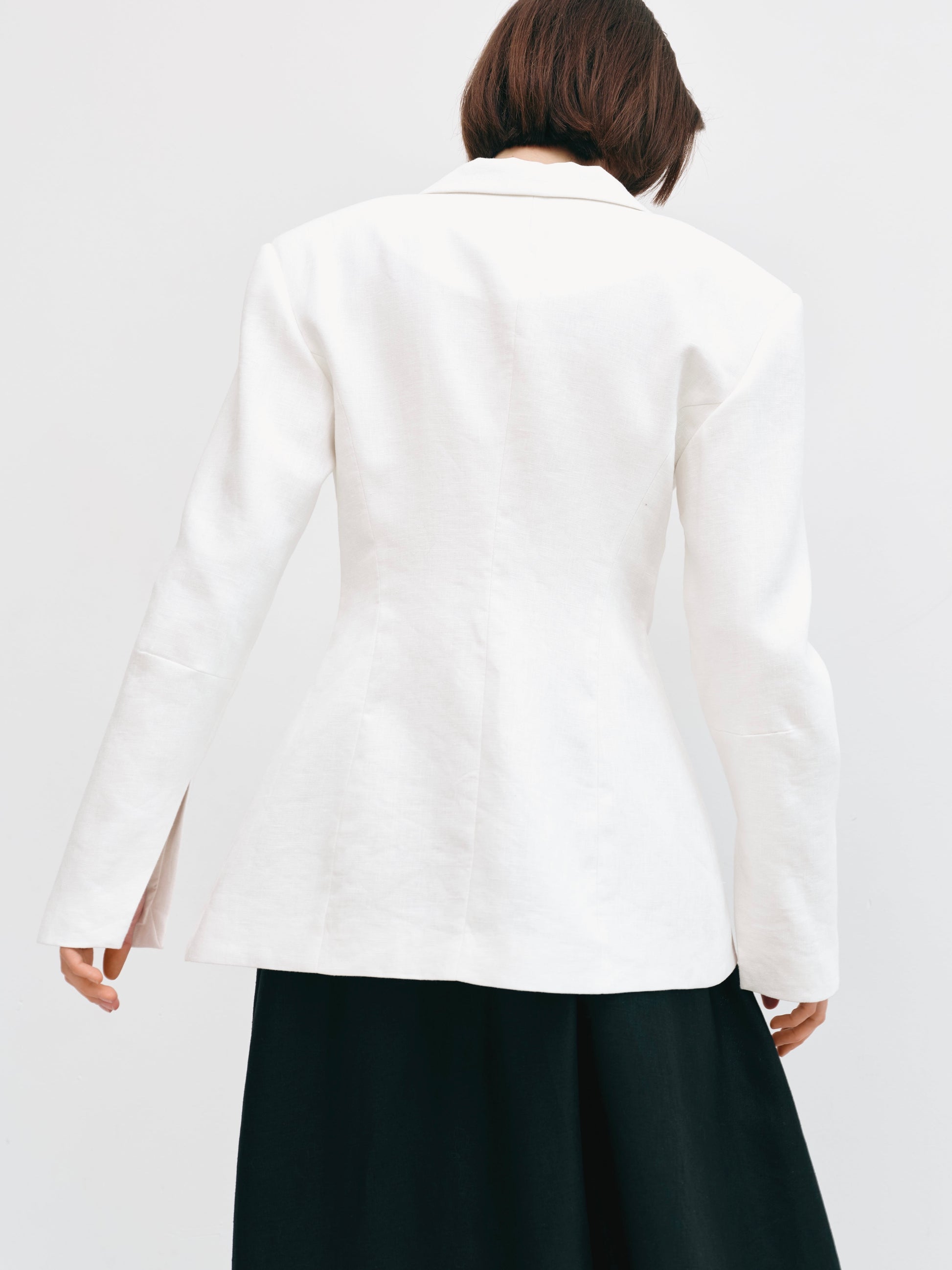 Жіночий жакет на талію молочний з льону — елегантність, легкість і природність у кожній деталі. Приталений силует підкреслює жіночну фігуру, а лаконічний крій додає образу вишуканості. Натуральна льняна тканина дарує комфорт у теплу пору року та приємне відчуття на тілі.