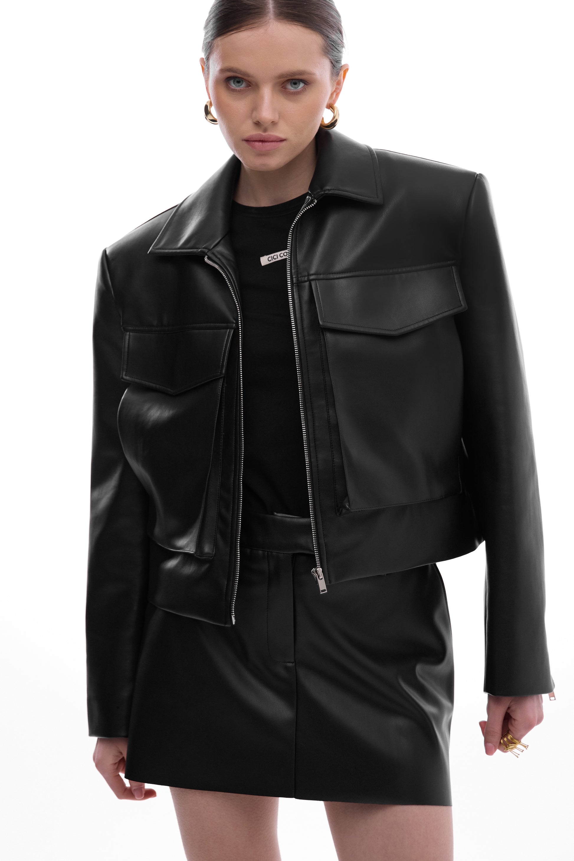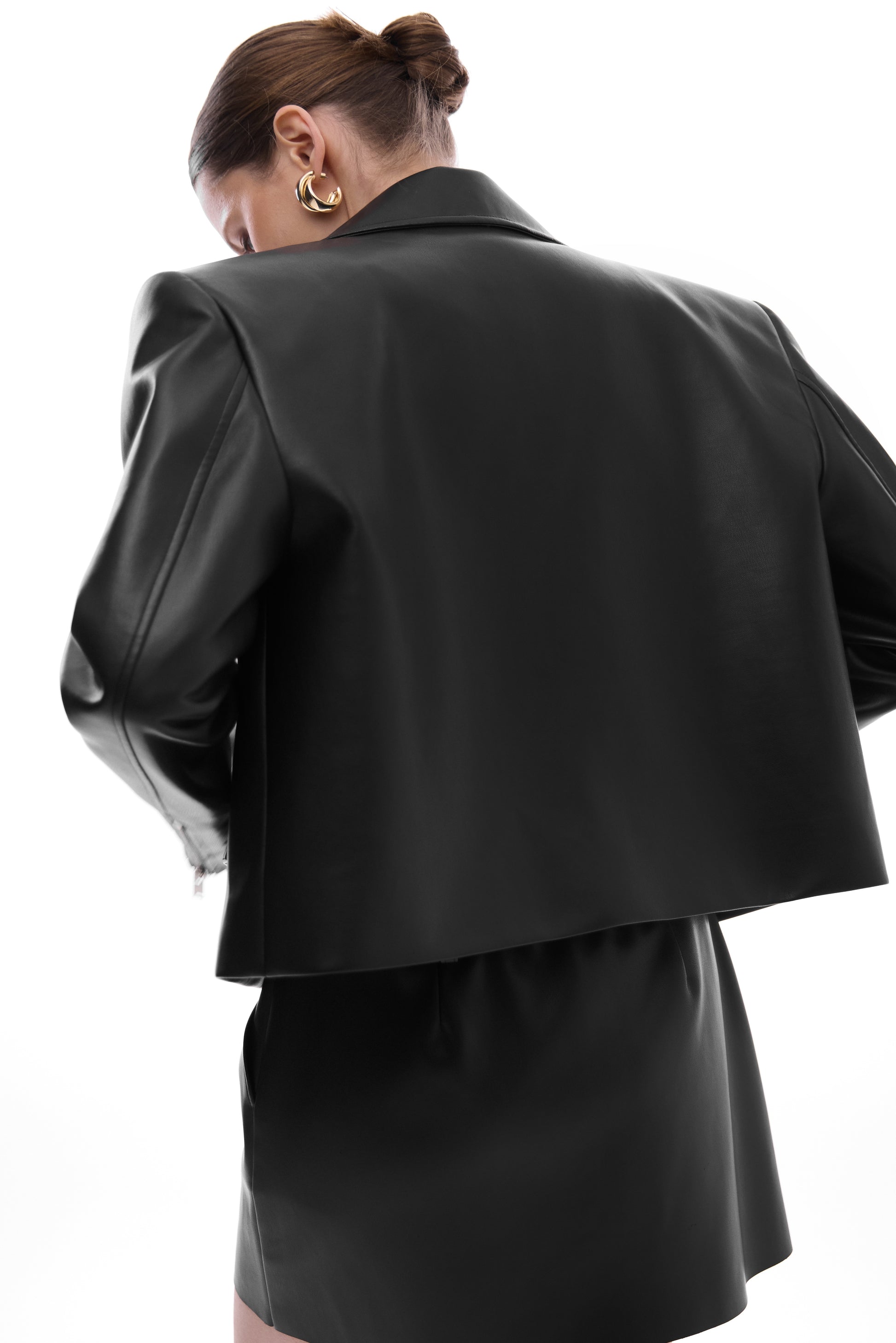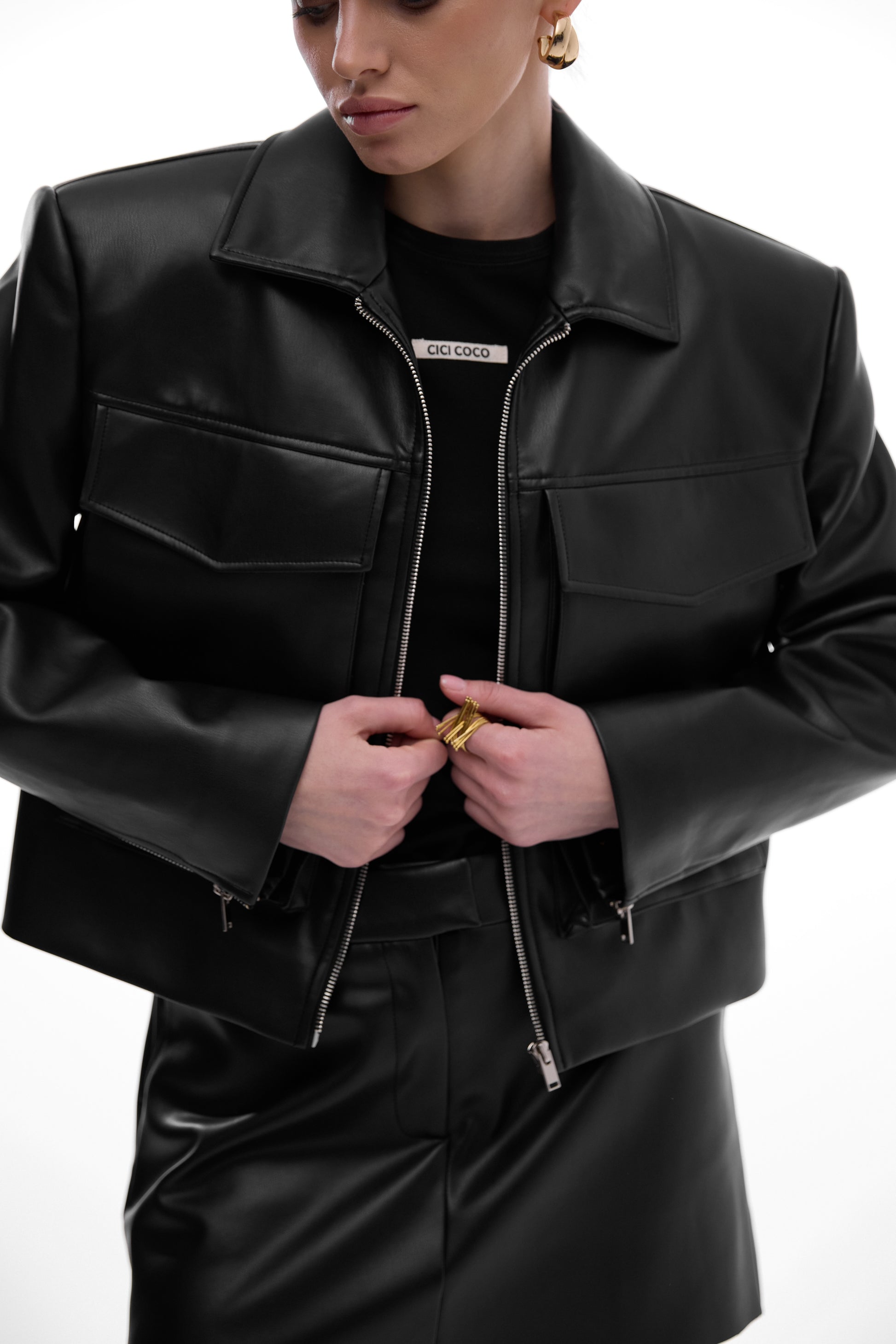 Якщо купити куртку з еко-шкіри у комплекті з широкими палаццо або спідницею, можна створити сучасний міський образ. А у поєднанні з джинсами чи шкіряними легінсами – стильний повсякденний лук із характером.