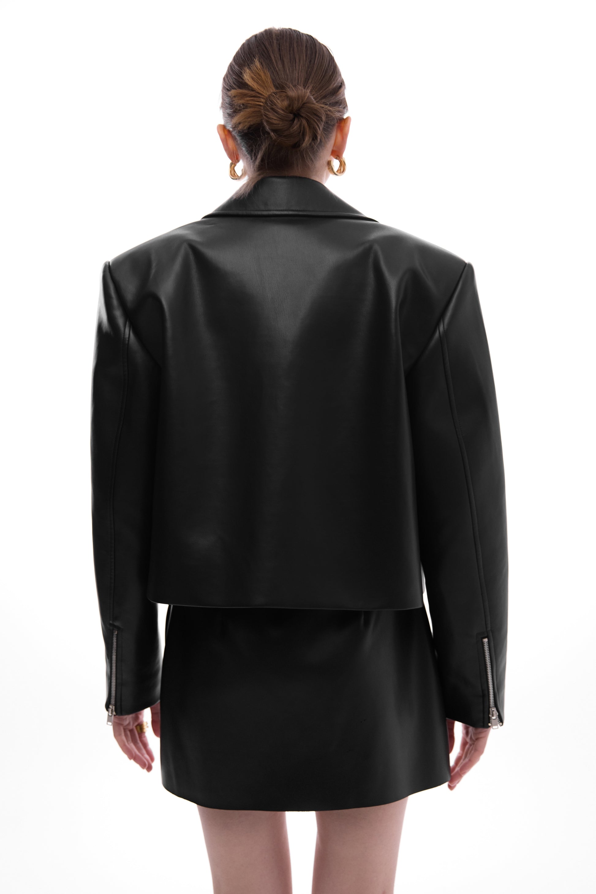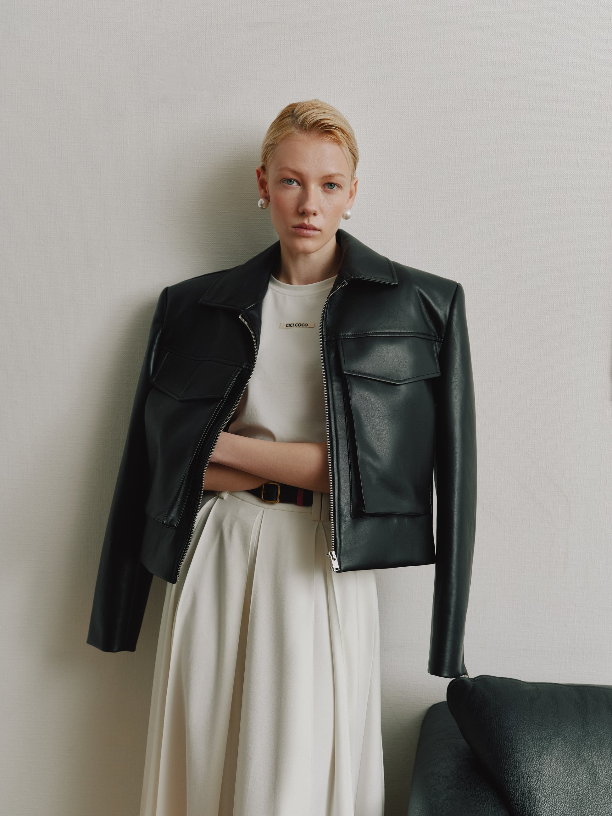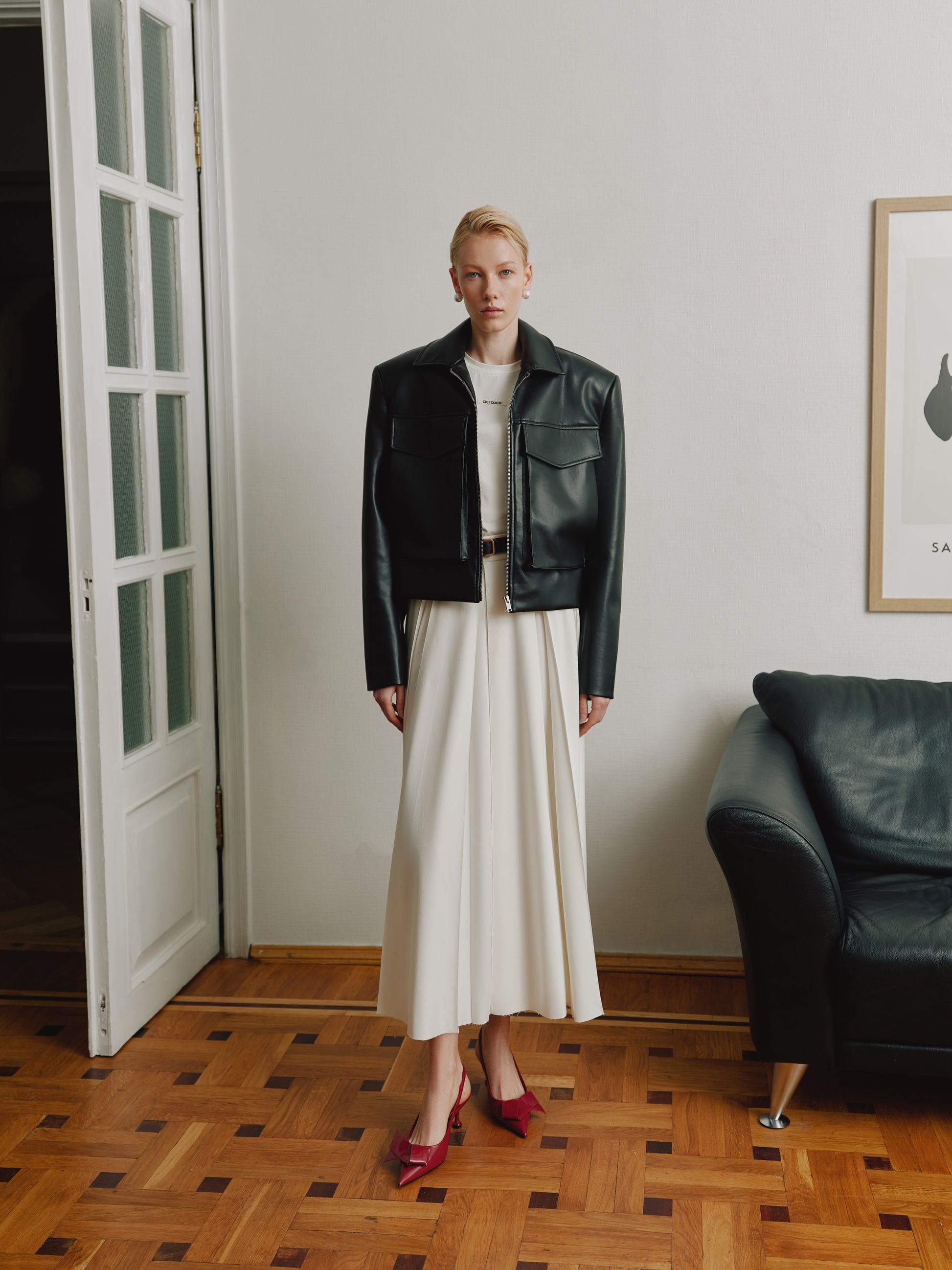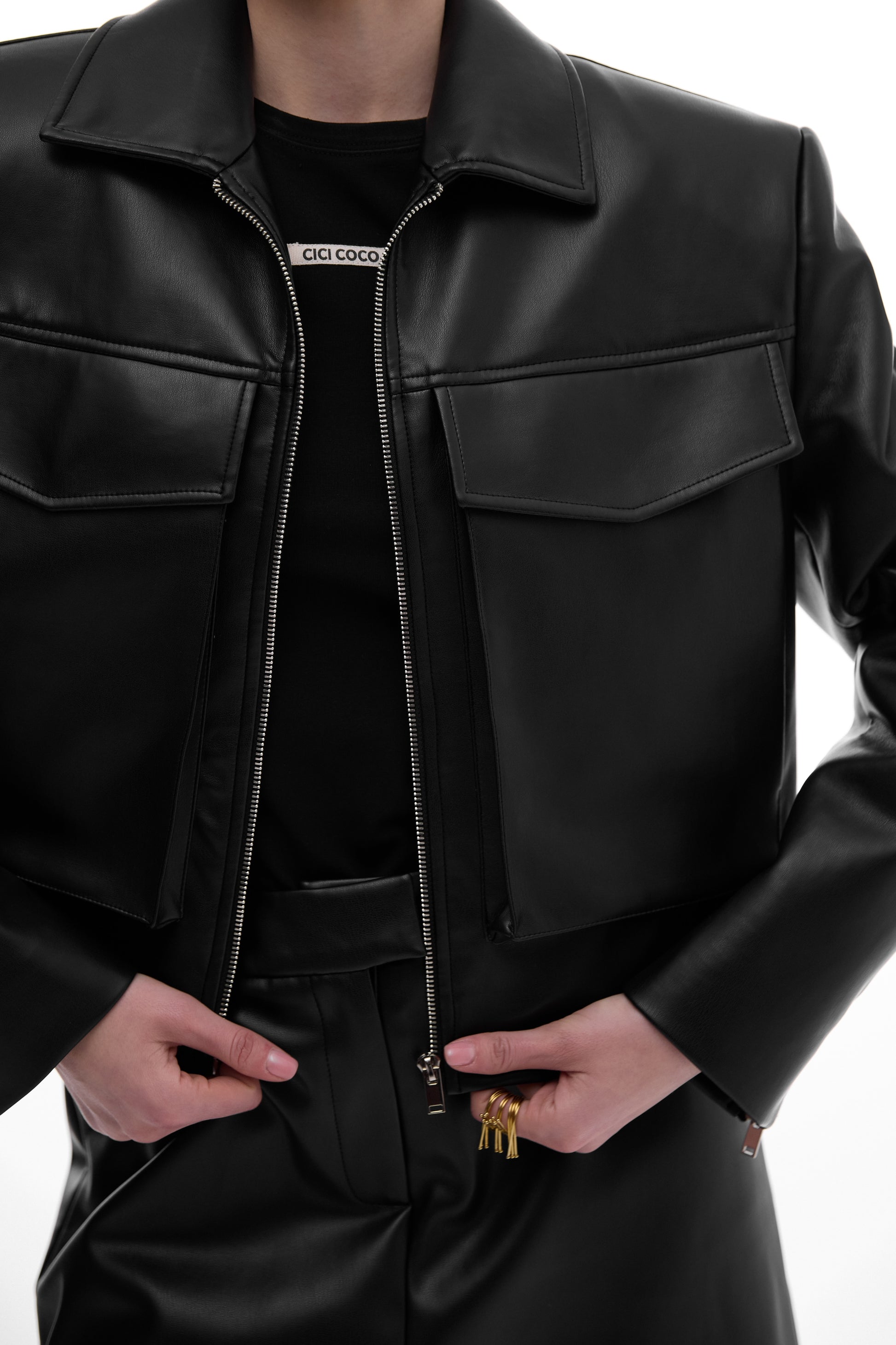 Якщо купити куртку з еко-шкіри у комплекті з широкими палаццо або спідницею, можна створити сучасний міський образ. А у поєднанні з джинсами чи шкіряними легінсами – стильний повсякденний лук із характером.
