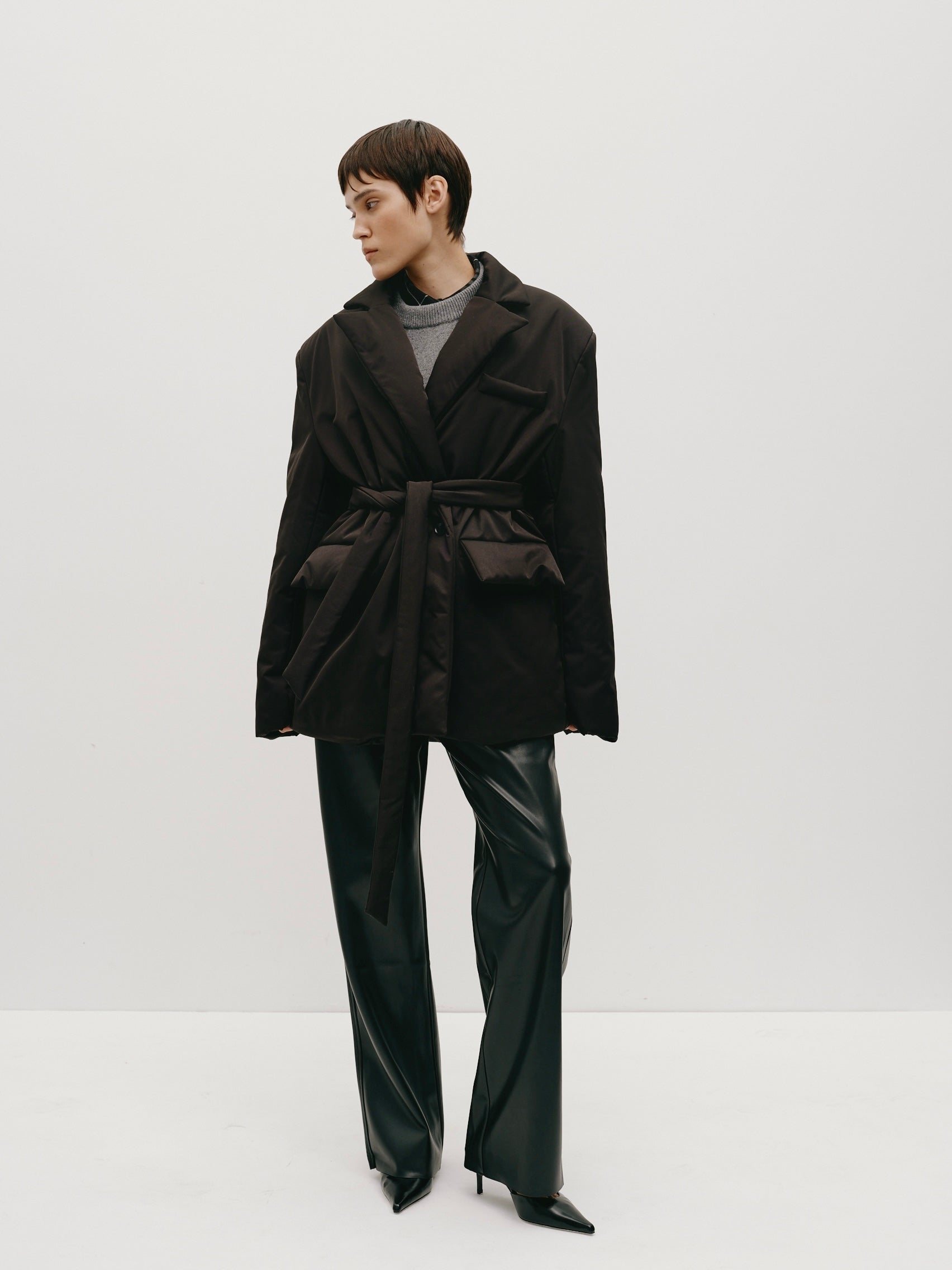 Якщо купити утеплену куртку-жакет у комплекті з широкими палаццо або спідницею, можна створити стильний міський образ. А у поєднанні з джинсами та масивними черевиками вона стане базовою річчю для щоденних виходів.
