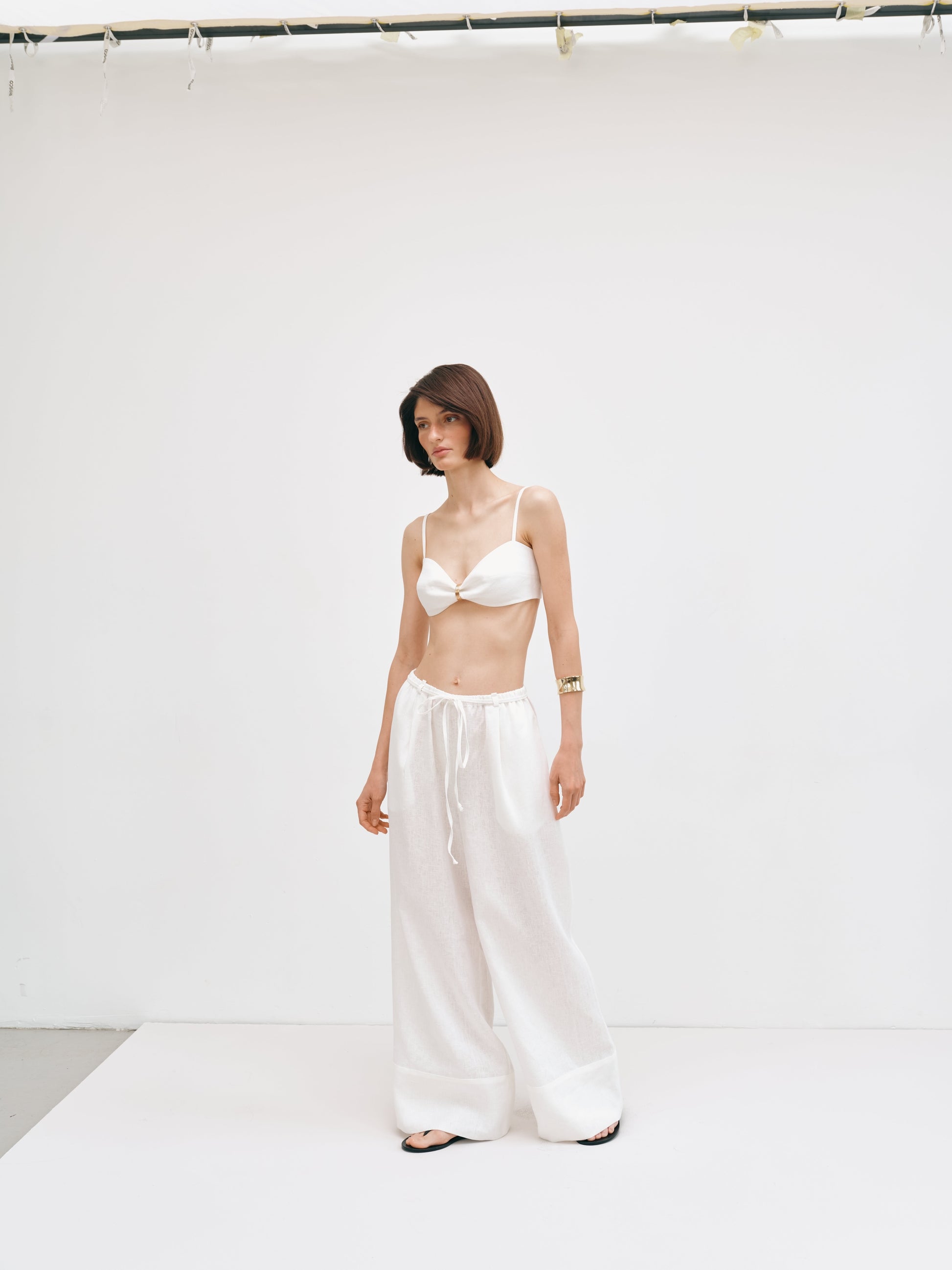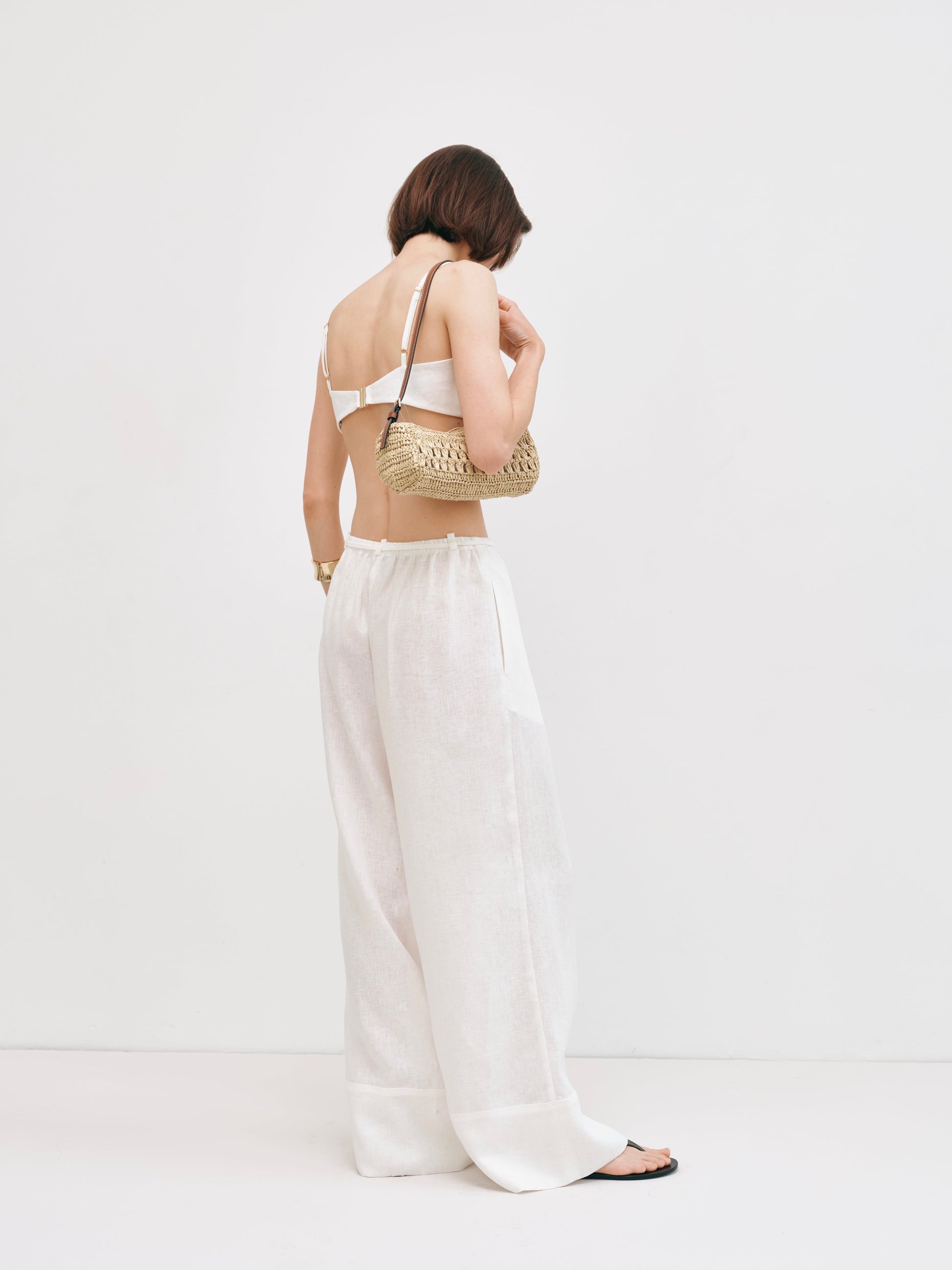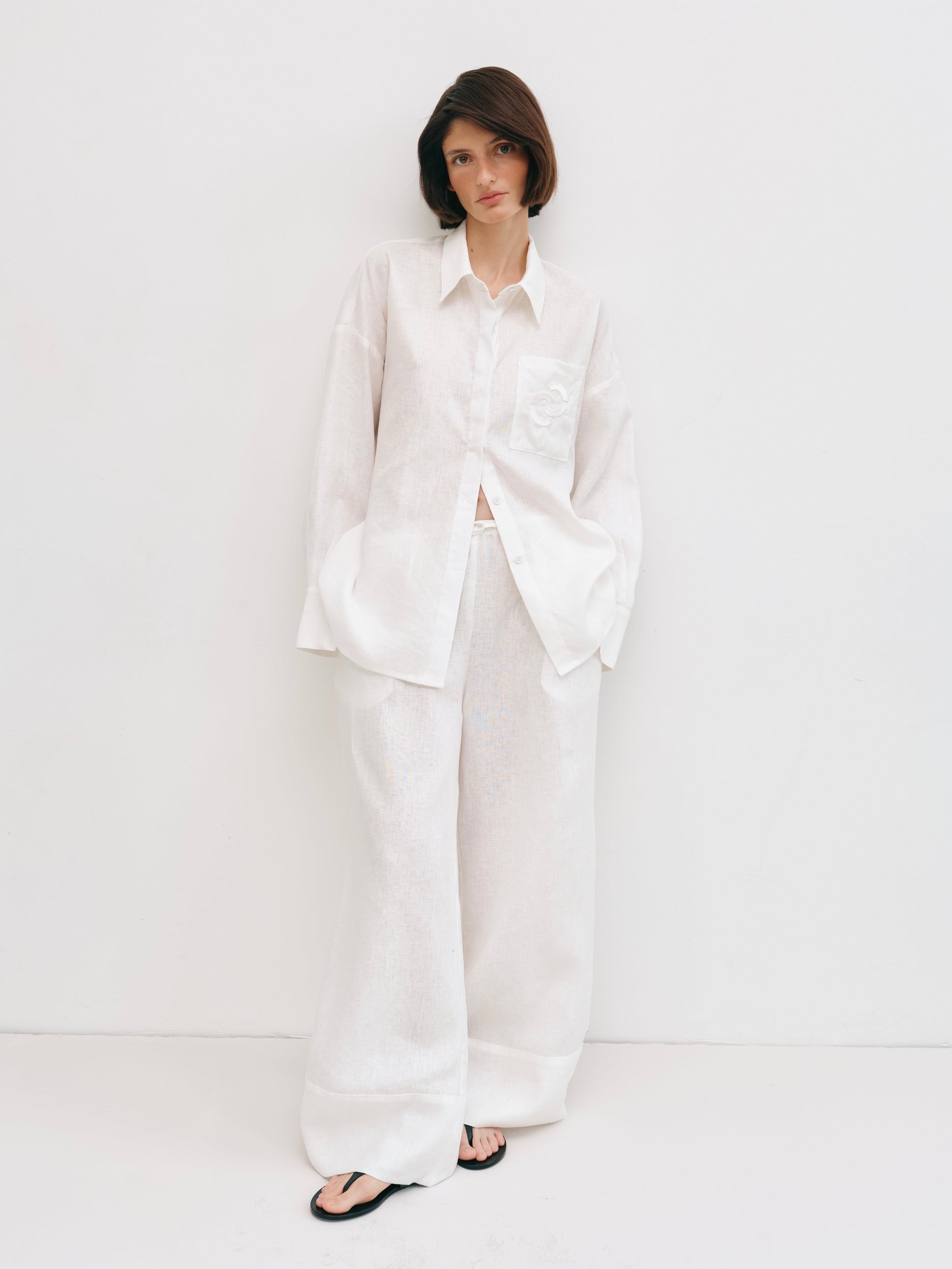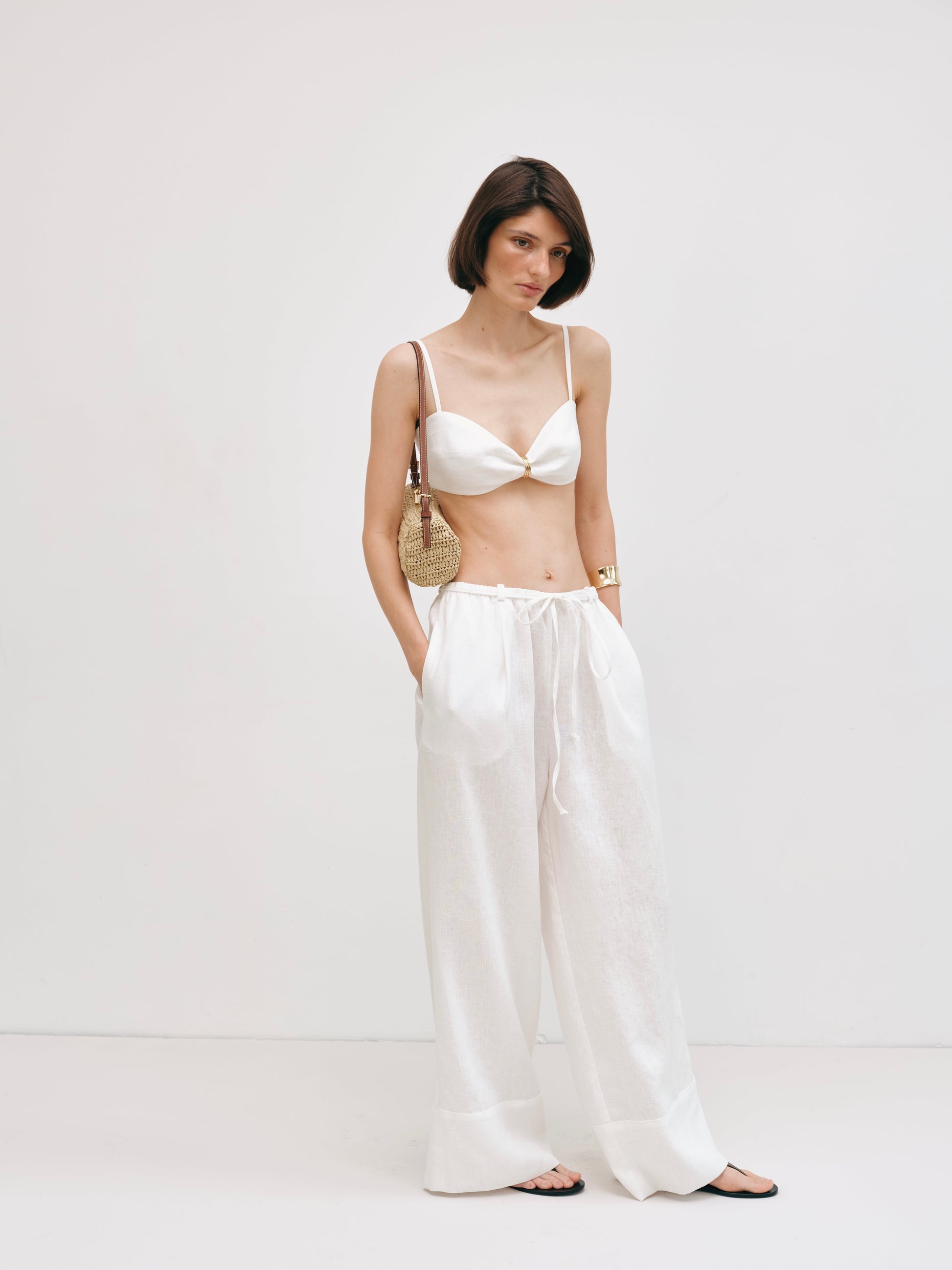 Особливістю моделі є манжет знизу, який допомагає штанам тримати форму, додаючи силуету структурованості і акуратності. Завдяки цьому палаццо не виглядають надто розслабленими, а набувають сучасного вигляду.