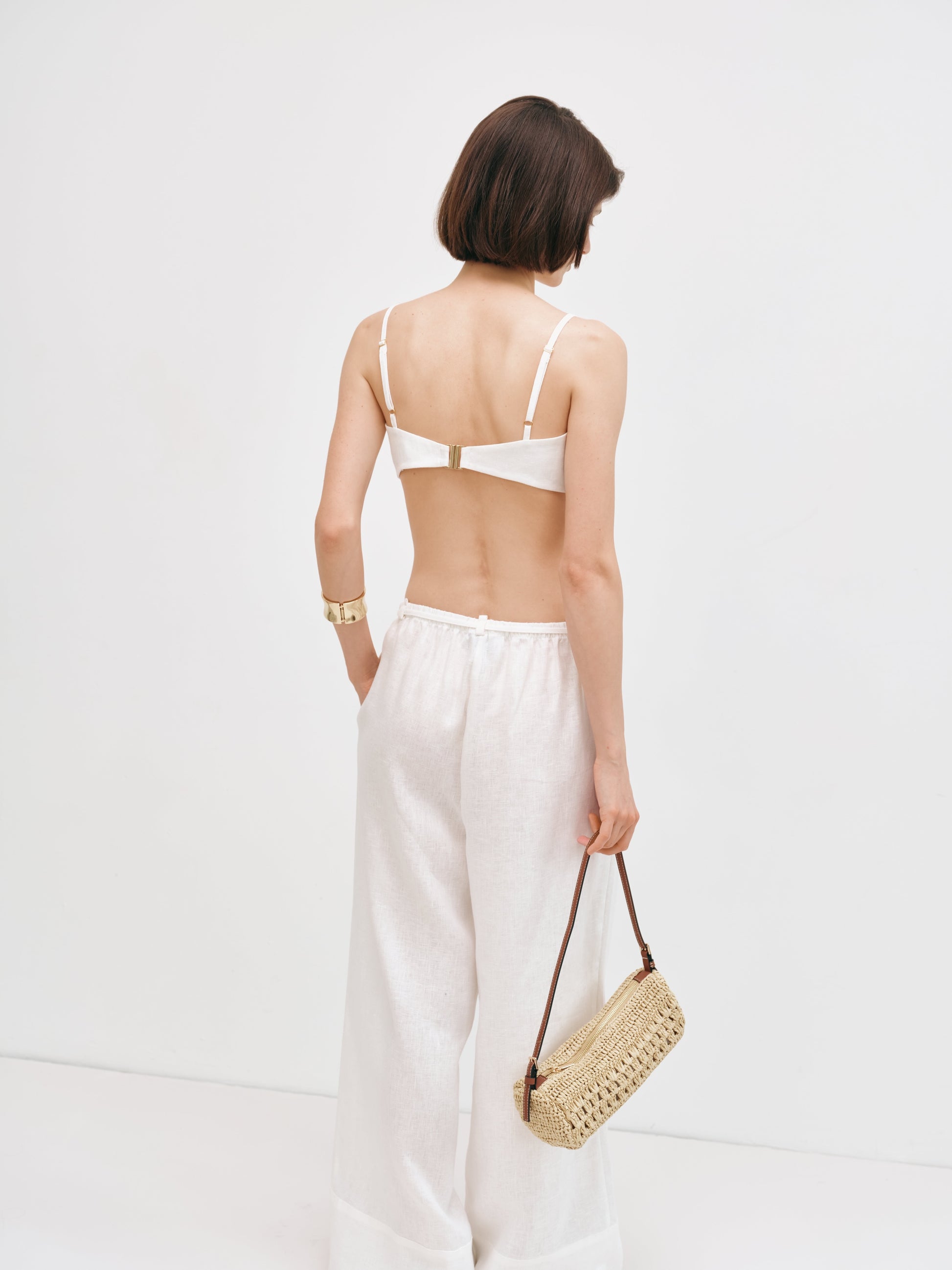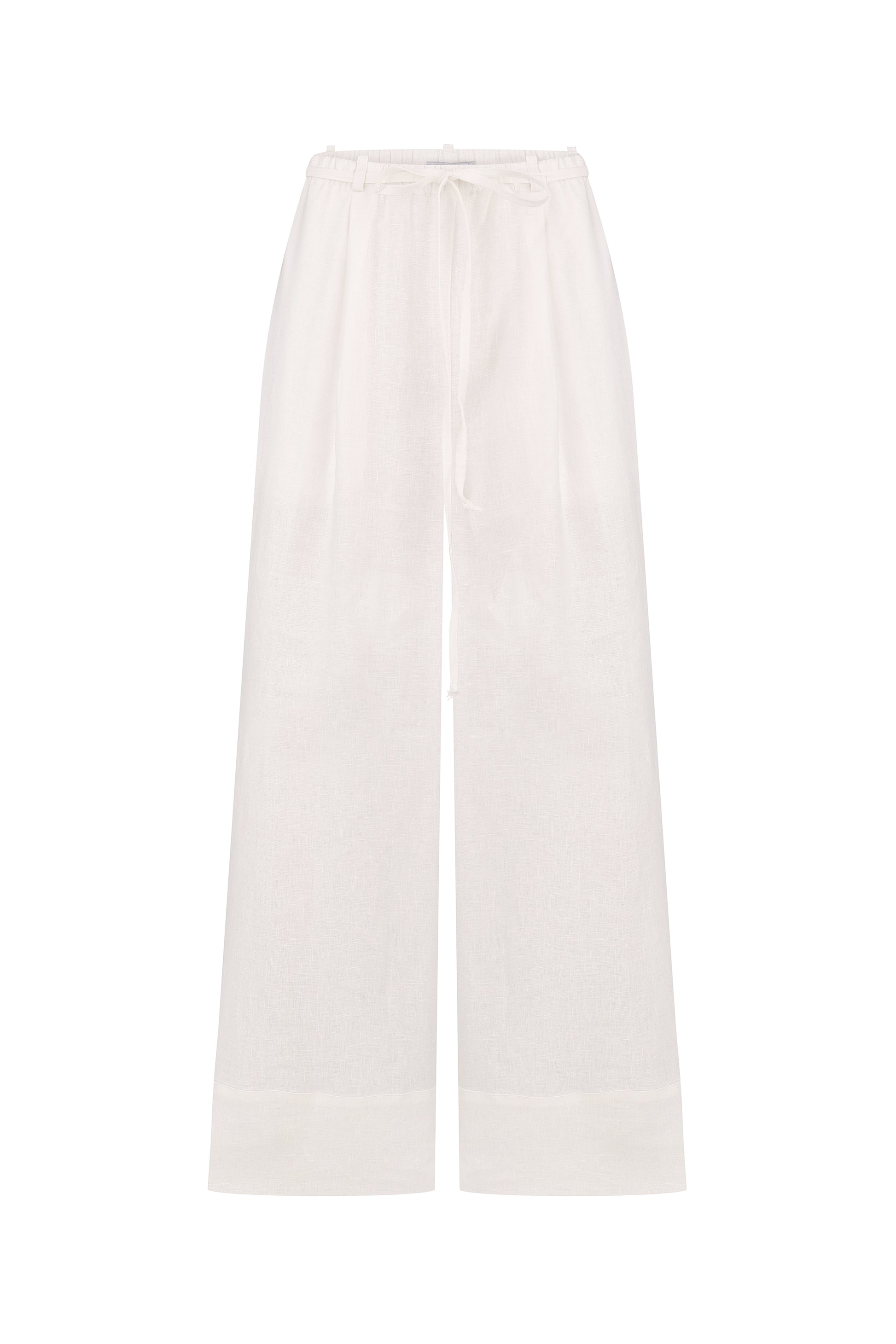 Жіночі палаццо молочні з льону — це поєднання легкості, комфорту і сучасного стилю. Вільний крій забезпечує свободу рухів, а зав’язка на талії додає можливість регулювати посадку й створює ніжний акцент. Натуральна льняна тканина приємна до тіла і дихає, що робить ці штани ідеальними для теплої пори року.