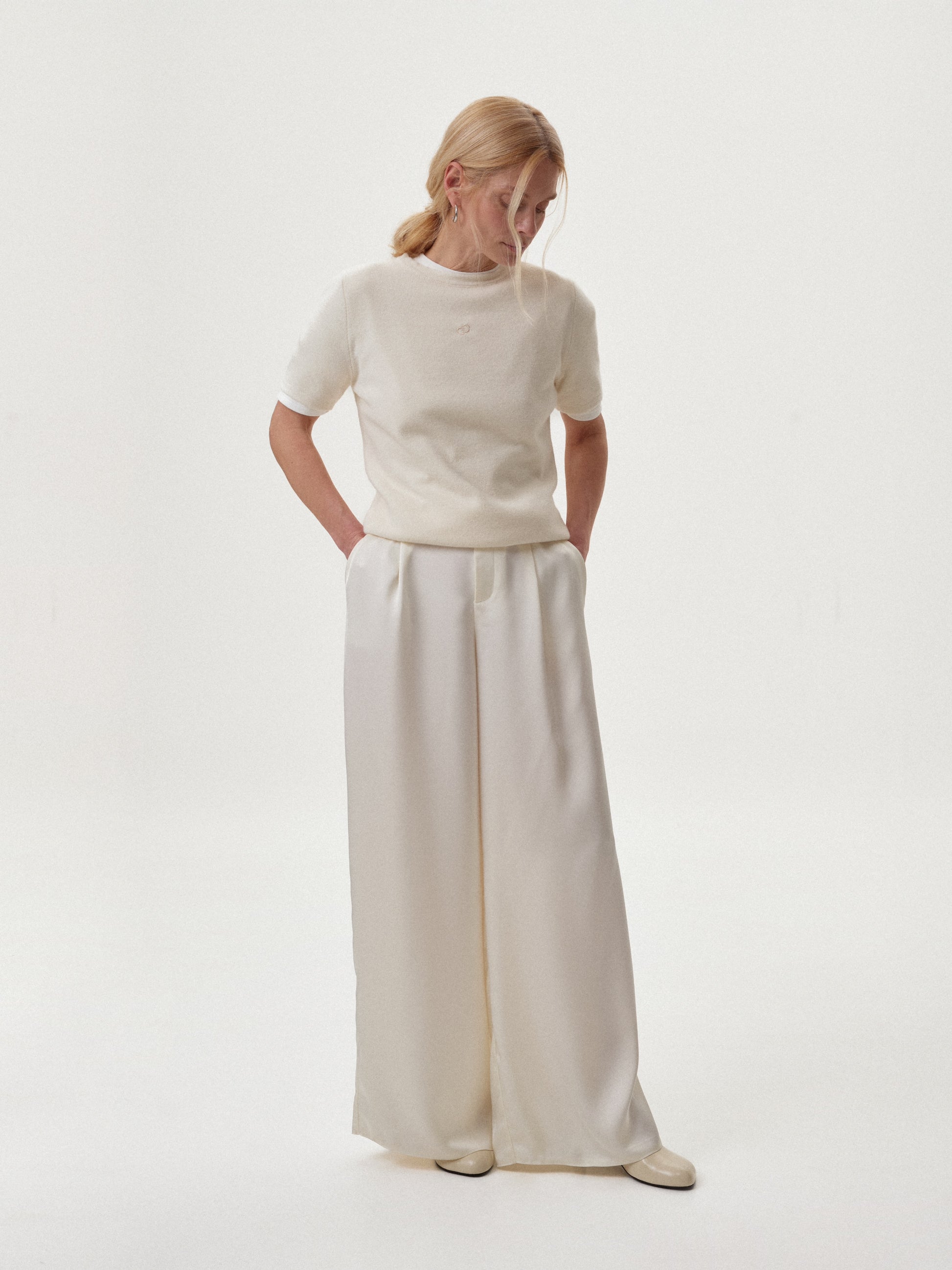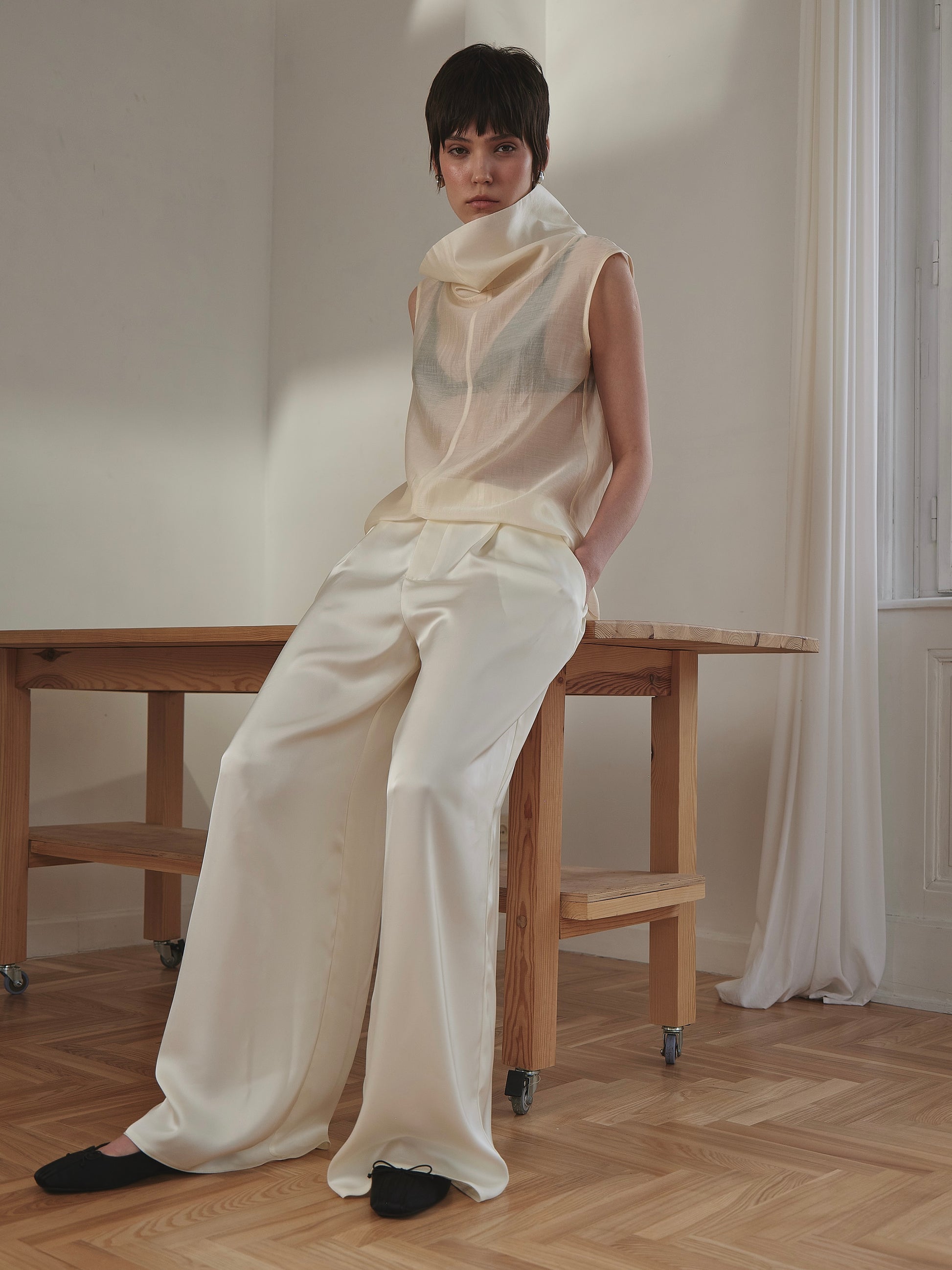 Поєднуйте палаццо з молочною сорочкою або топом для створення світлого, цілісного образу. У комплекті з вкороченим жакетом або пальтом вони формують сучасну міську стилізацію. Додайте підбори для більш витонченого настрою або мінімалістичне взуття на низькому ходу для стриманого, повсякденного варіанту.