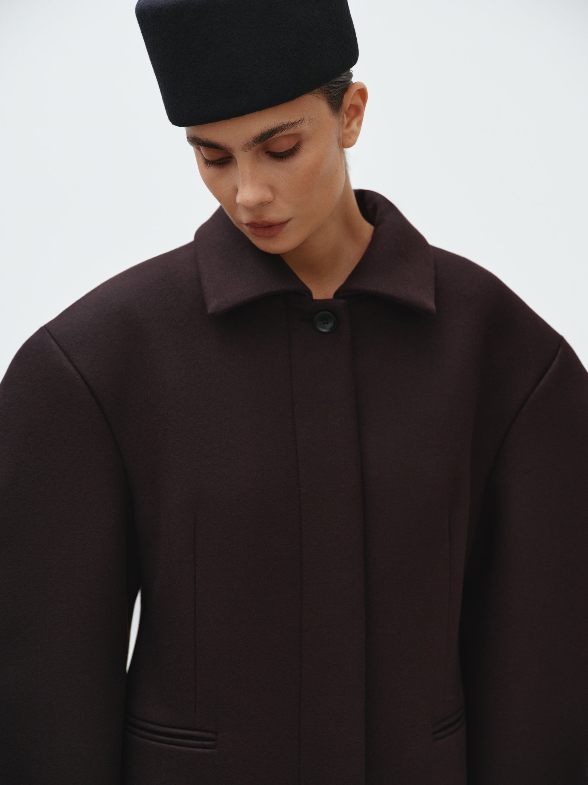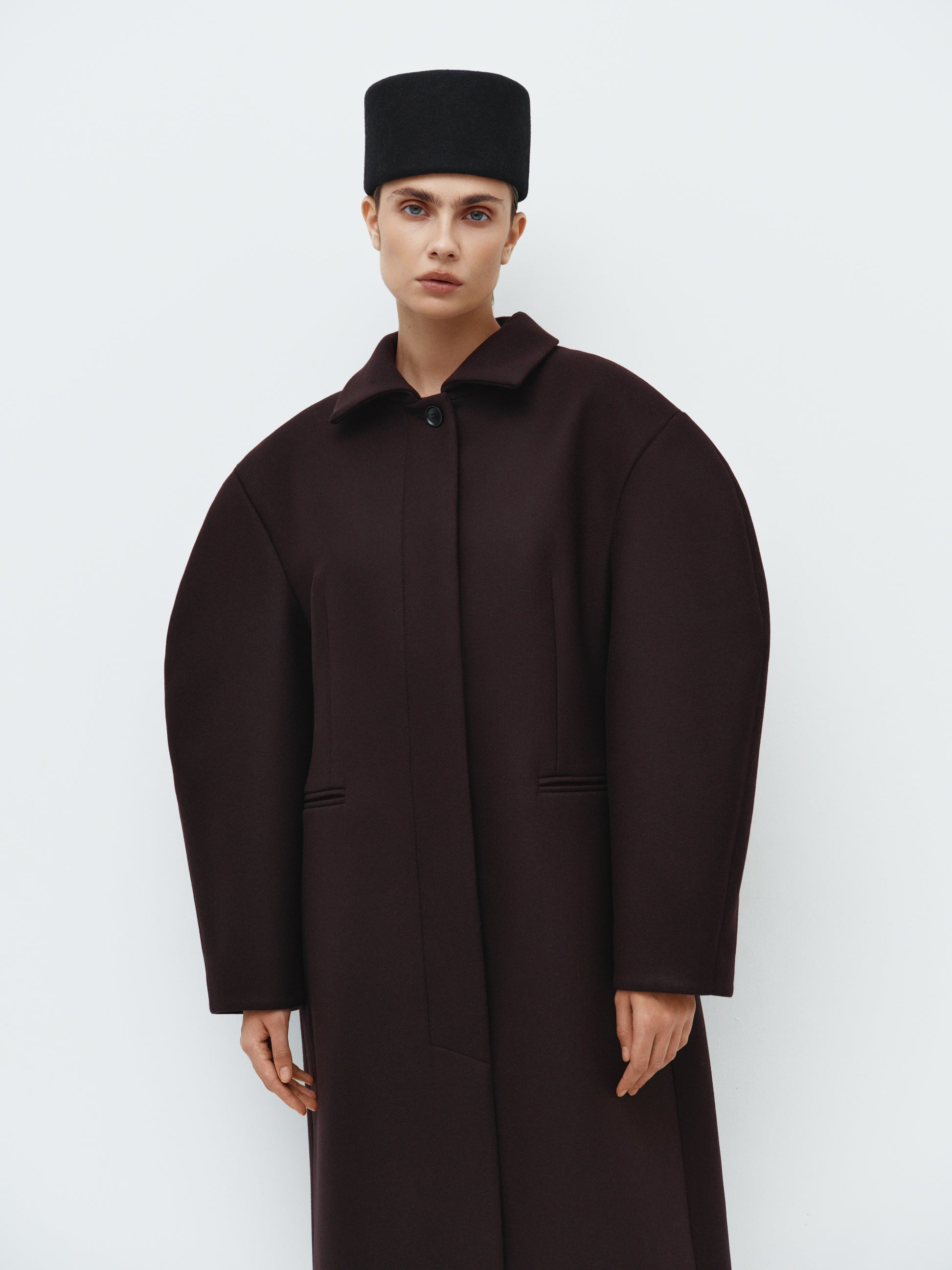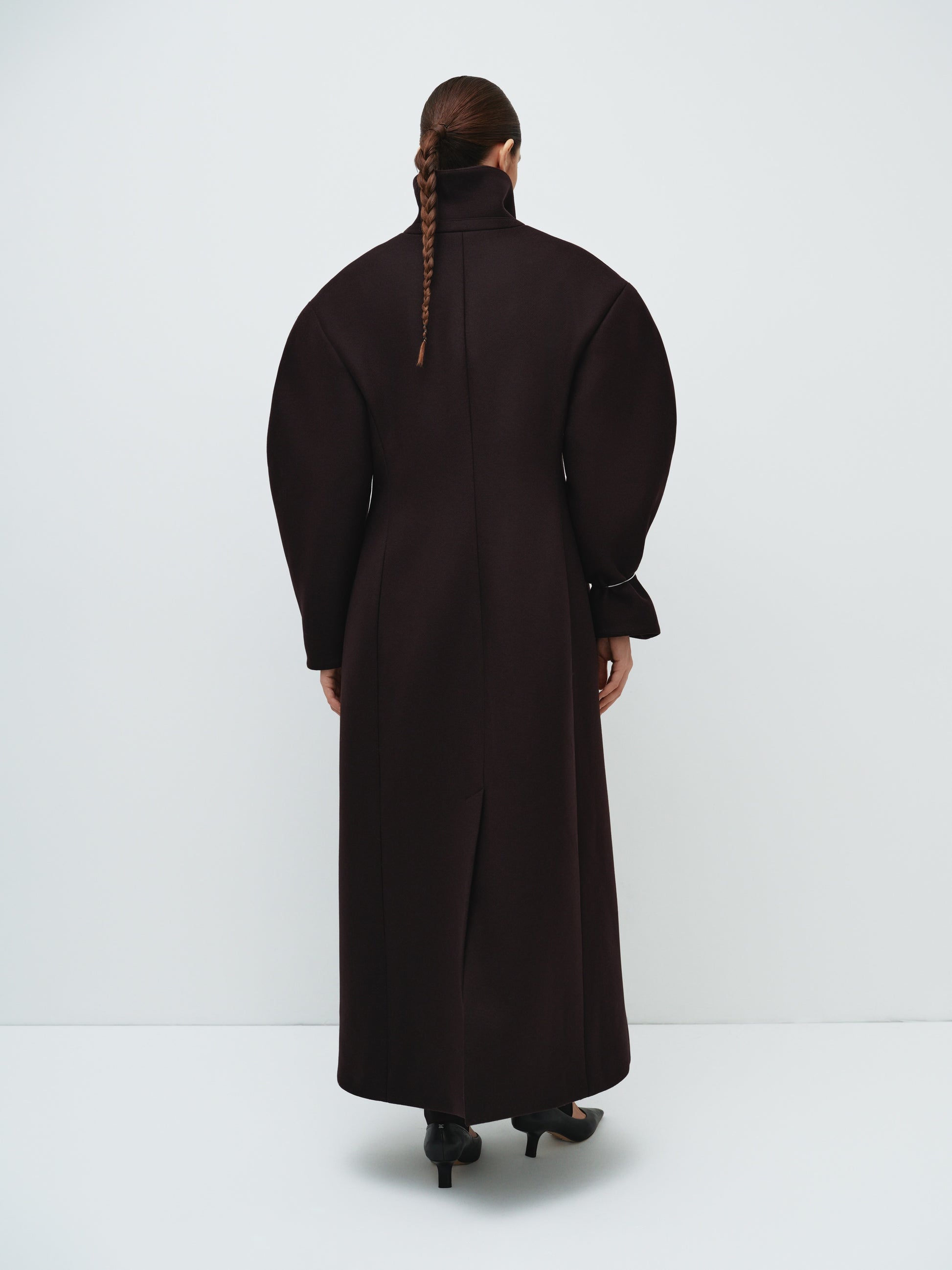 Пальто максі силуетне з об'ємними рукавами COUTURE у темно - шоколадному кольорі — це елегантність, стиль і вишуканість у кожній деталі. Силуетний крій підкреслює фігуру, а об’ємні рукави додають образу виразності. Завдяки високоякісній тканині модель чудово зберігає форму та виглядає бездоганно.