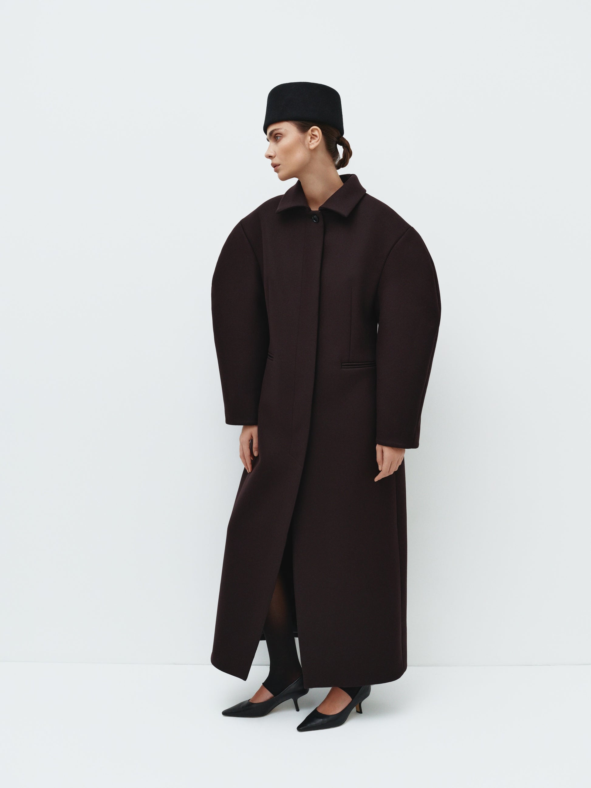 Пальто максі силуетне з об'ємними рукавами COUTURE