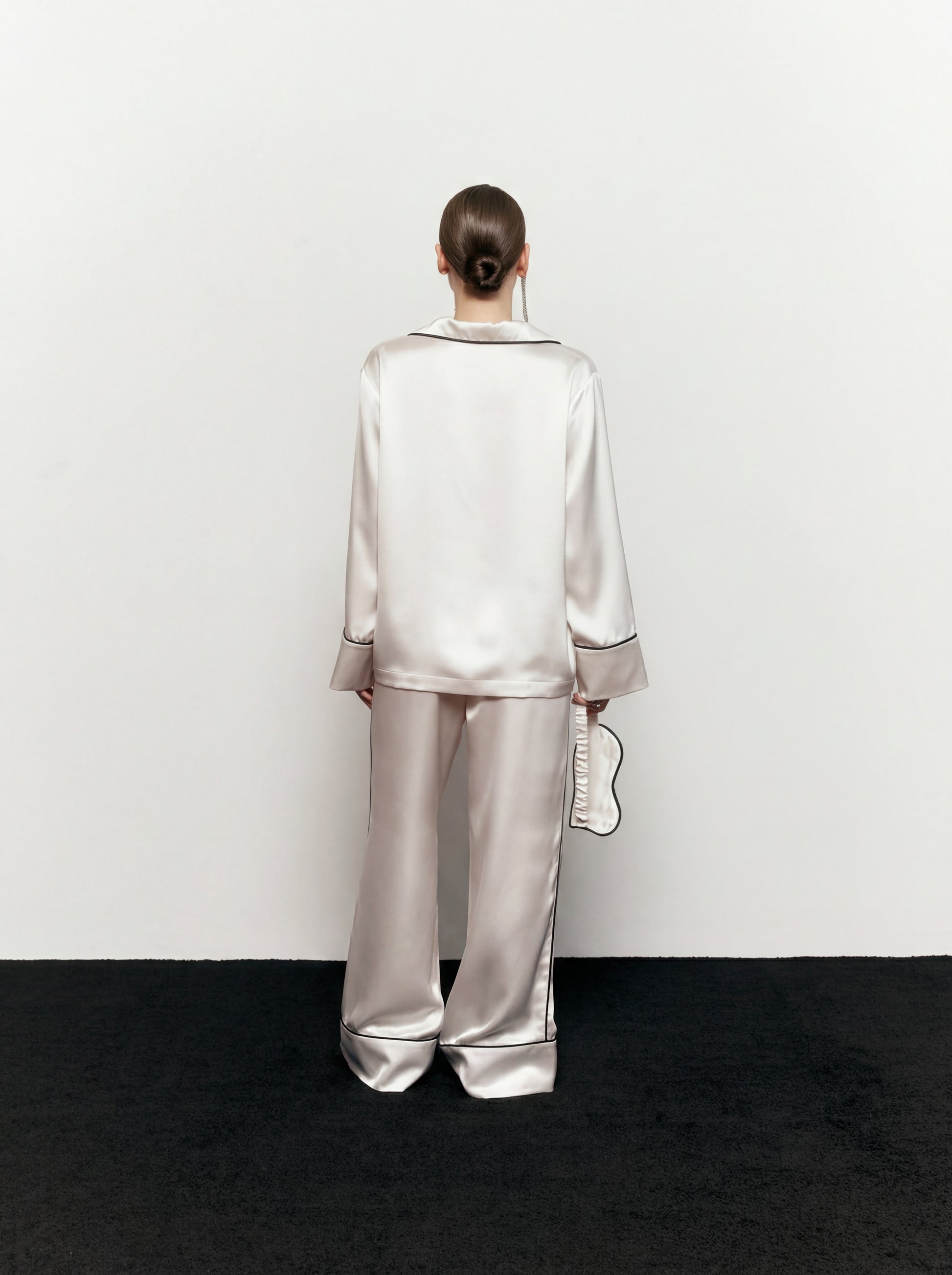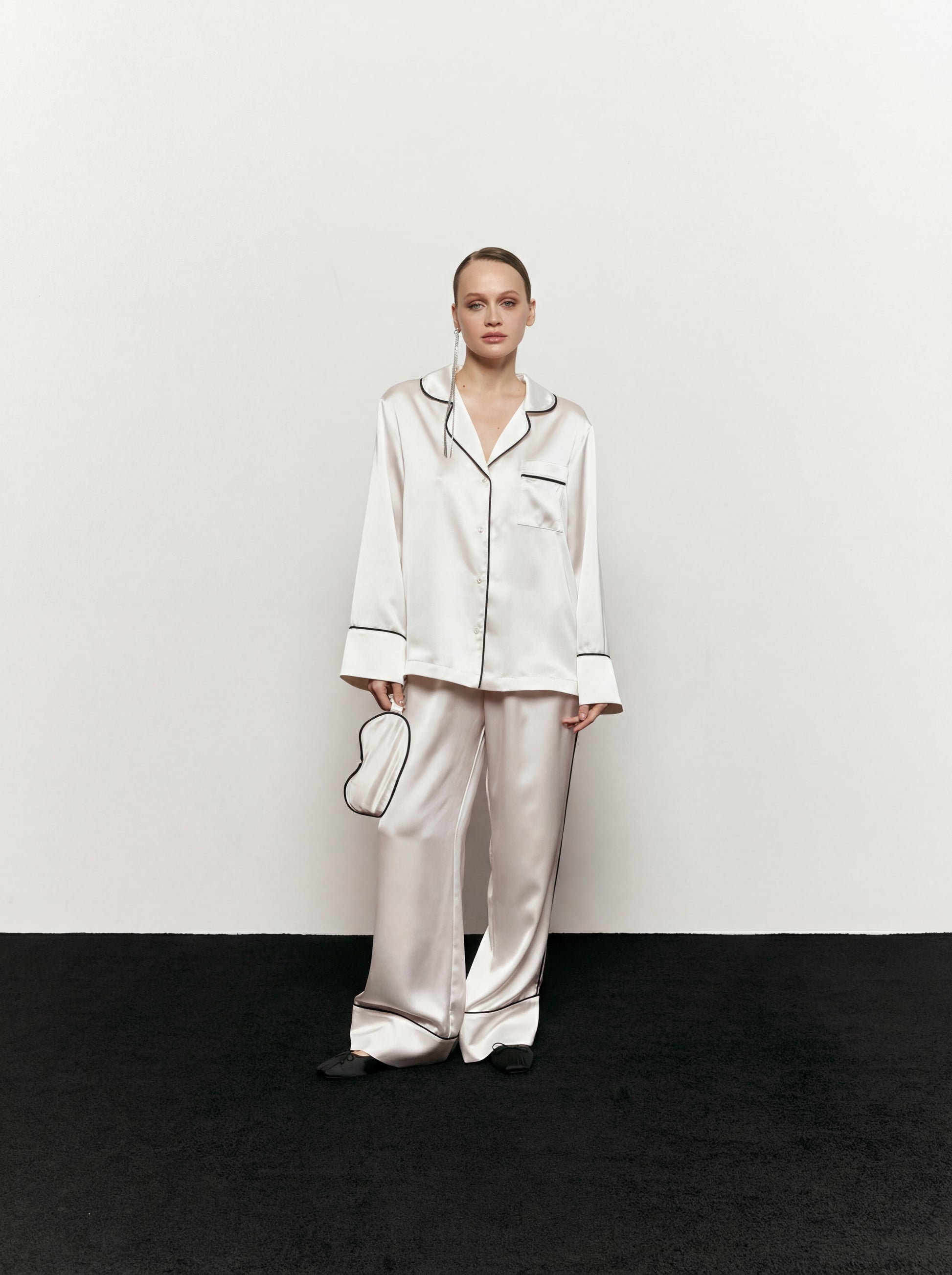 Якщо купити цю сатинову піжаму, ви отримаєте не просто домашній одяг, а справжній елемент розкоші. Вільний крій гарантує зручність, а класичний силует робить піжаму універсальною — вона виглядає бездоганно і дарує відчуття гармонії.
