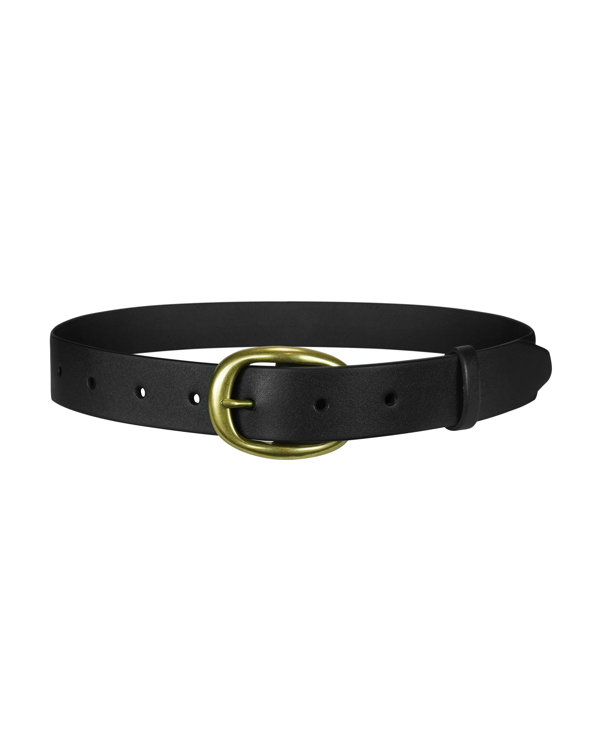 Чорний шкіряний ремінь із золотою пряжкою – універсальний аксесуар, який стане ідеальним завершенням як класичного, так і повсякденного образу. Його можна носити з брюками, джинсами чи спідницями, акцентуючи талію або додаючи образу структурності. У поєднанні з діловим костюмом він створює стриманий офісний лук, а з легкою сукнею – підкреслює жіночність