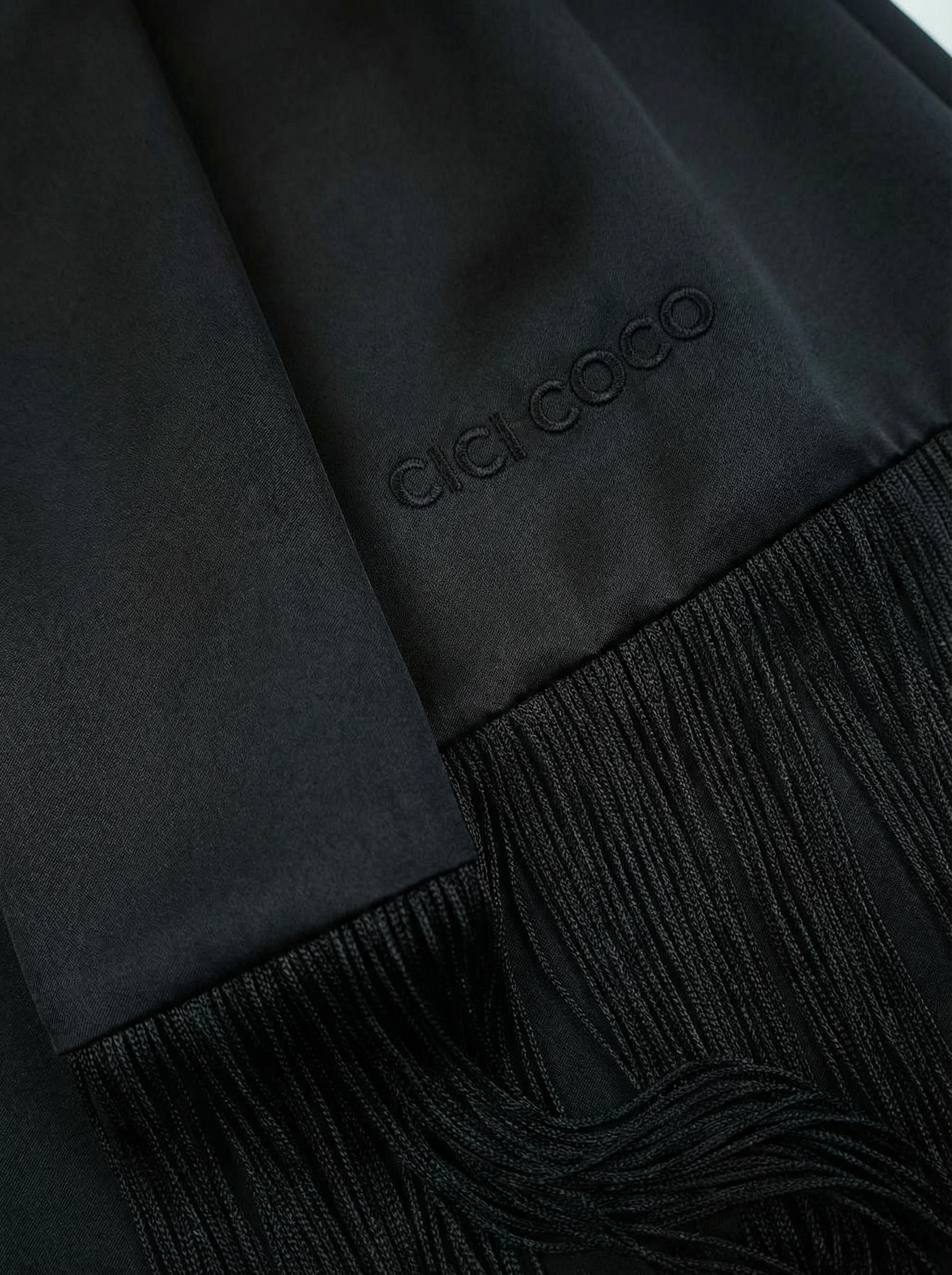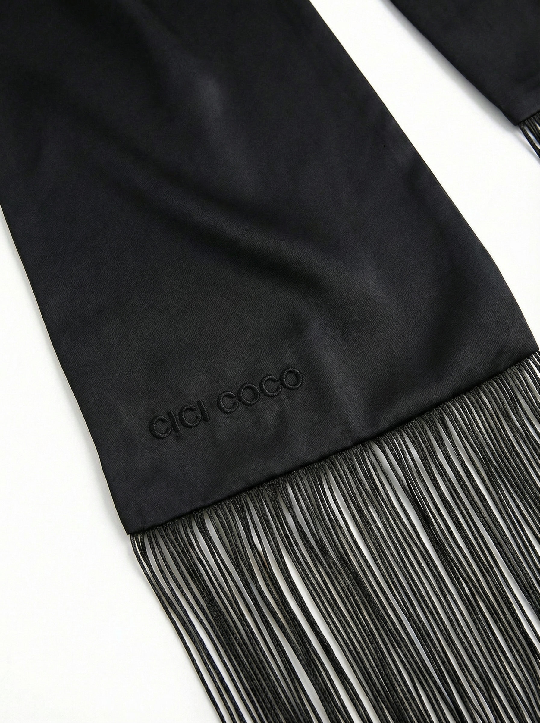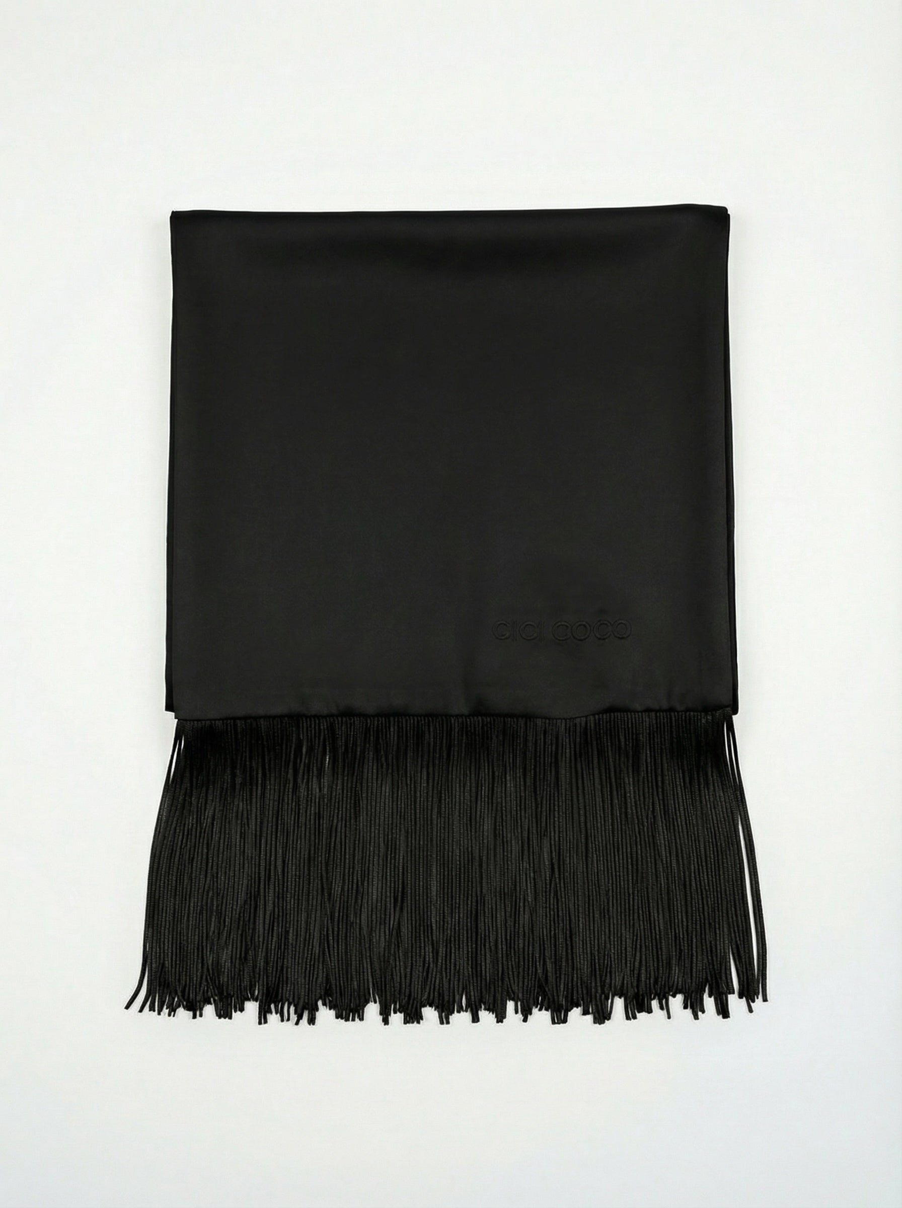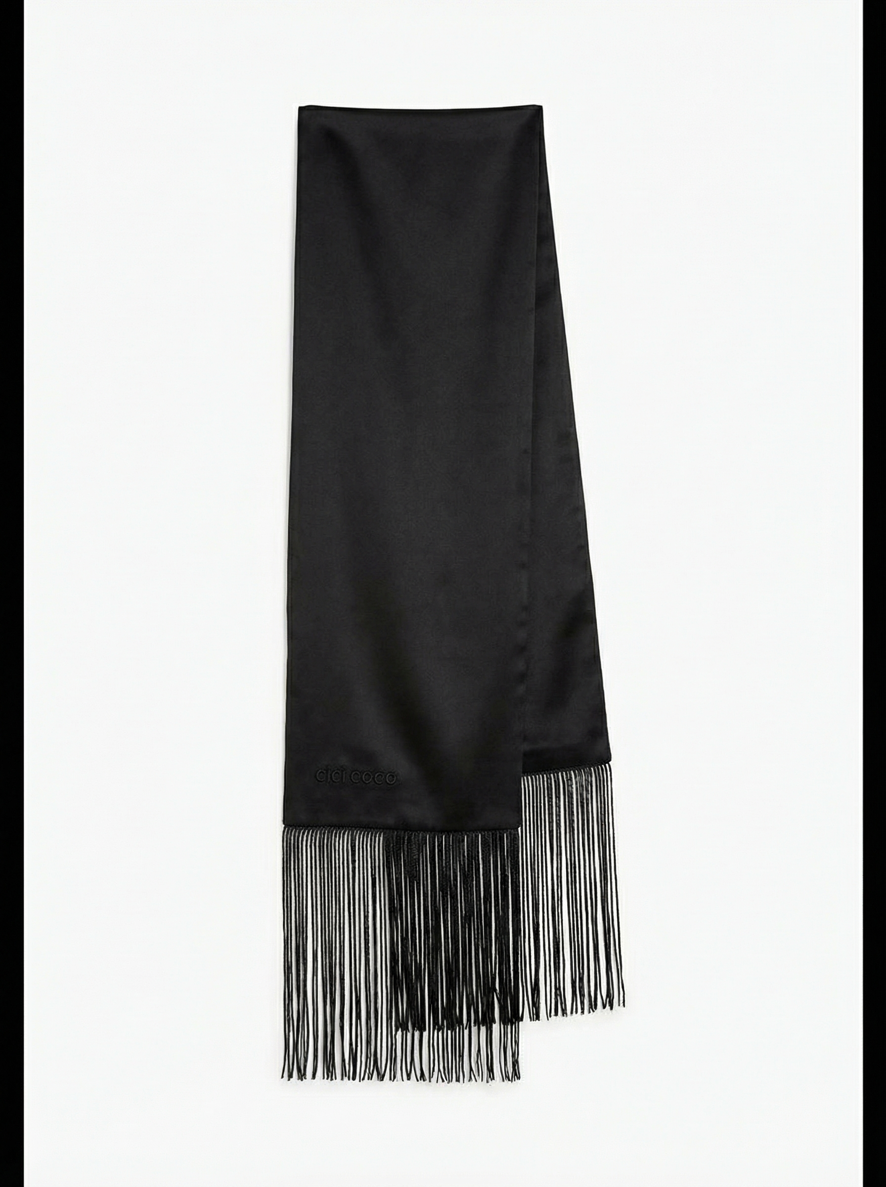 Сатиновий чорний шарф з бахрамою
