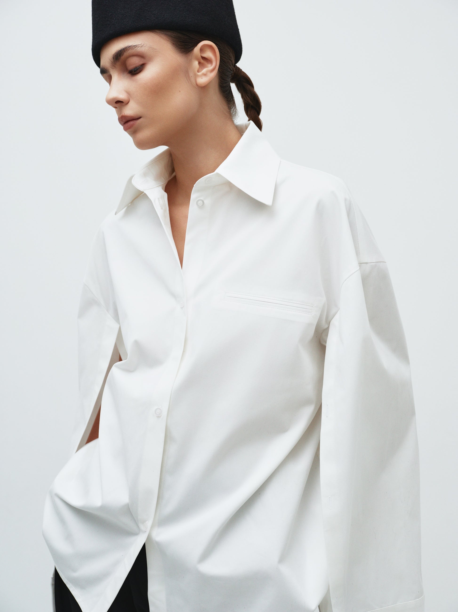 Ця жіноча сорочка з акцентними рукавами легко адаптується до різних стилів: створює строгий діловий образ якщо купити класичні брюки та жакет або ж доповнює мінімалістичний casual-лук зі спідницею чи джинсами. Стриманий, але виразний дизайн робить її універсальним елементом гардеробу.