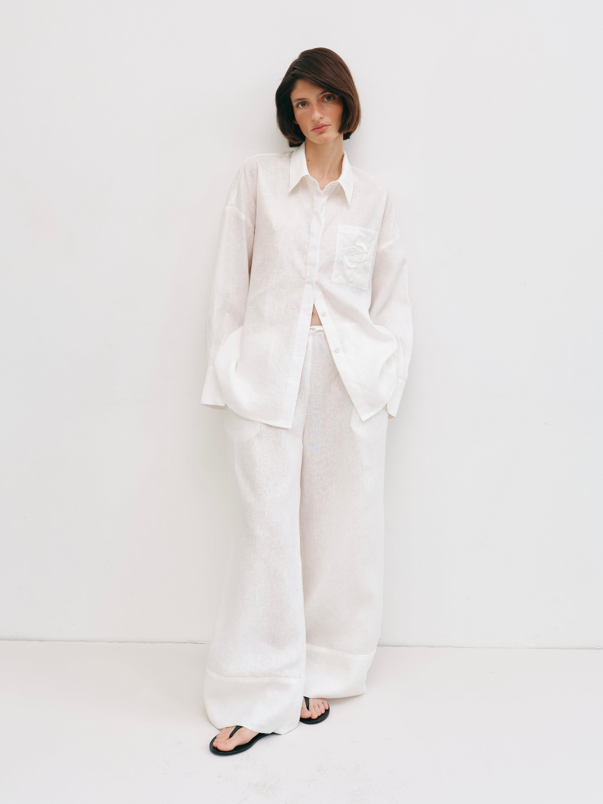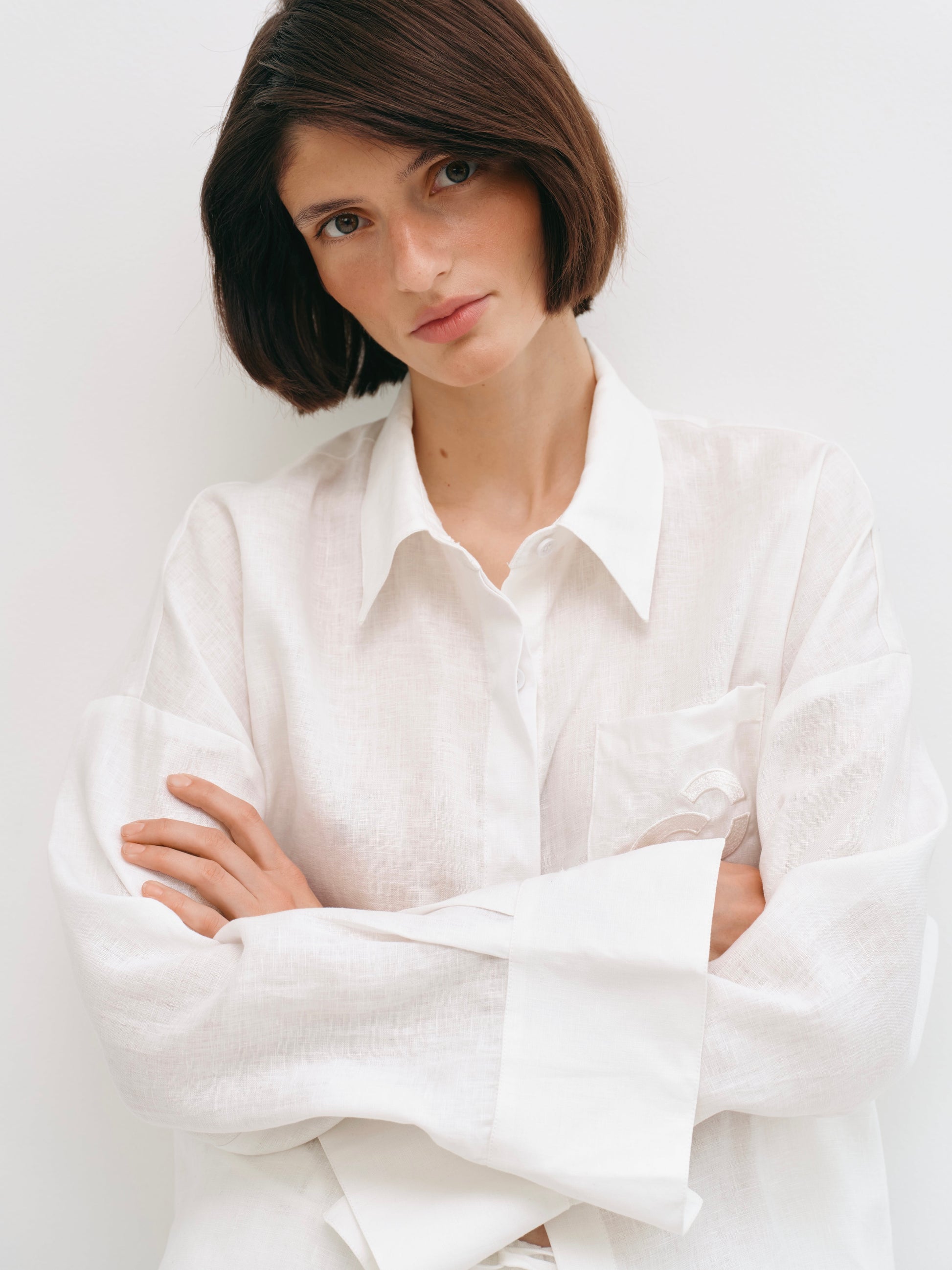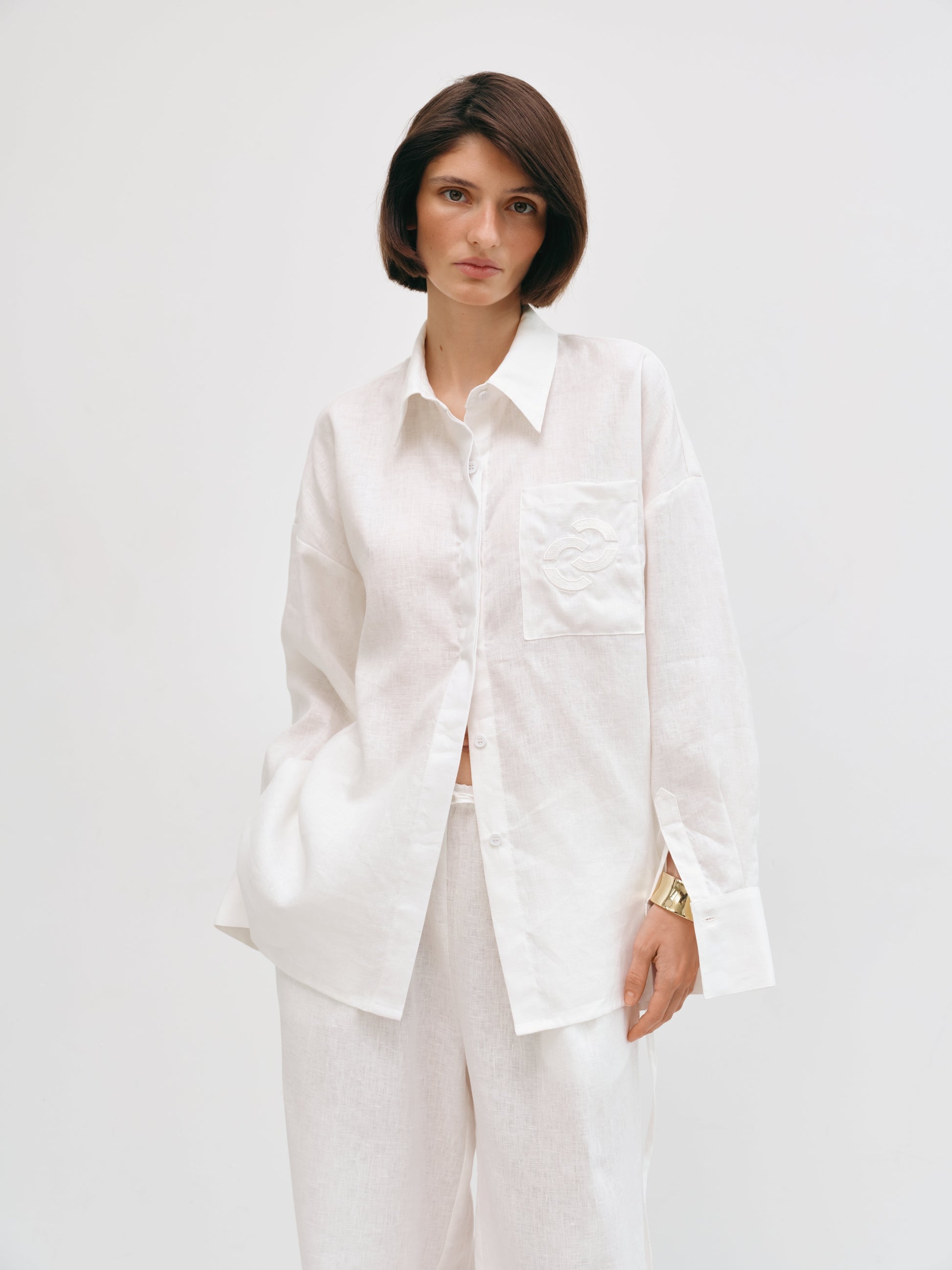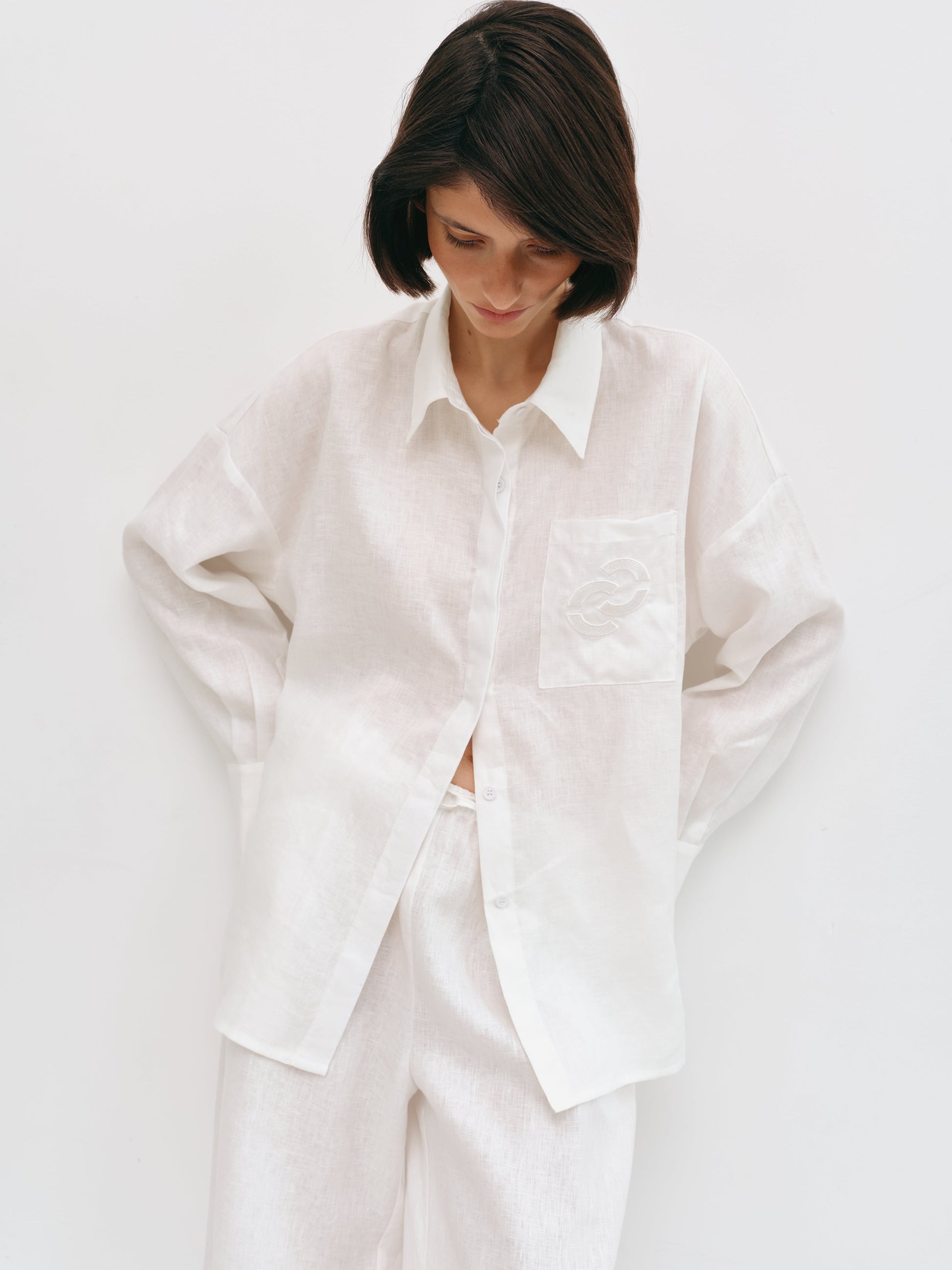 Ця сорочка чудово поєднується з лляними шортами, спідницями, класичними брюками чи денімом. Якщо купити її в комплекті з лляною спідницею або штанами — отримаєш лаконічний та гармонійний образ, який пасує і для міста, і для відпочинку.